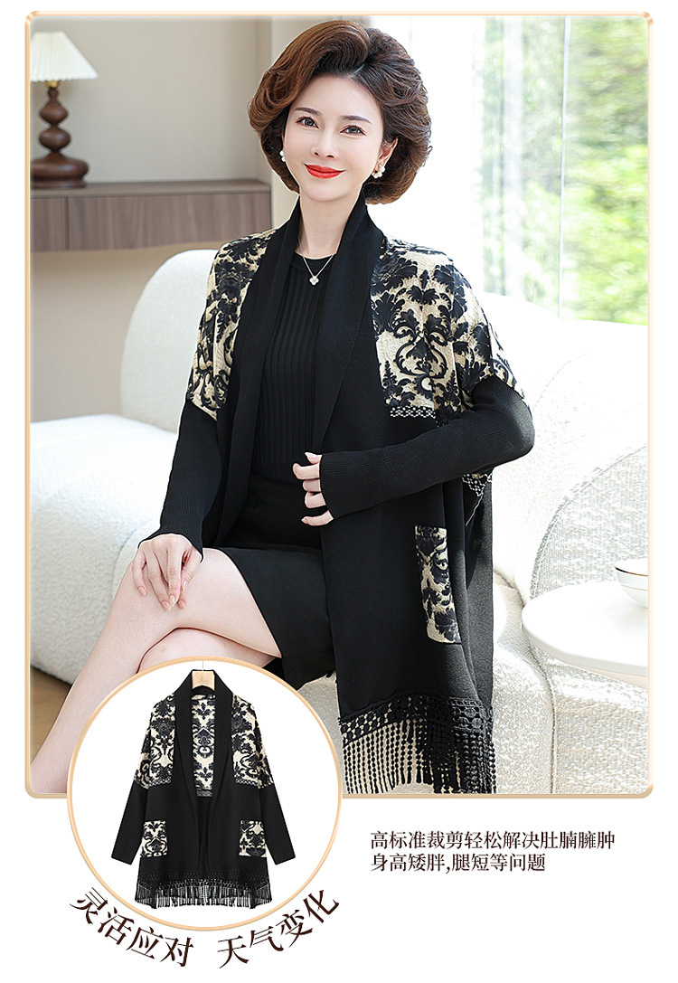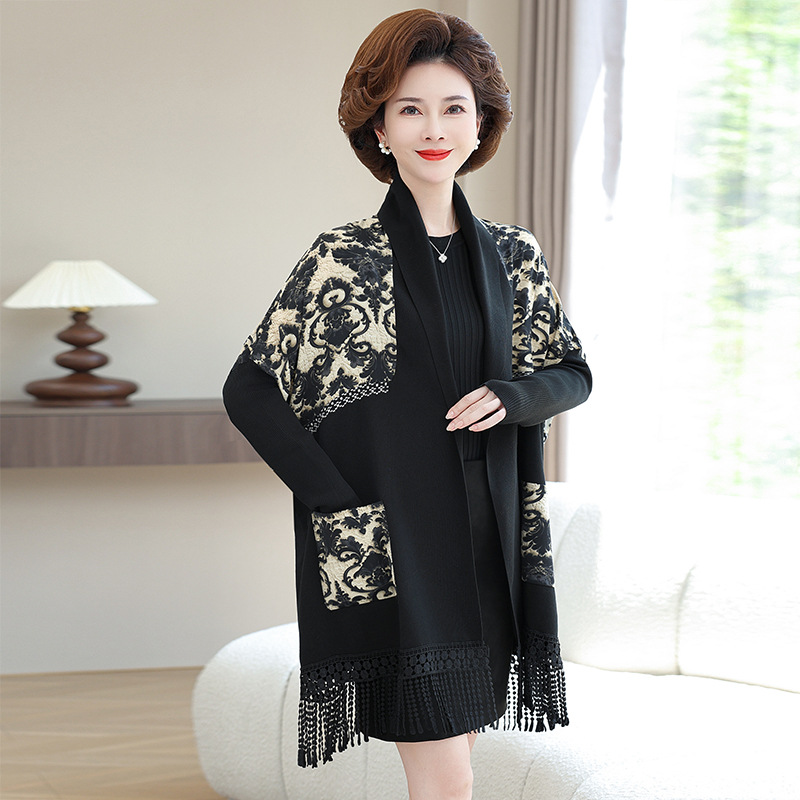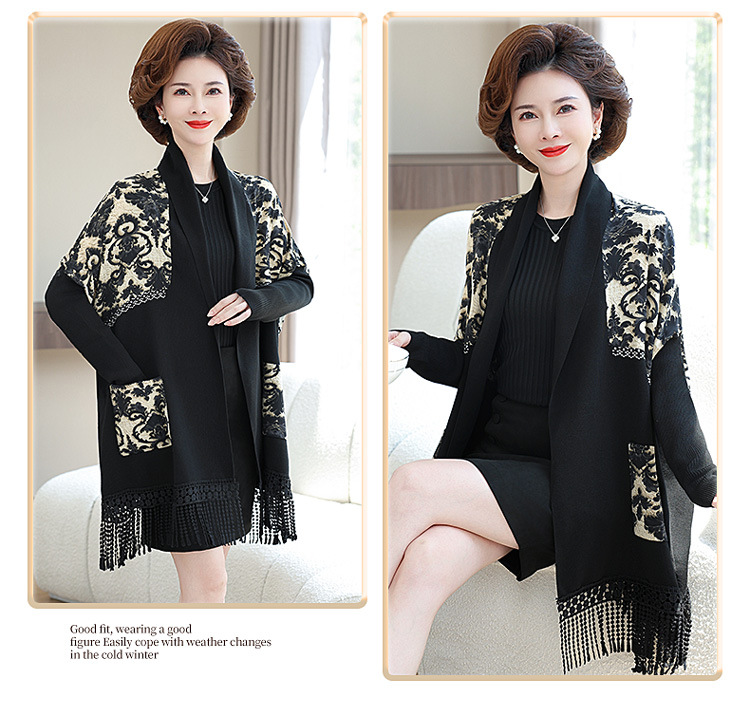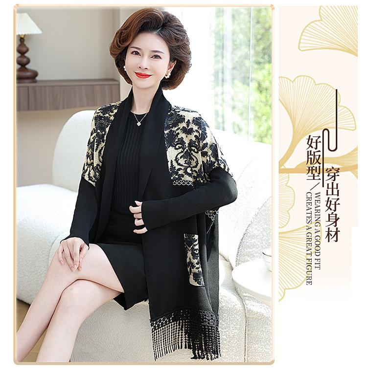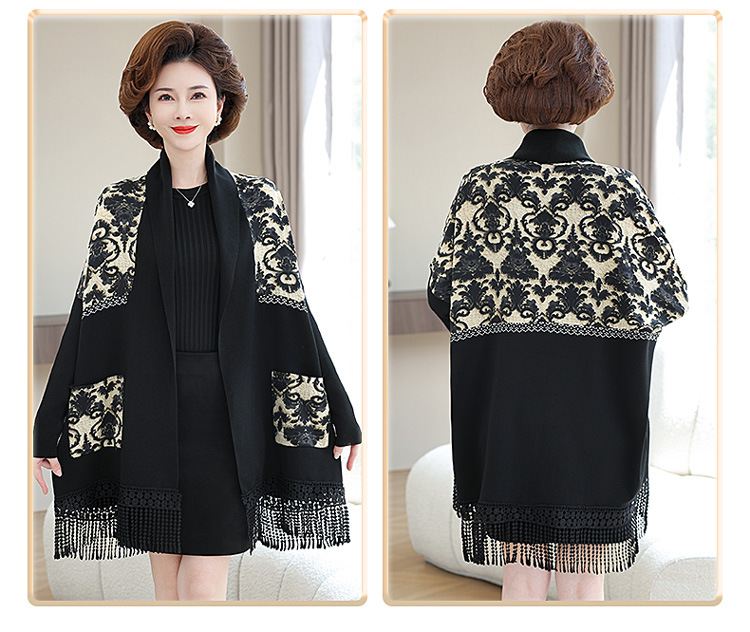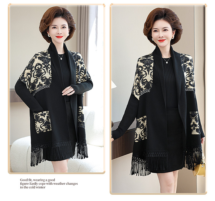 외국 스타일 어머니의 목도리 여성의 가을과 겨울 케이프 스타일 코트 중간 길이의 느슨한 니트 카디건 두꺼운 스웨터