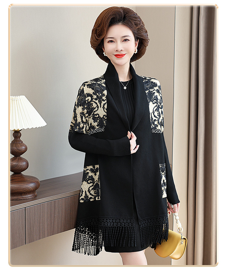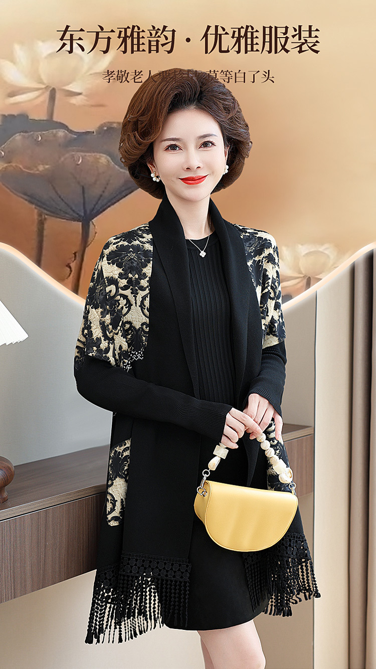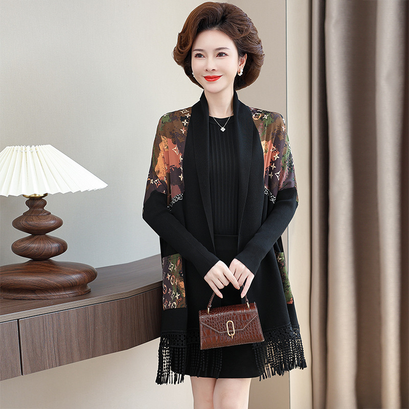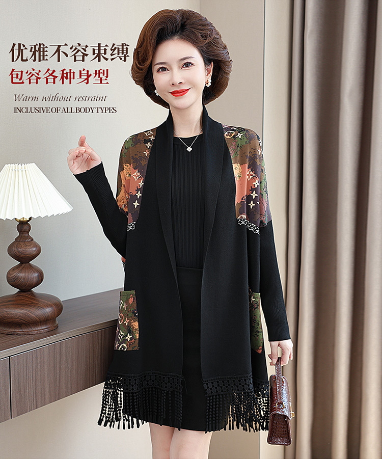 외국 스타일 어머니의 목도리 여성의 가을과 겨울 케이프 스타일 코트 중간 길이의 느슨한 니트 카디건 두꺼운 스웨터