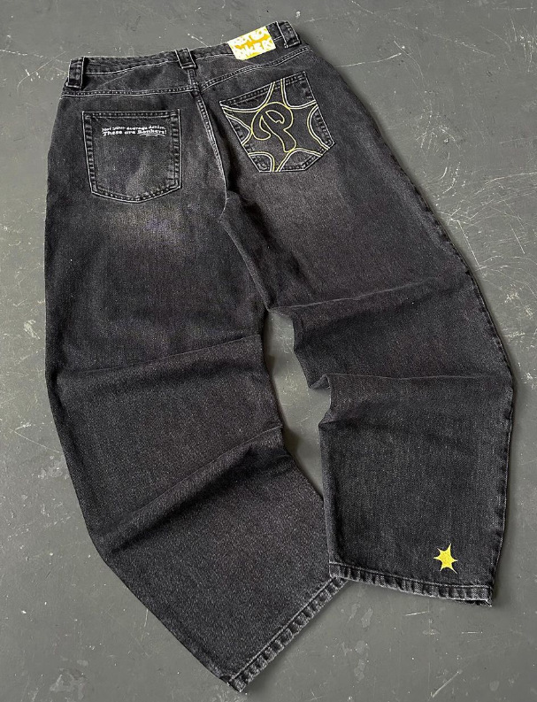 국경 간 유럽과 미국의 거리 y2k 자수 패션 헐렁한 낡은 청바지 남성용 느슨한 작은 스트레이트 바지스토어 가기