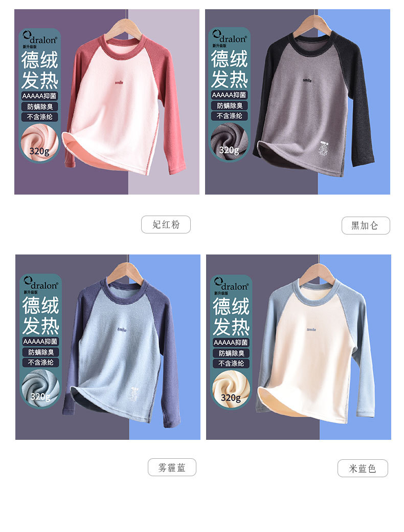 어린이 열 속옷 클래스 A Zhende 벨벳 소년 중 · 대형 어린이 양면 기모 두꺼운 가을 옷베이스 난방