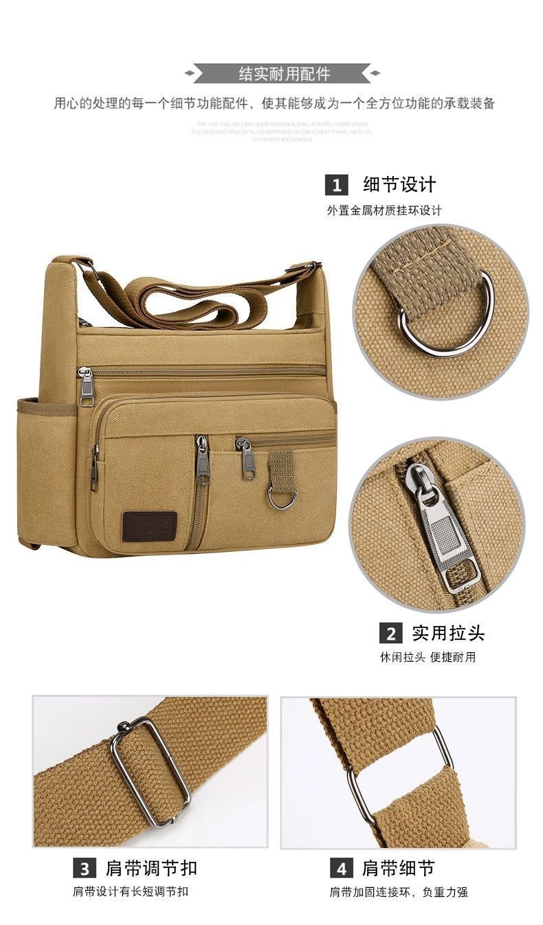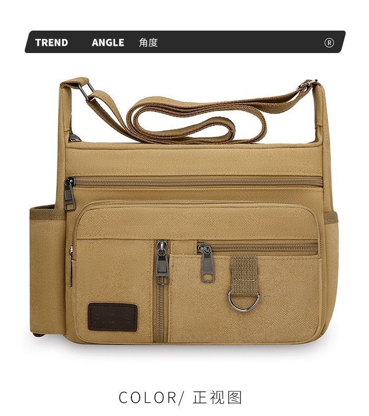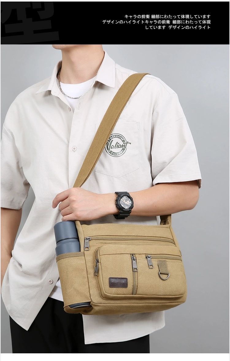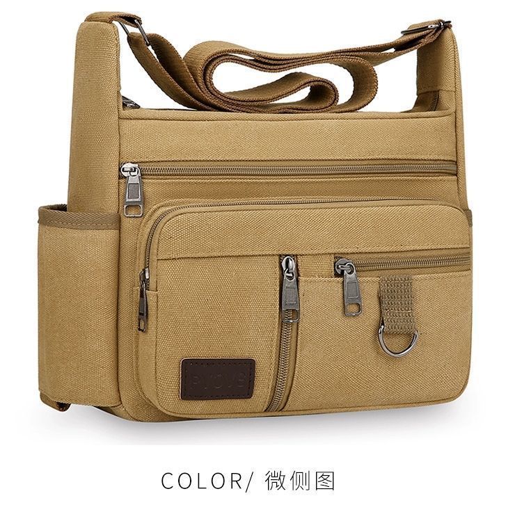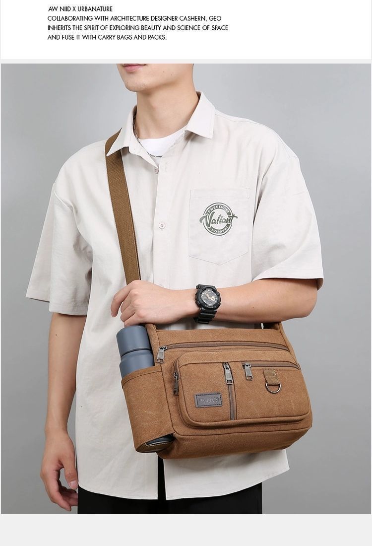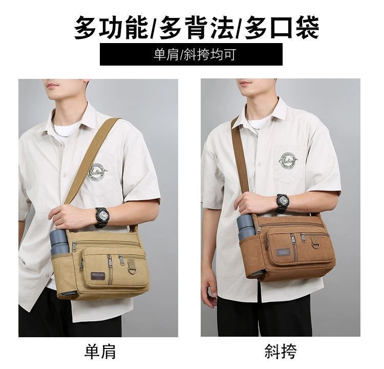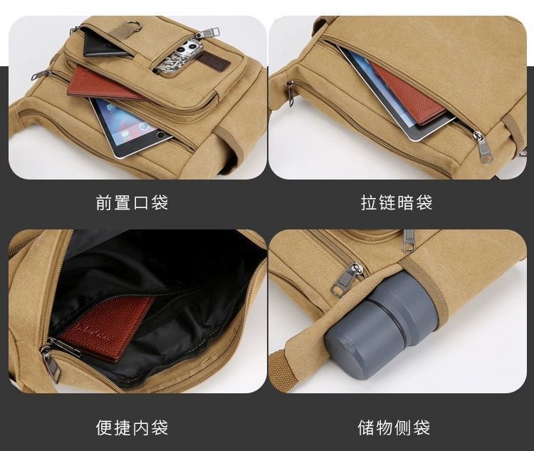 캔버스 가방 남성용 어깨 가방 크로스 바디 백 다층 대용량 배낭 캐주얼 가방 대형 워터 컵 빈티지 남성용 가방스토어 가기