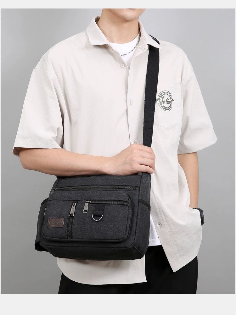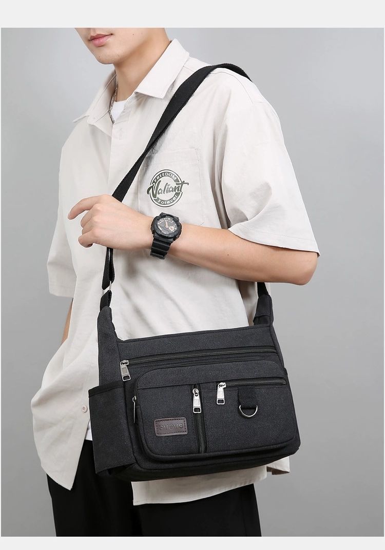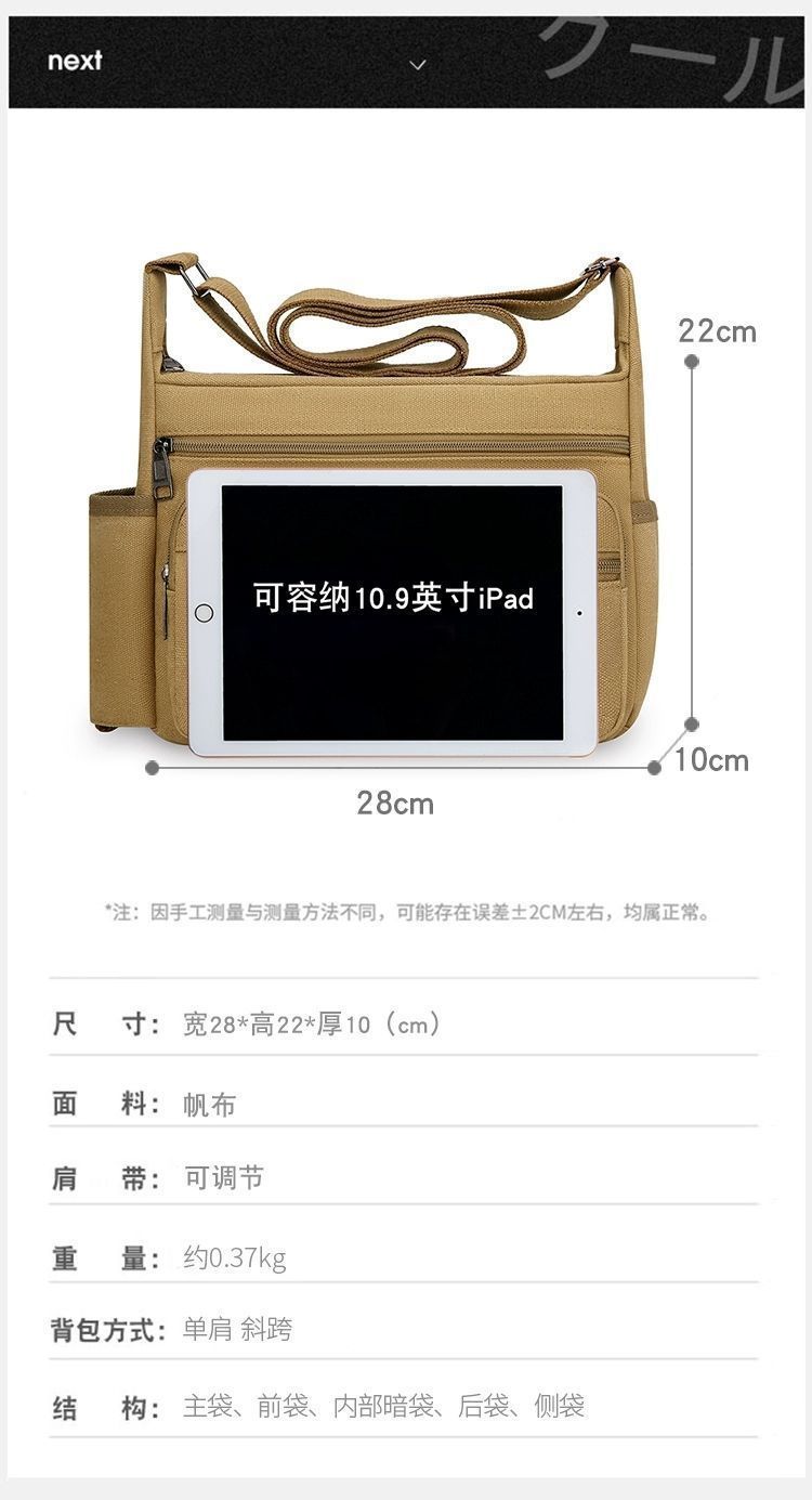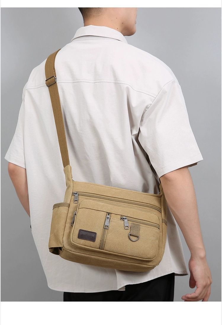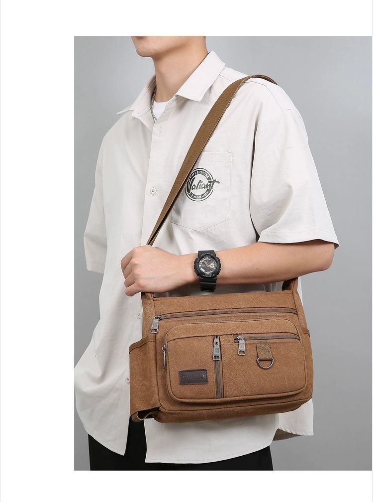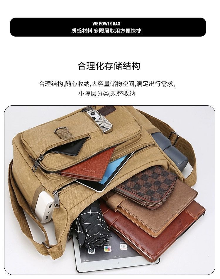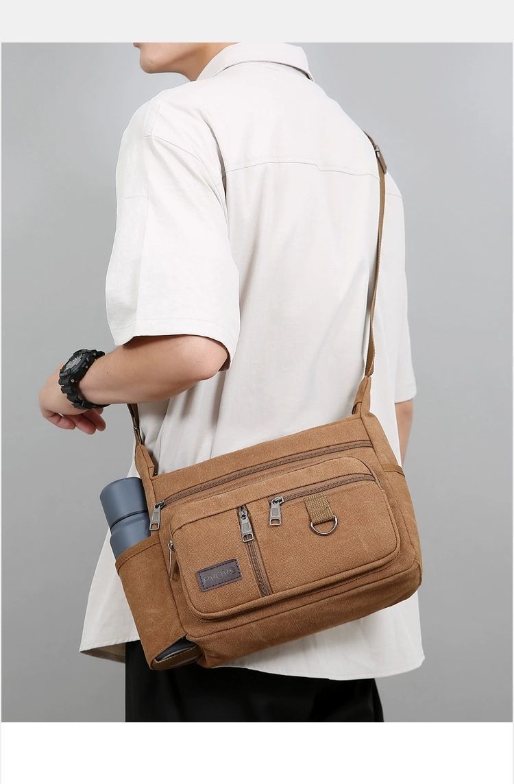 캔버스 가방 남성용 어깨 가방 크로스 바디 백 다층 대용량 배낭 캐주얼 가방 대형 워터 컵 빈티지 남성용 가방스토어 가기