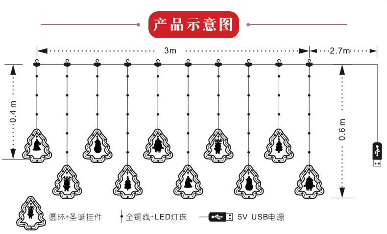 LED 가죽 라이트 크리스마스 커튼 라이트 스트링 산타클로스 크리스마스 트리 모양 방 장식 라이트 라이트 스트립 컬러 라이트