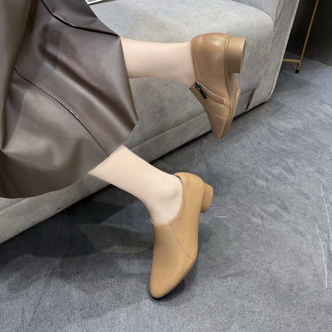 뾰족한 신발 여성의 2024 년 가을과 겨울 새로운 영국 스타일 깊은 입 가죽 신발 간단한 우아한 사이드 지퍼 사계절 신발 여성 신발스토어 가기