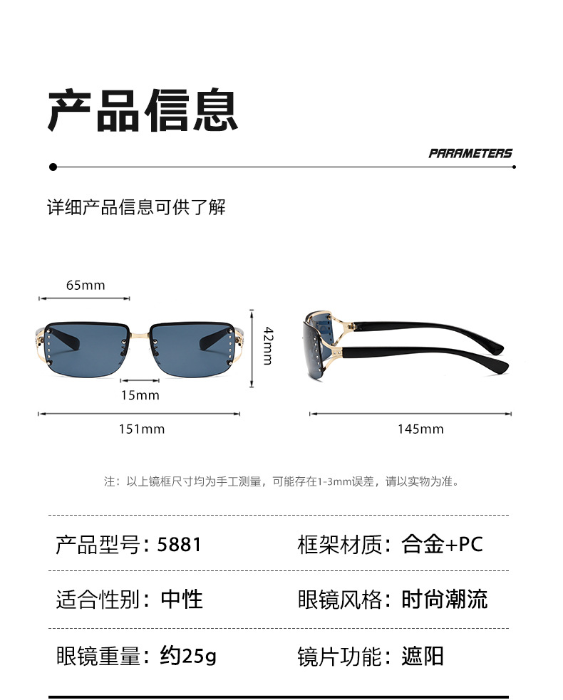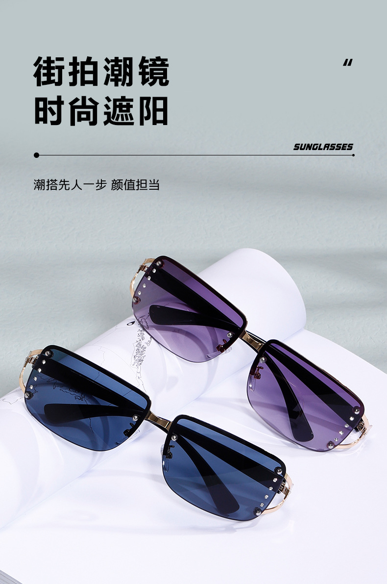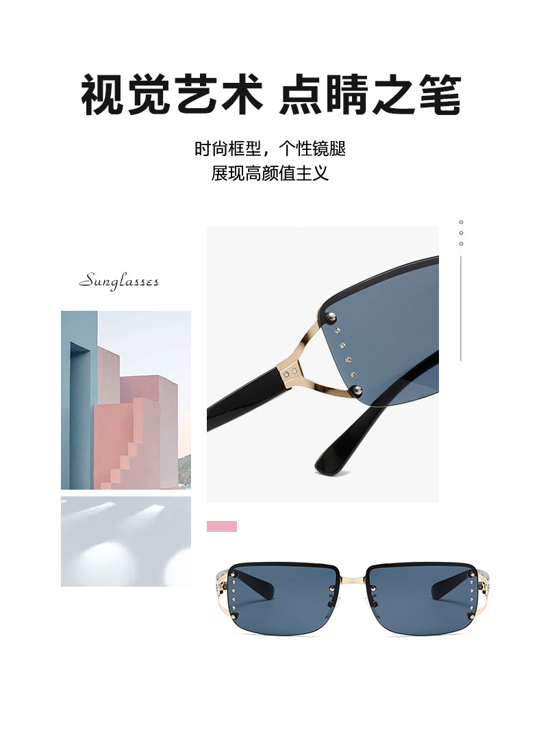 밀레니엄 미래 기술 센스 펑크 선글라스 남성과 여성의 트렌디 한 인터넷 유행 선글라스 프레임리스 다이아몬드 박스 선글라스 여성