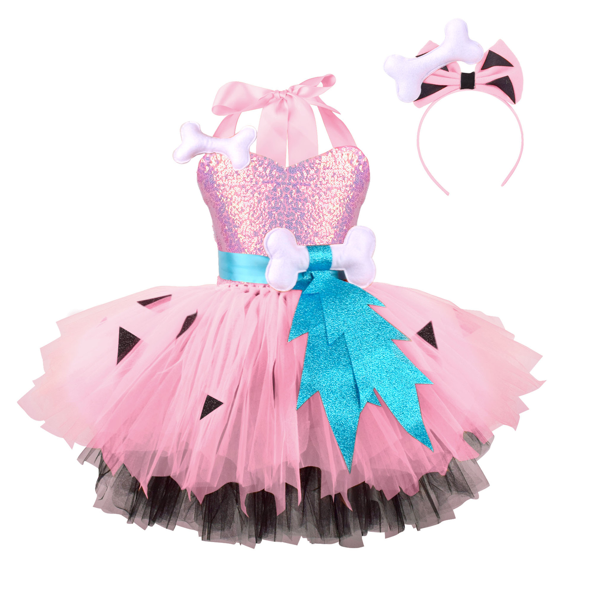 2024跨境热销疯狂原始人女童万圣节派对COS连衣裙 3色可选 亚马逊货源