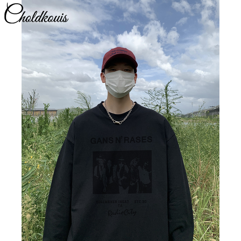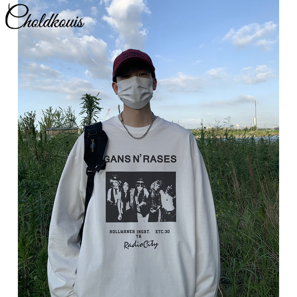 200g 무거운 긴 소매 티셔츠 남자의 봄과 가을 느슨한 두꺼운 기본 셔츠 단색 면 둥근 목 긴 소매