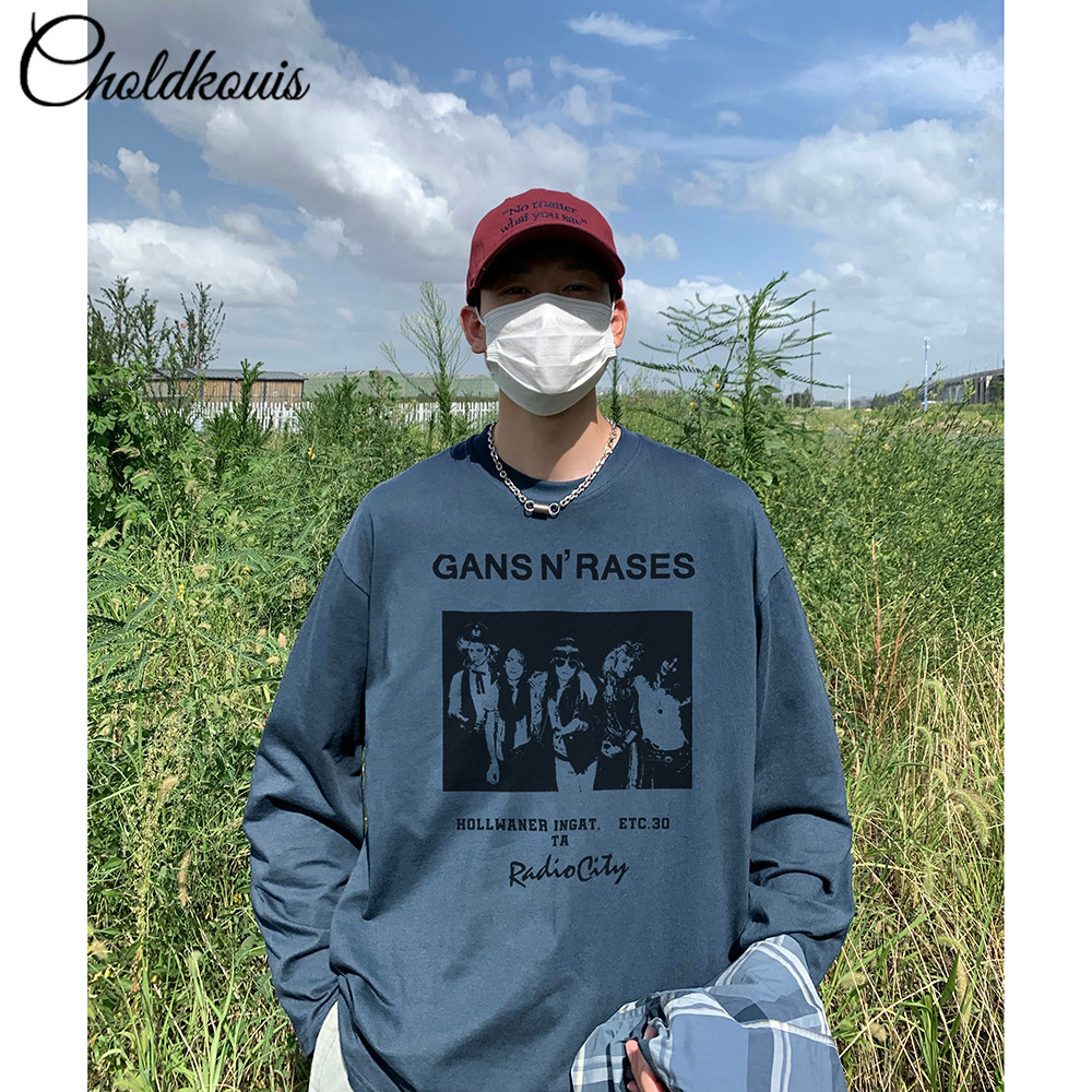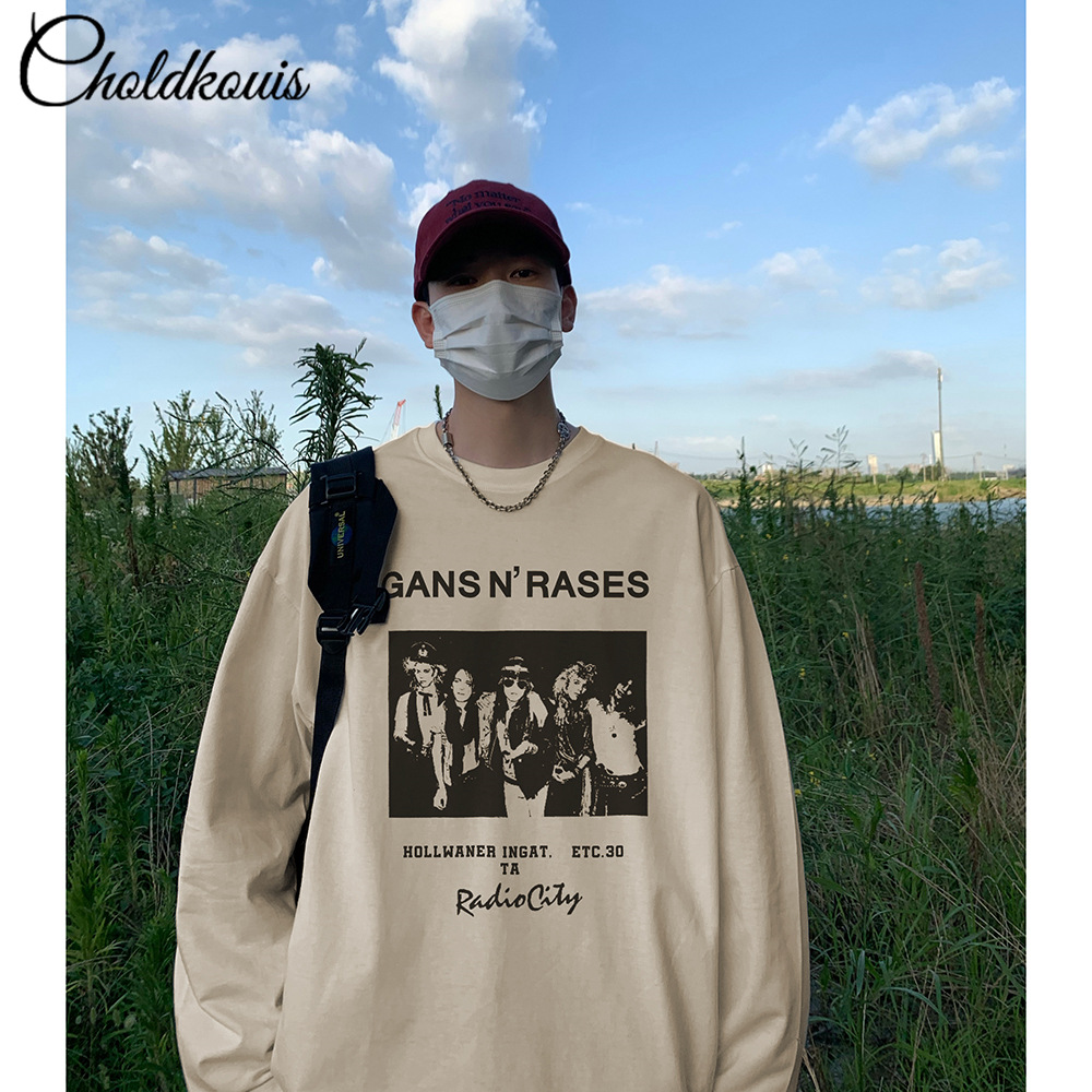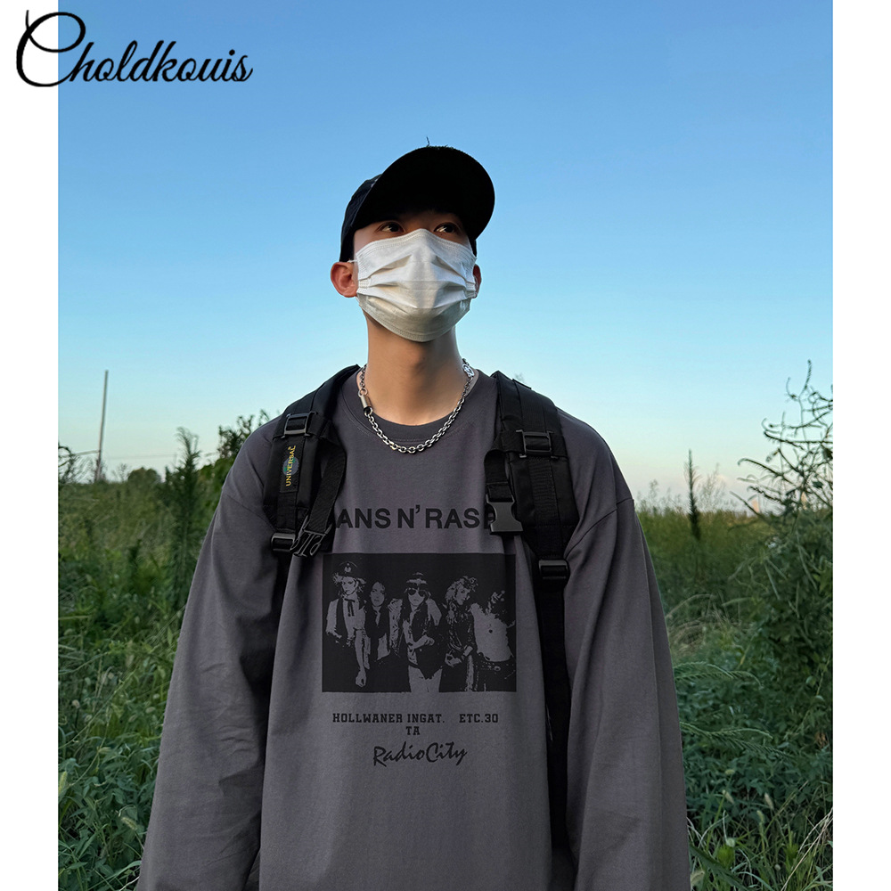 200g 무거운 긴 소매 티셔츠 남자의 봄과 가을 느슨한 두꺼운 기본 셔츠 단색 면 둥근 목 긴 소매스토어 가기