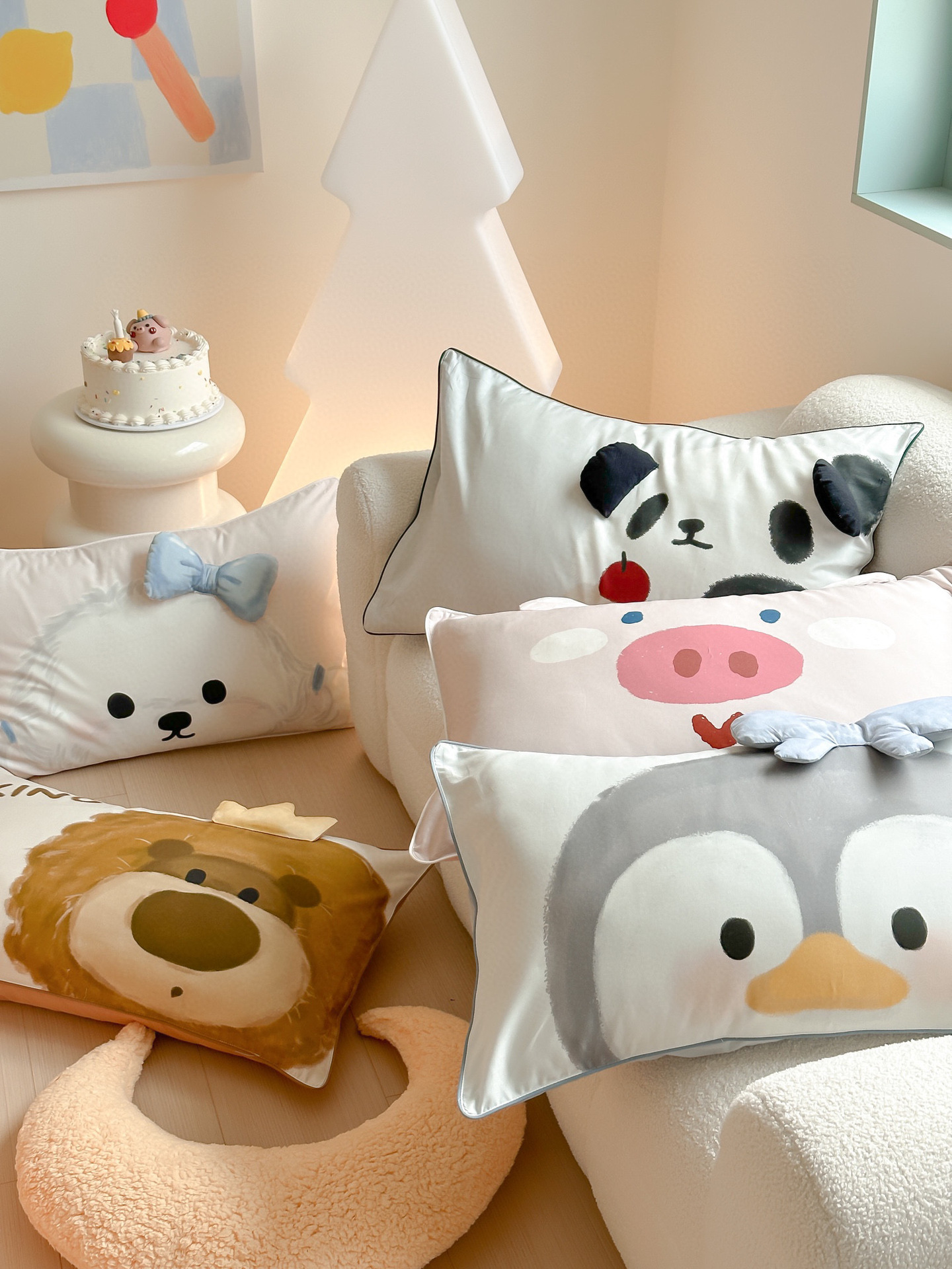 Ins 스타일 귀여운 만화 단일 제품 모든면 세척 면화 베개 케이스 어린이 작은 베개 후드 커버 모든면 학생 단일 베개