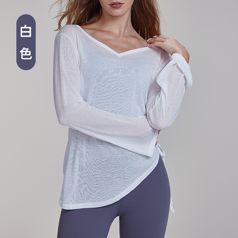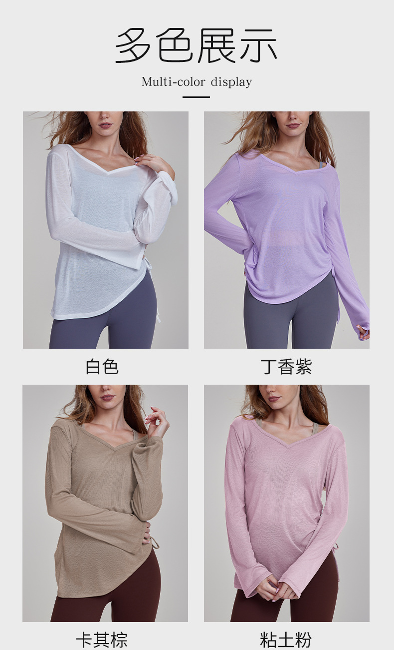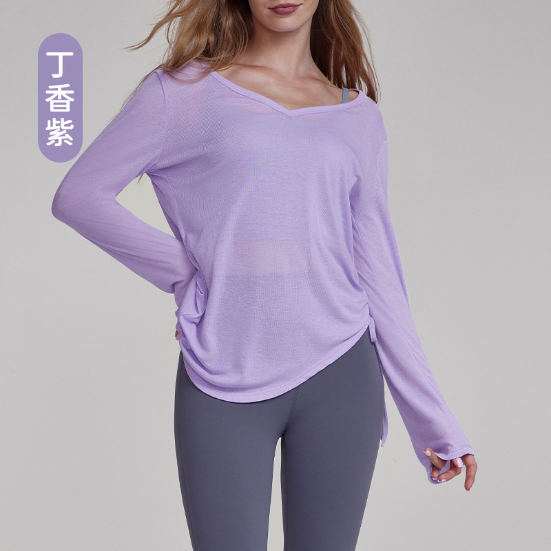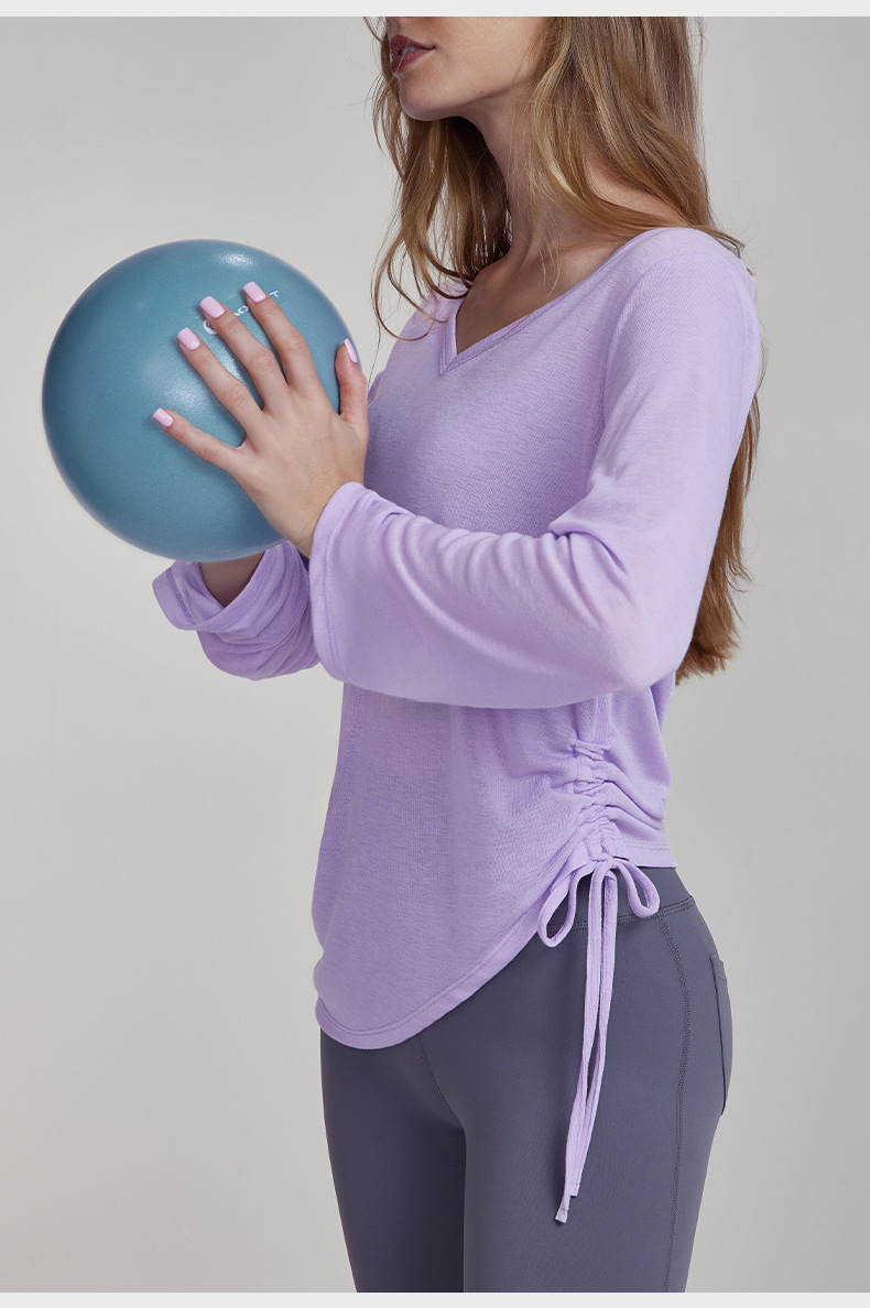가을 경량 요가 의류 긴팔 느슨한 통기성 스포츠 피트니스 탑 주름 슬리밍 요가 블라우스 여성용 엉덩이 커버스토어 가기