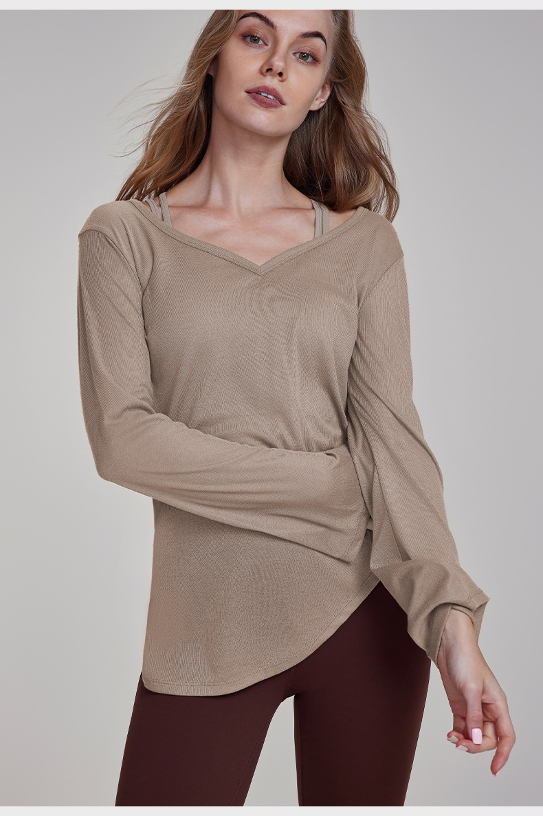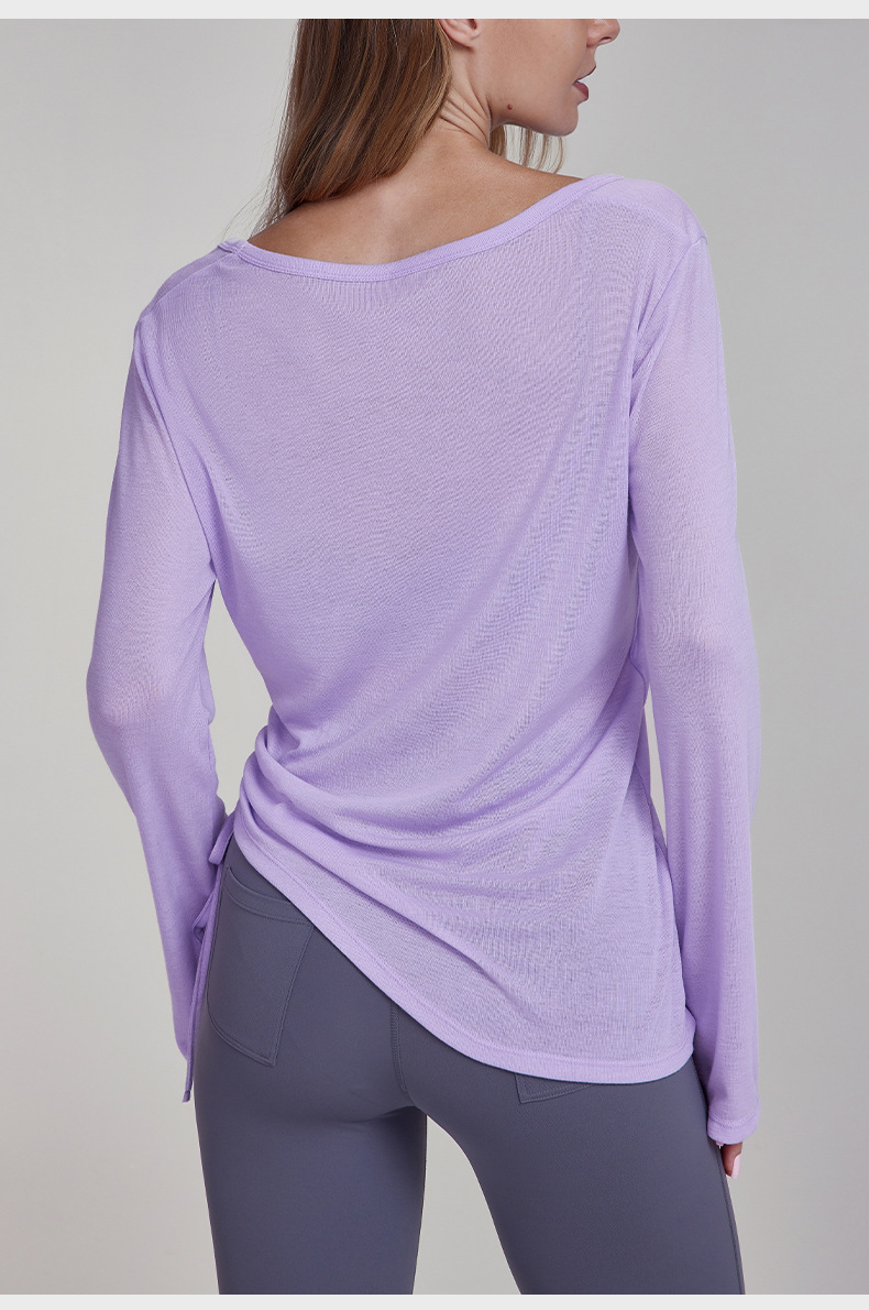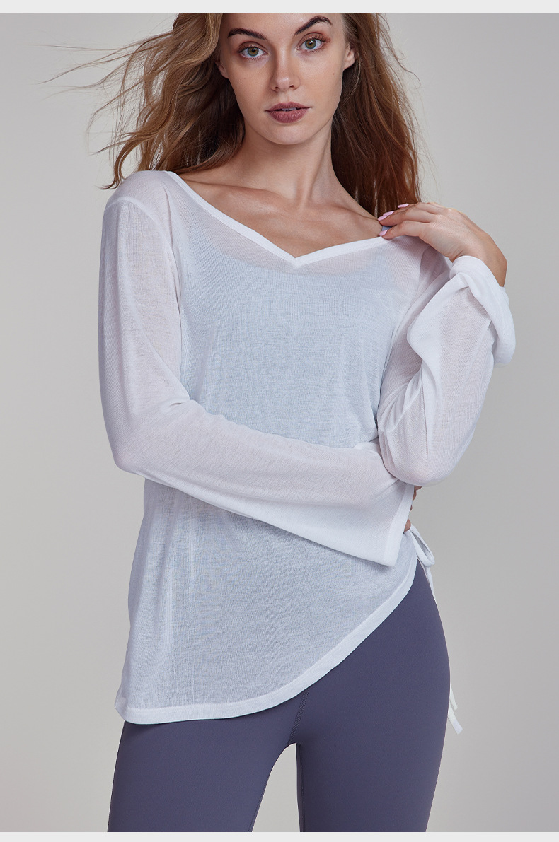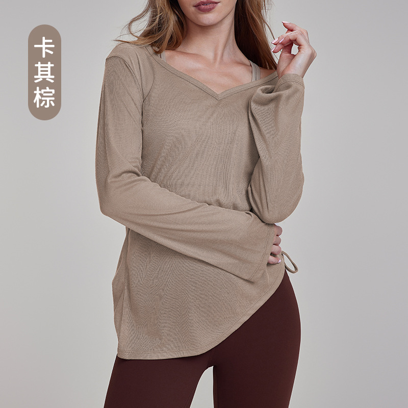 가을 경량 요가 의류 긴팔 느슨한 통기성 스포츠 피트니스 탑 주름 슬리밍 요가 블라우스 여성용 엉덩이 커버스토어 가기