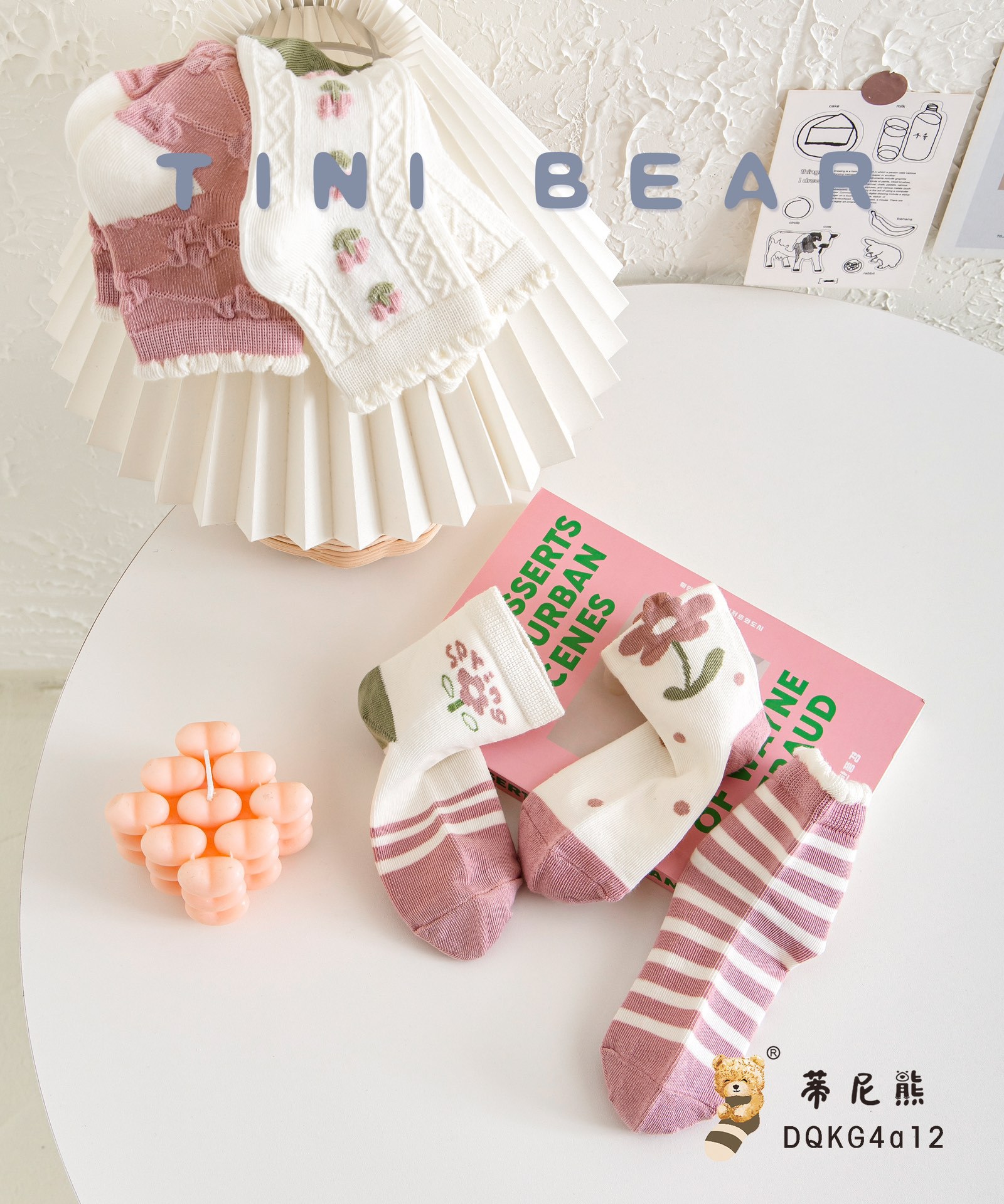 티니 곰 가을과 겨울 새로운 어린이 양말 1-12 세 소년과 소녀 귀여운 만화 면화 봄과 가을 양말 도매스토어 가기