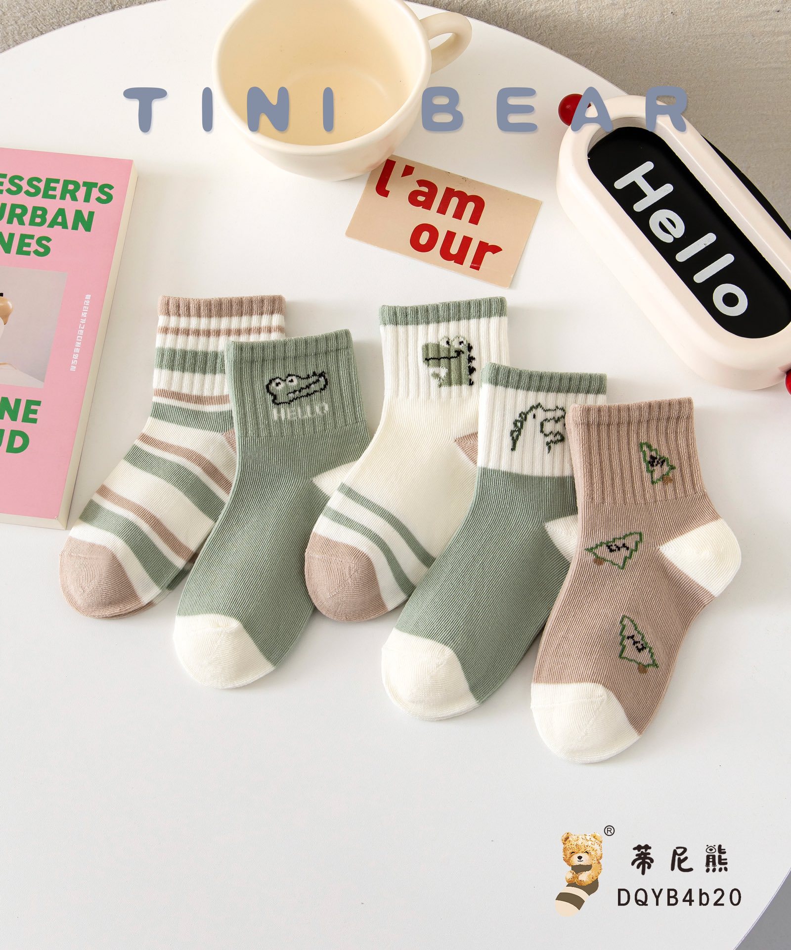 티니 곰 가을과 겨울 새로운 어린이 양말 1-12 세 소년과 소녀 귀여운 만화 면화 봄과 가을 양말 도매