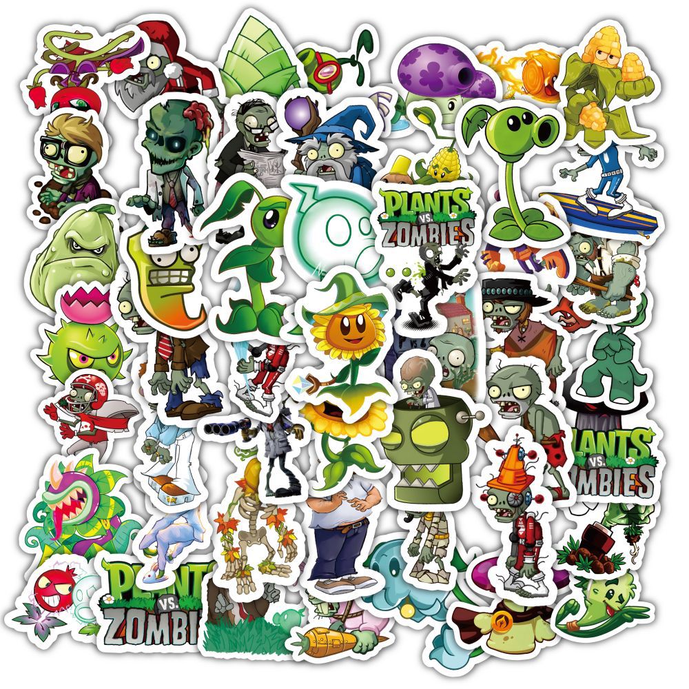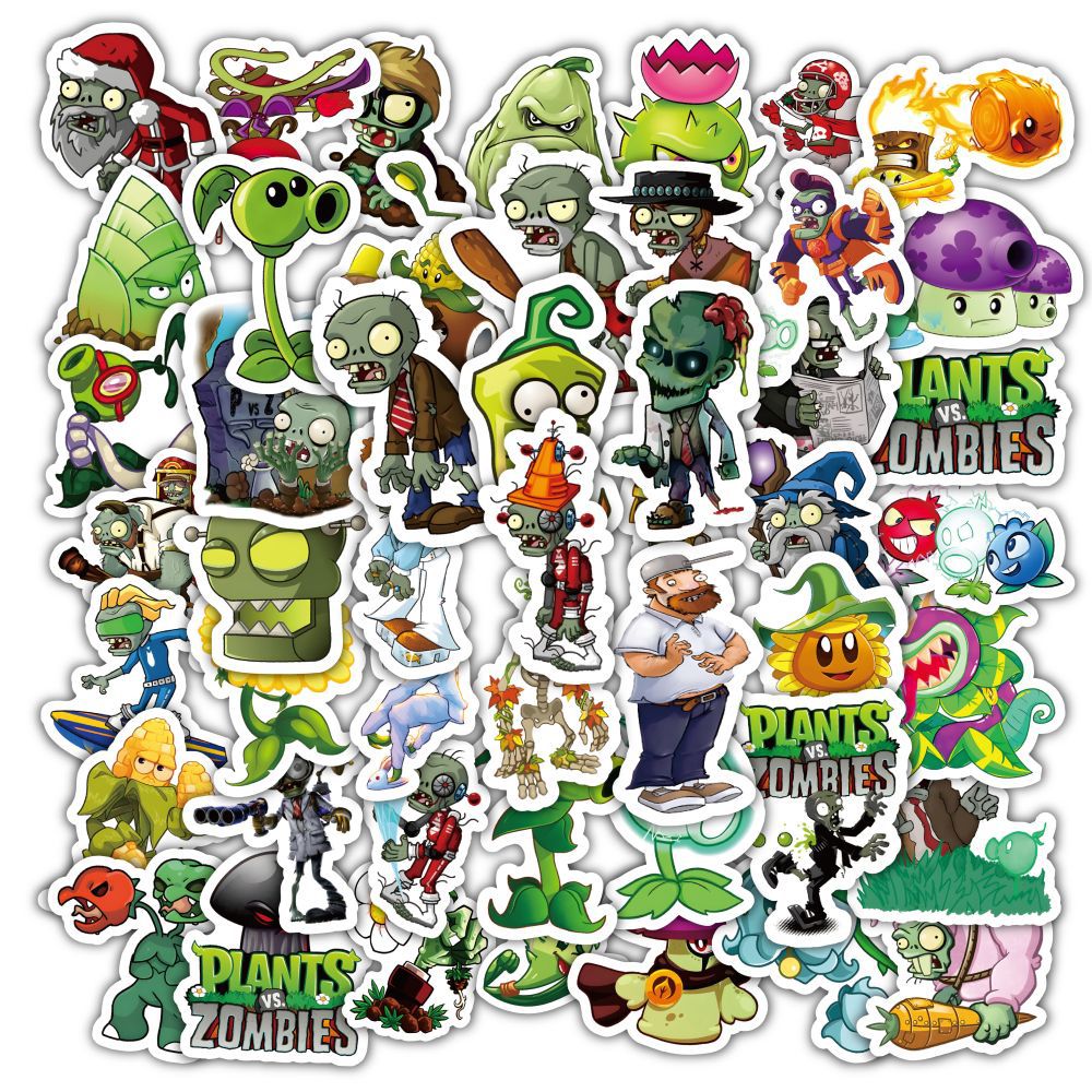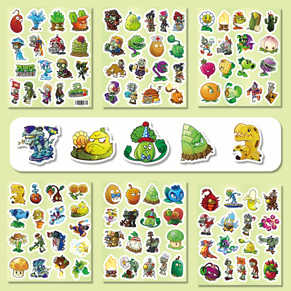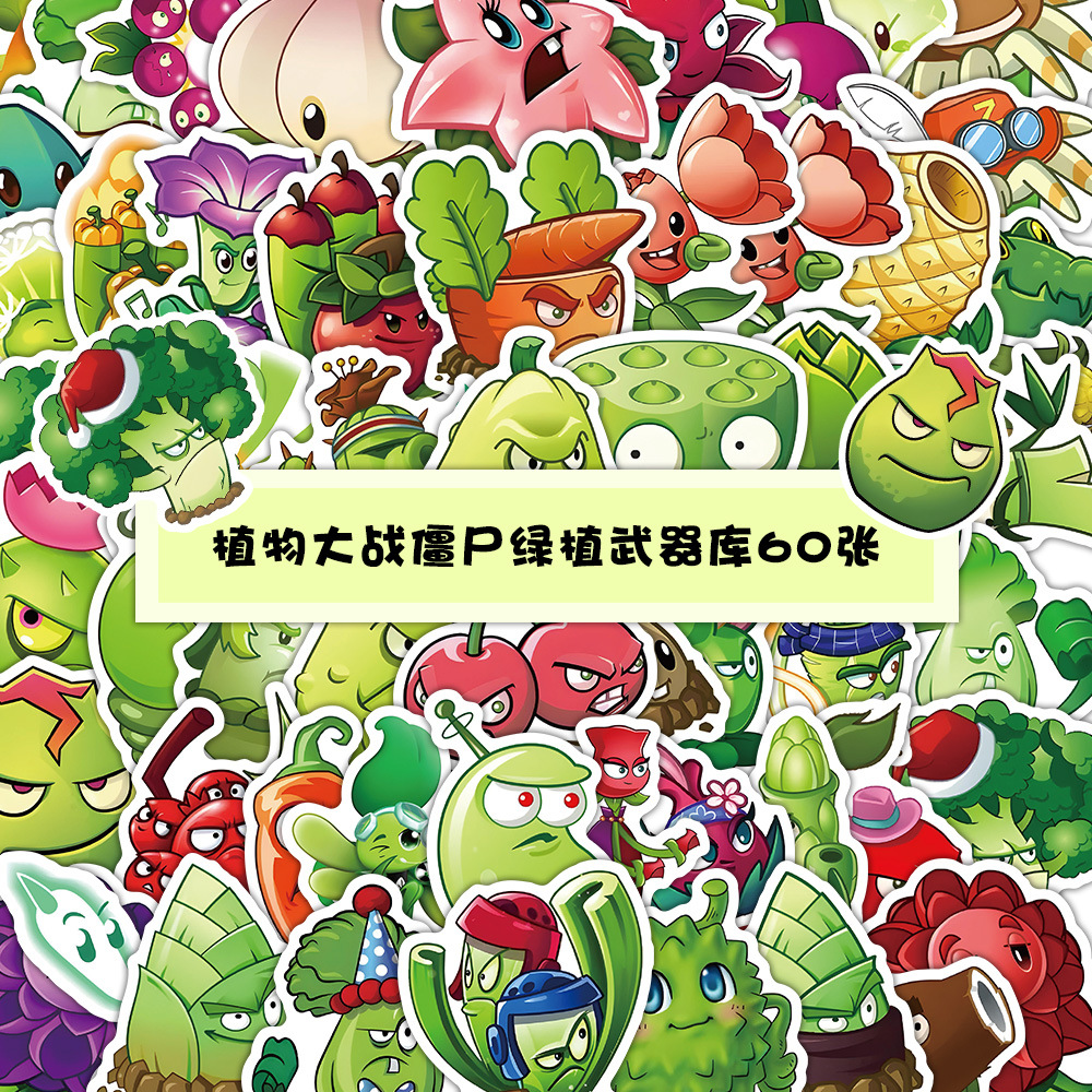 식물 대 좀비 스티커 60개, 만화 귀여운 주변기기 DIY 장식 학생 문구 스티커 게임 스티커스토어 가기