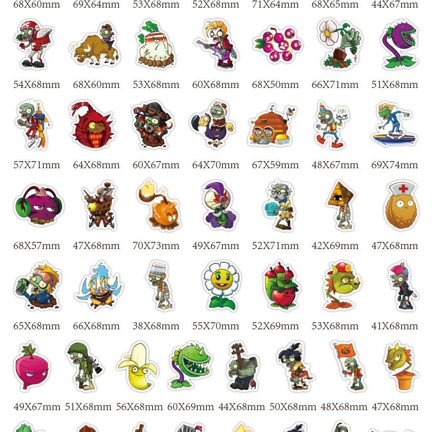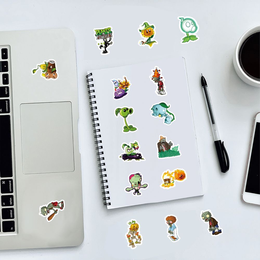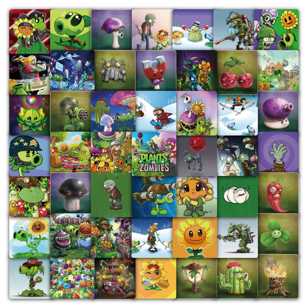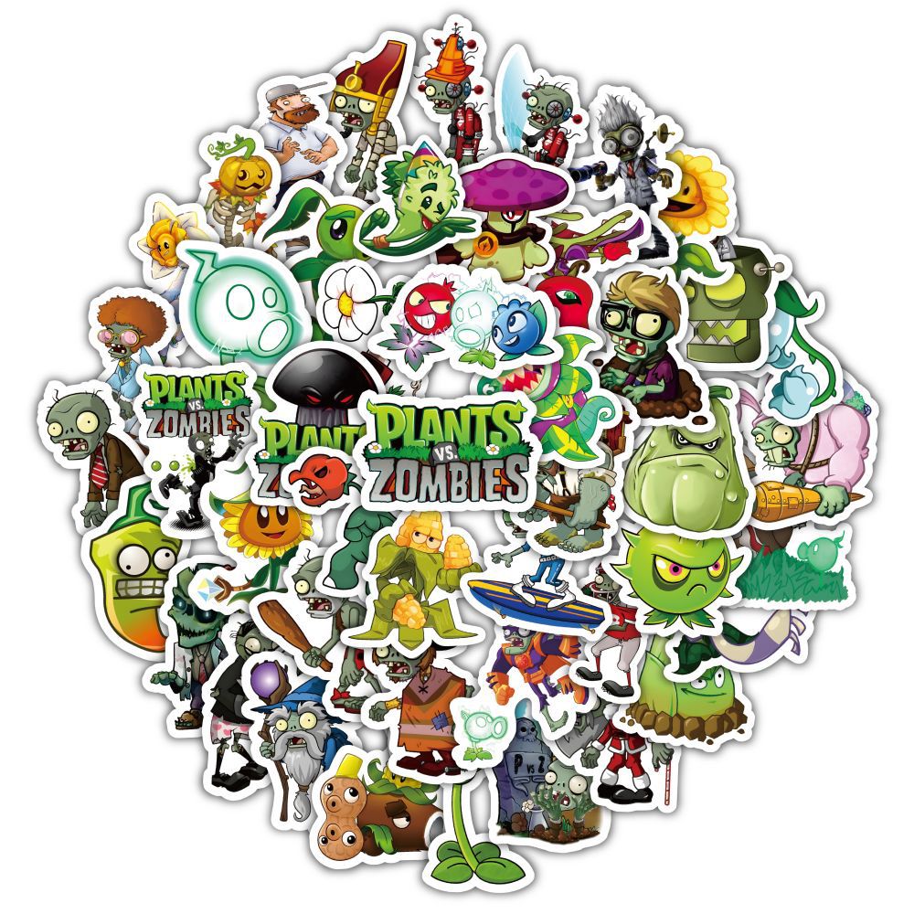 식물 대 좀비 스티커 60개, 만화 귀여운 주변기기 DIY 장식 학생 문구 스티커 게임 스티커스토어 가기