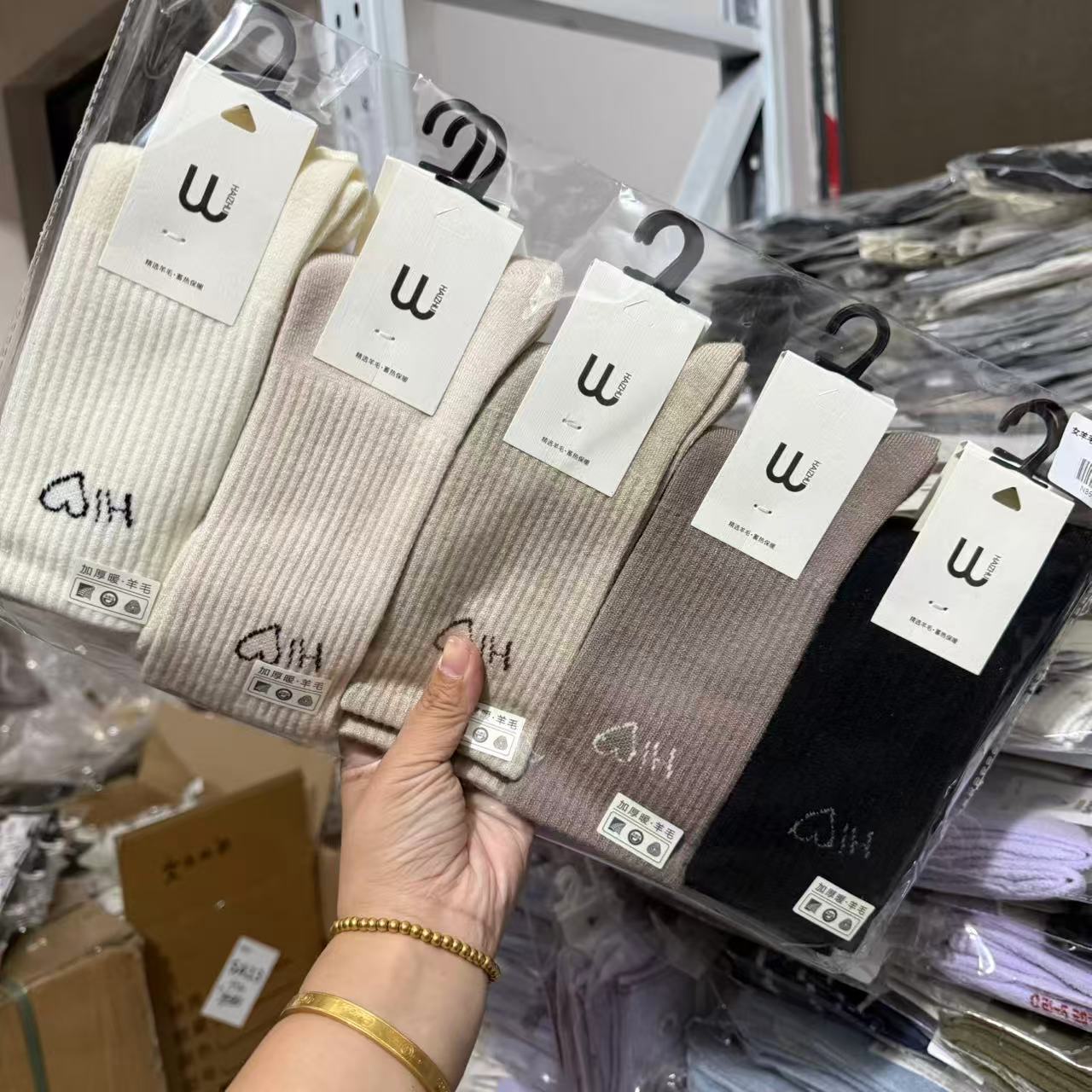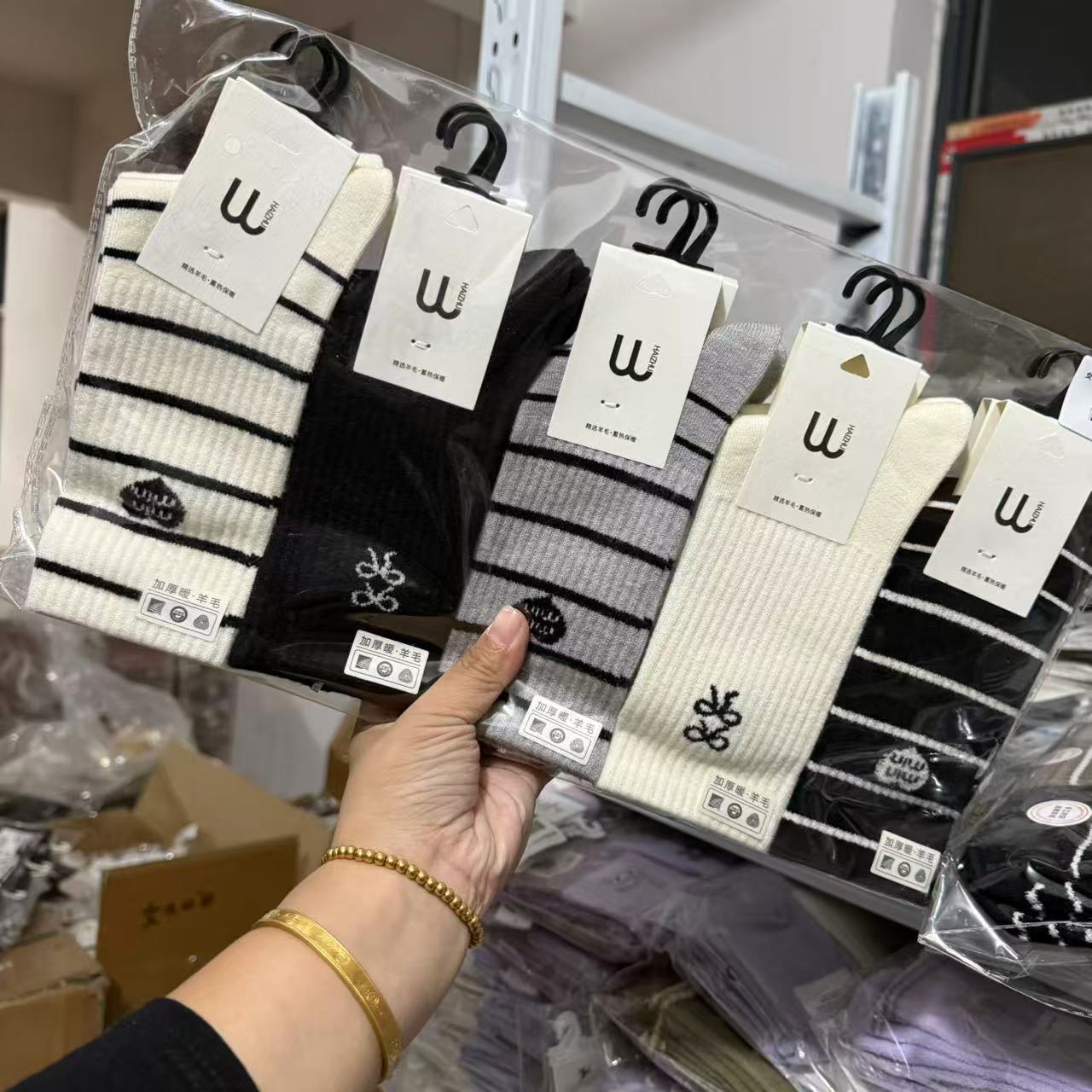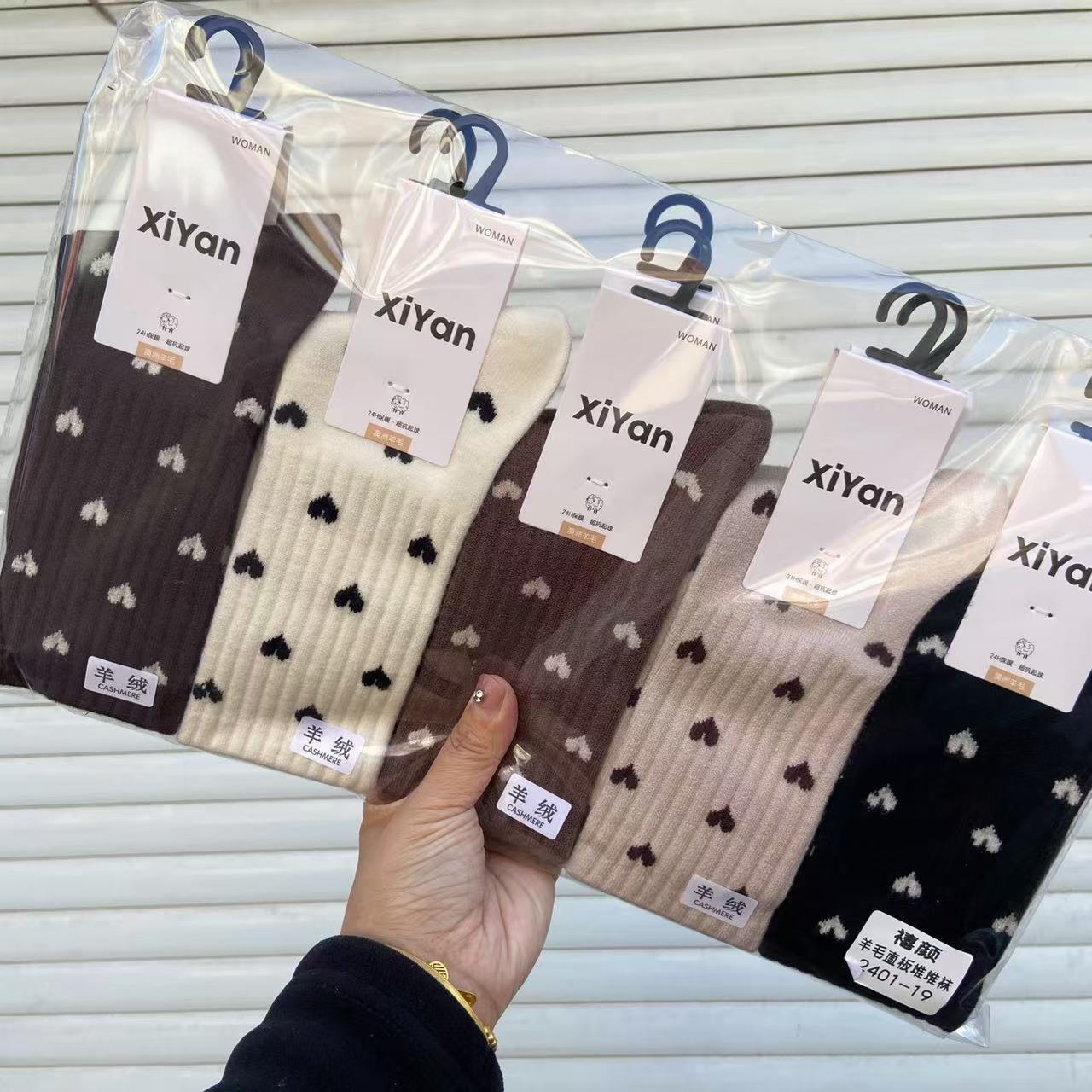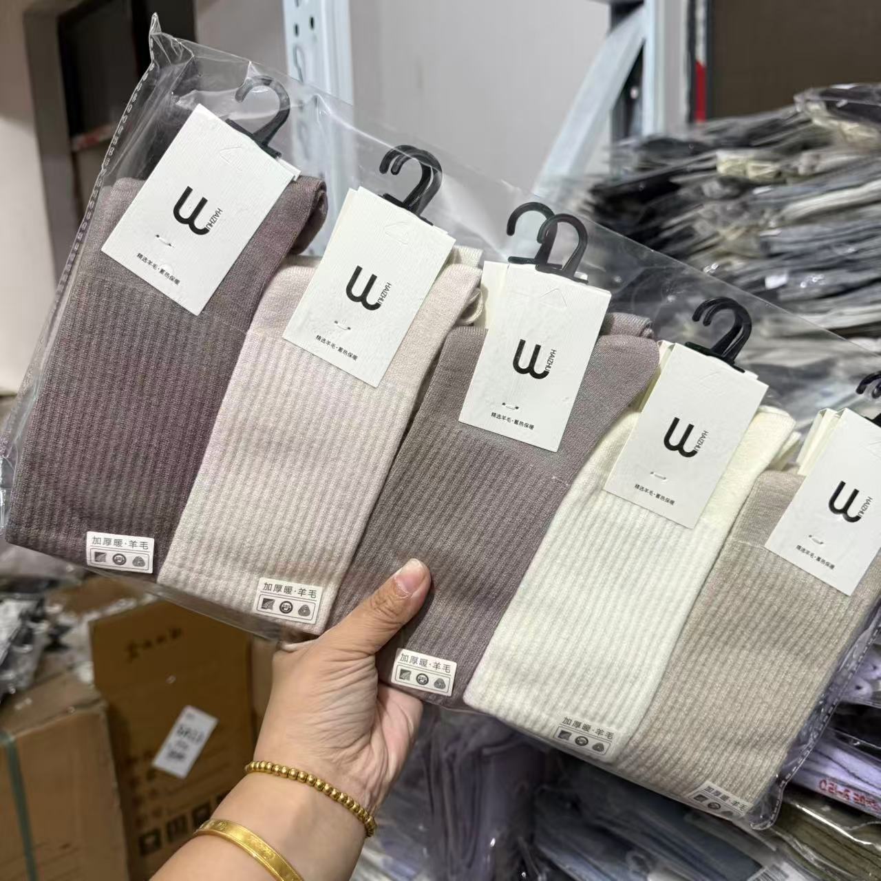 캐시미어 양말 여성의 가을과 겨울 중간 배럴 두꺼운 캐시미어 스타킹 필링 스타킹 솔리드 컬러 스트라이프 더블 바늘 공예스토어 가기