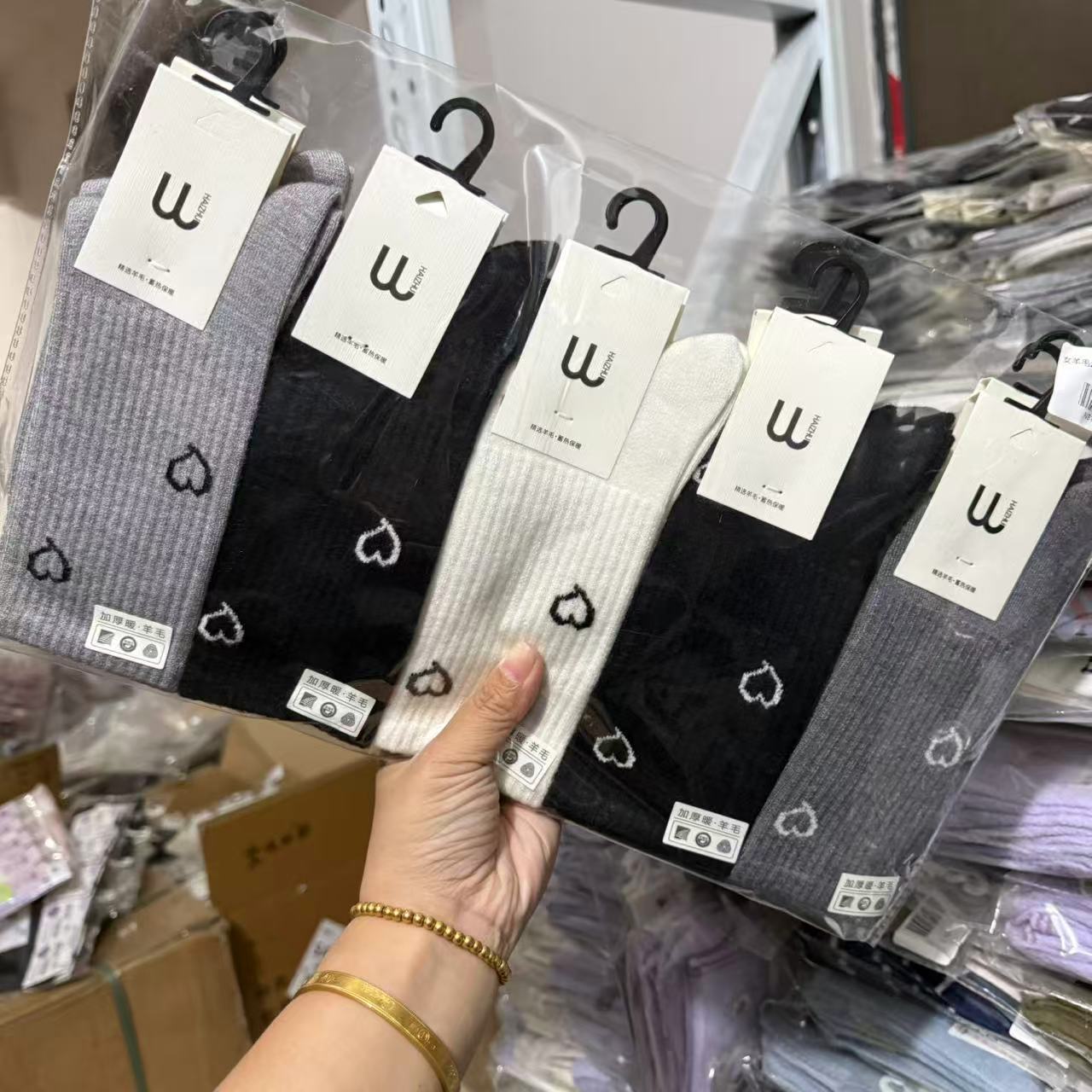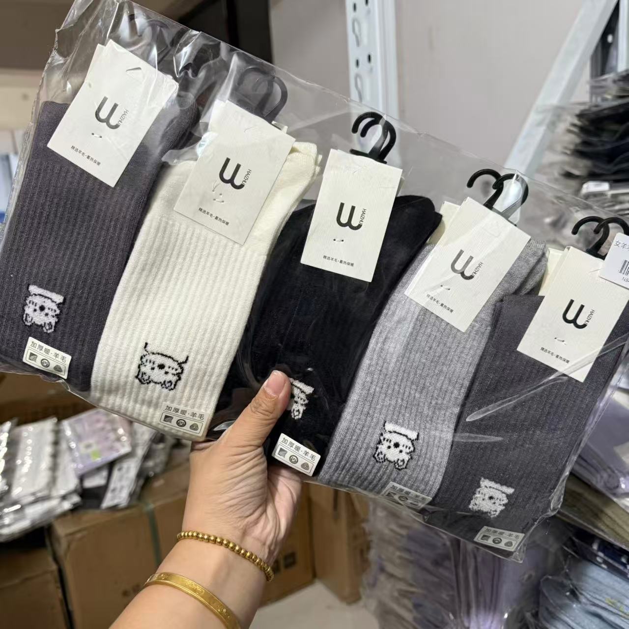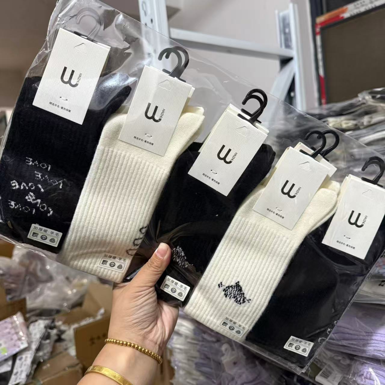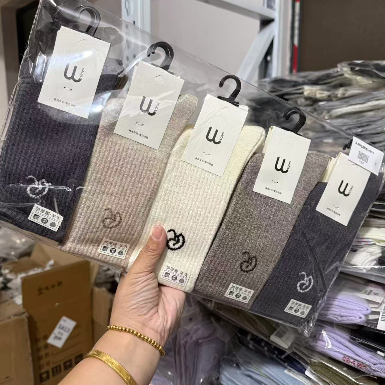 캐시미어 양말 여성의 가을과 겨울 중간 배럴 두꺼운 캐시미어 스타킹 필링 스타킹 솔리드 컬러 스트라이프 더블 바늘 공예스토어 가기