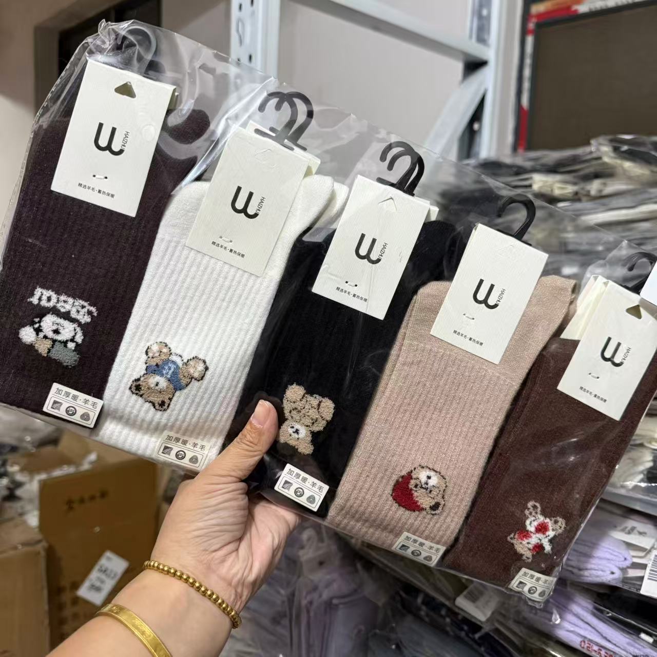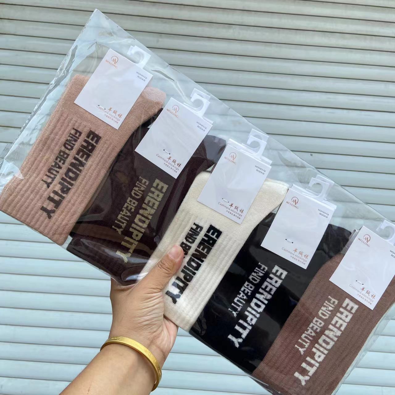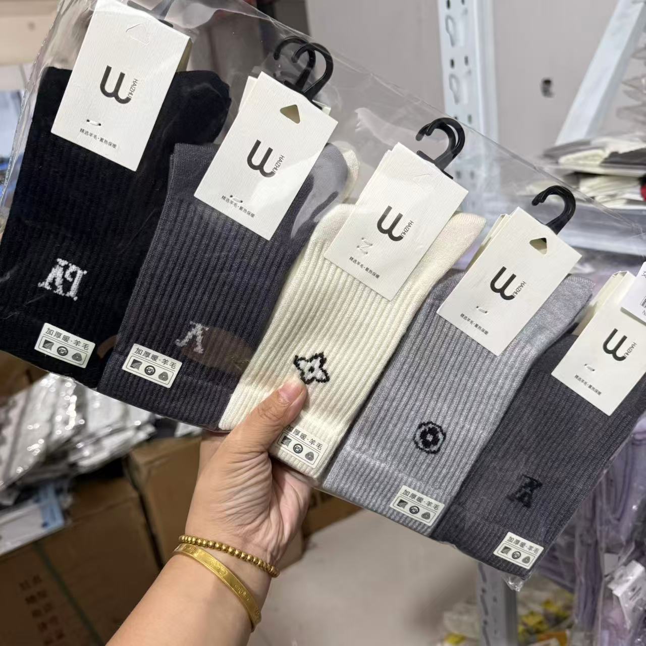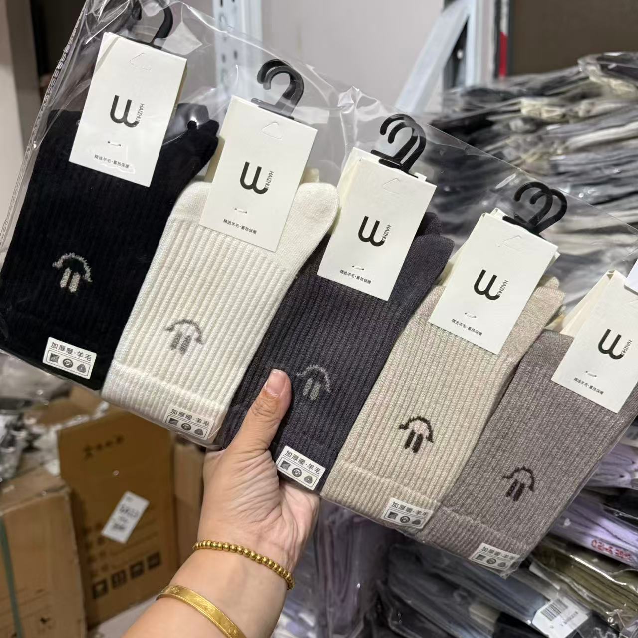 캐시미어 양말 여성의 가을과 겨울 중간 배럴 두꺼운 캐시미어 스타킹 필링 스타킹 솔리드 컬러 스트라이프 더블 바늘 공예스토어 가기