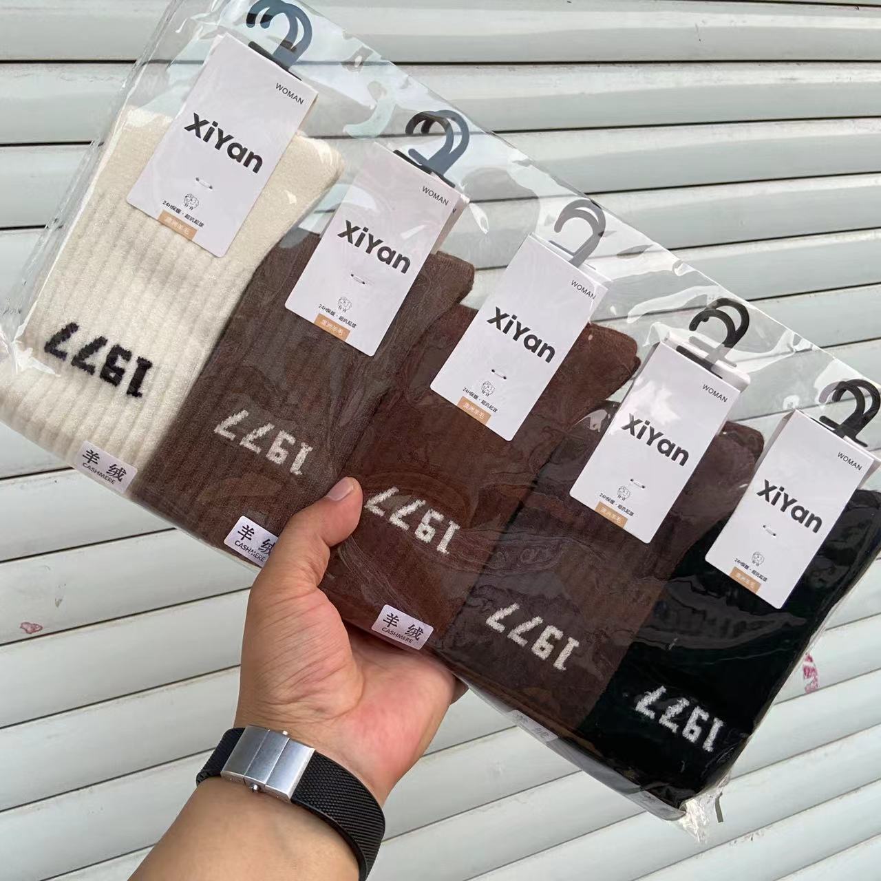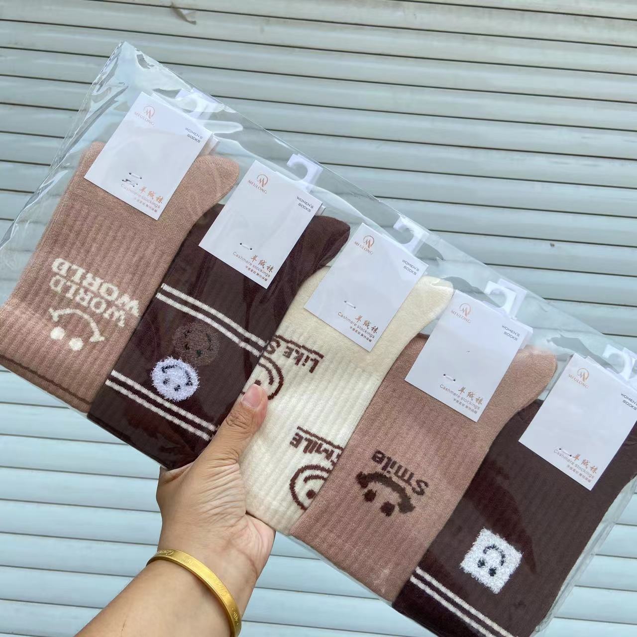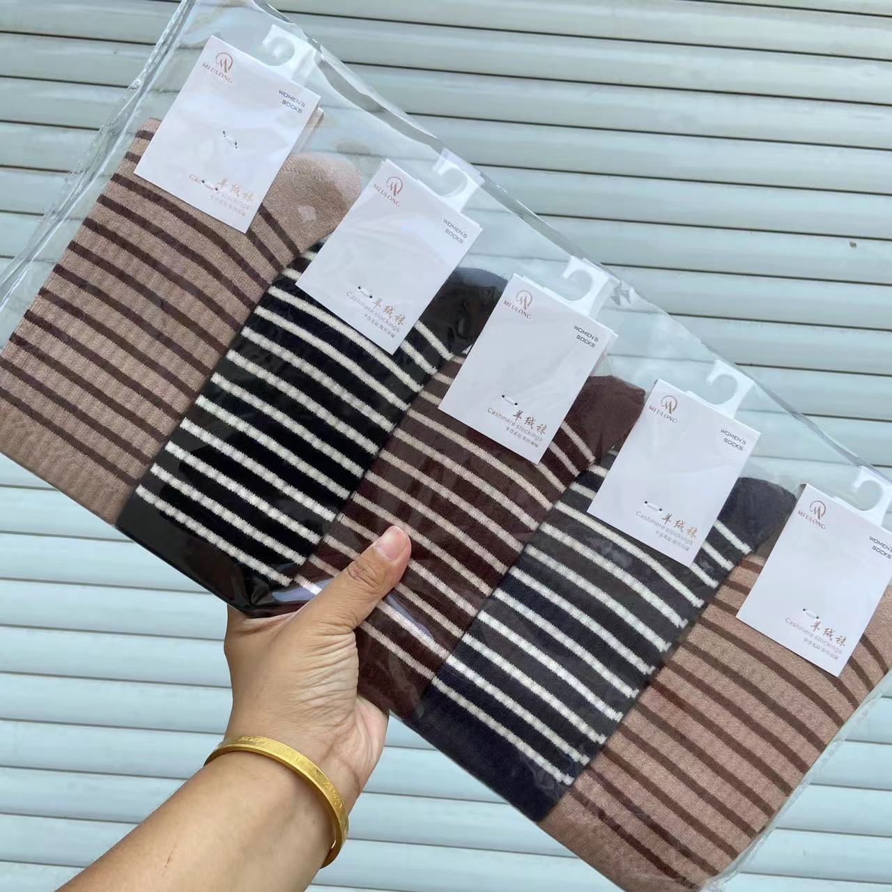 캐시미어 양말 여성의 가을과 겨울 중간 배럴 두꺼운 캐시미어 스타킹 필링 스타킹 솔리드 컬러 스트라이프 더블 바늘 공예