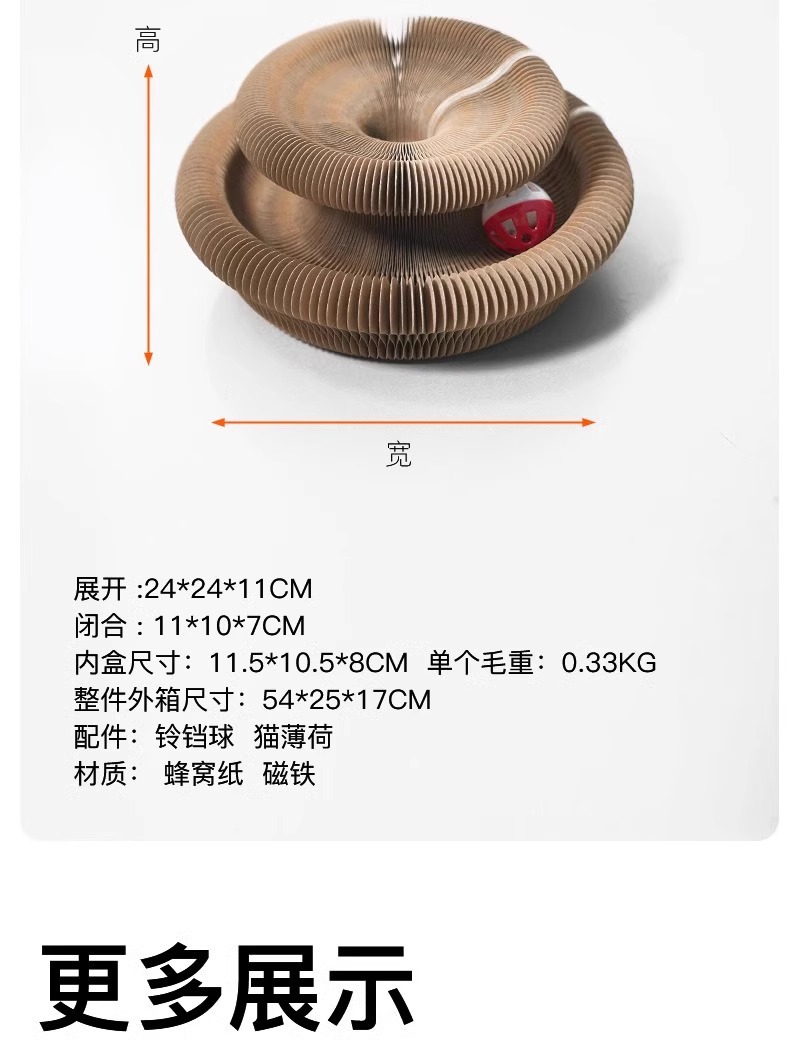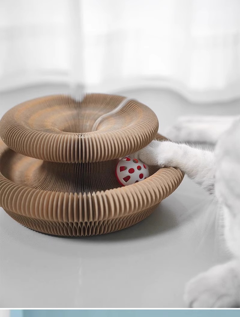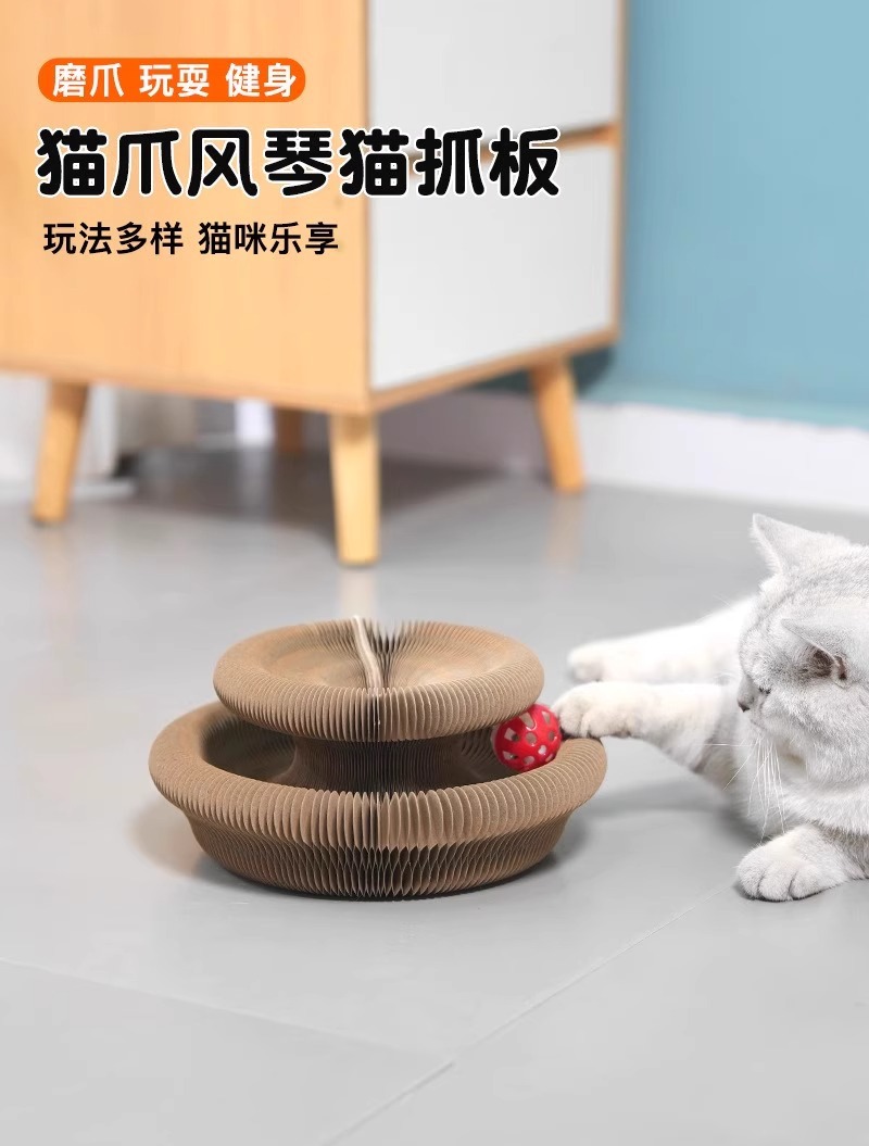 风琴猫抓板带小球玩具磁吸猫咪玩具自嗨解闷瓦楞纸转盘圆形猫玩具