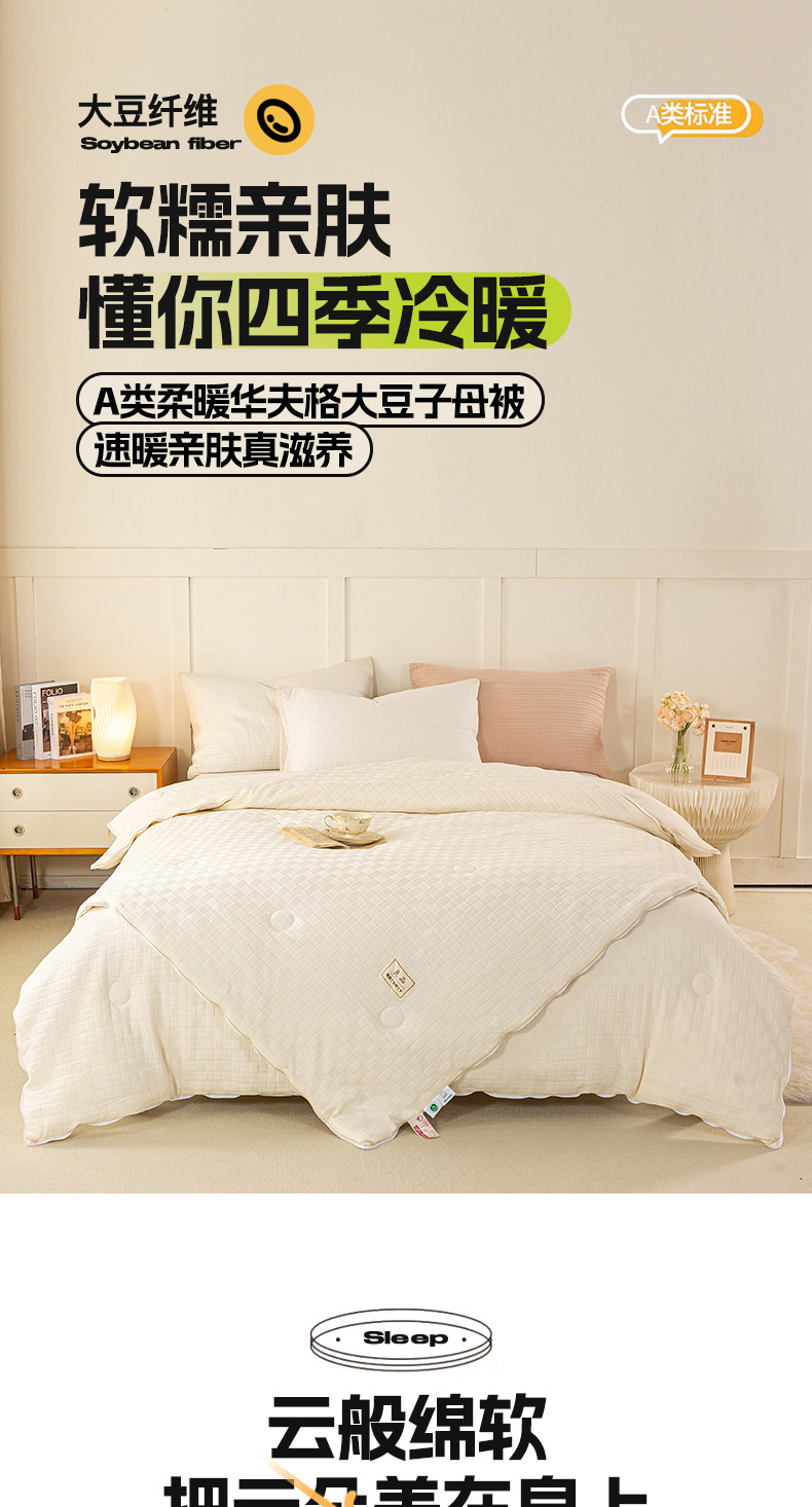 【】일본식 와플 무늬 대두 섬유 봄 가을 이불 두꺼운 보온 면 이불 자카드스토어 가기