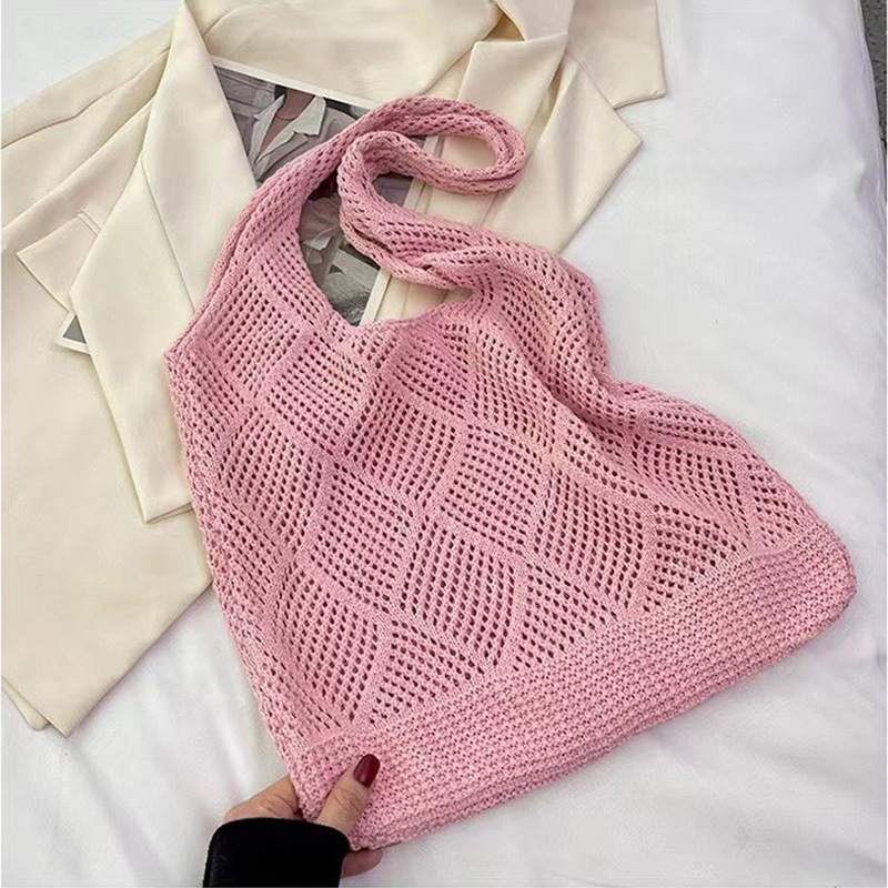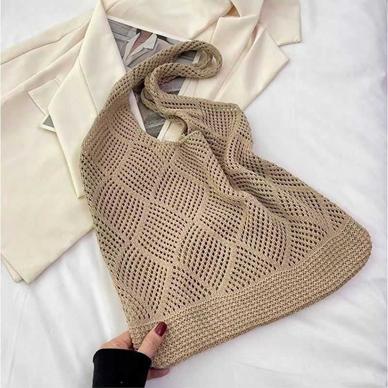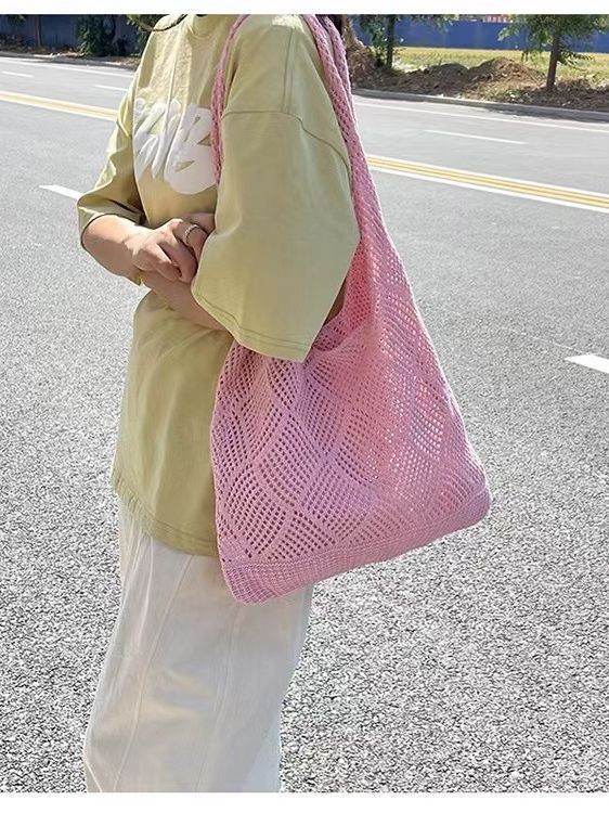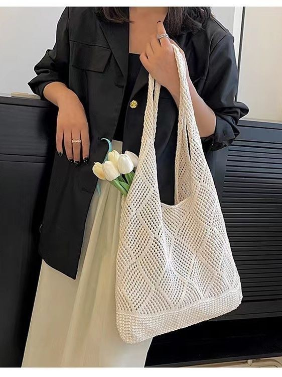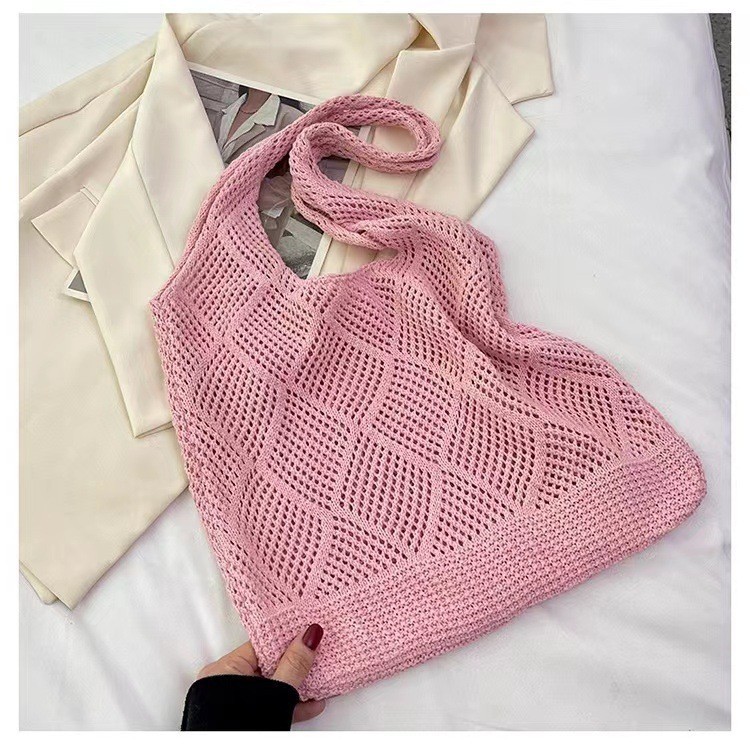 2023 새로운 국경 가방 일본과 한국 토트 백 솔리드 컬러 백 니트 백 빈 가방 비치 백 짠 가방