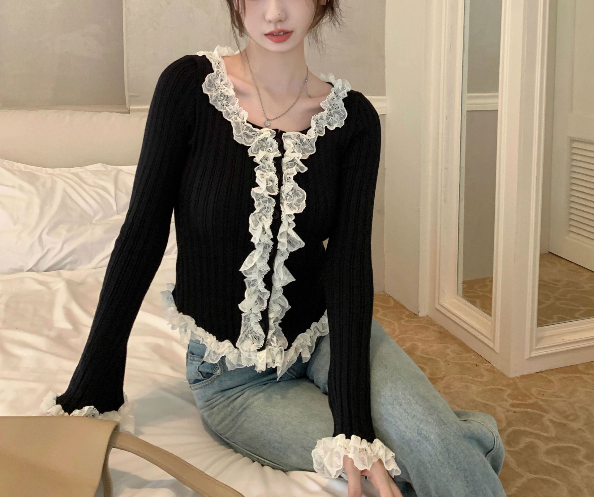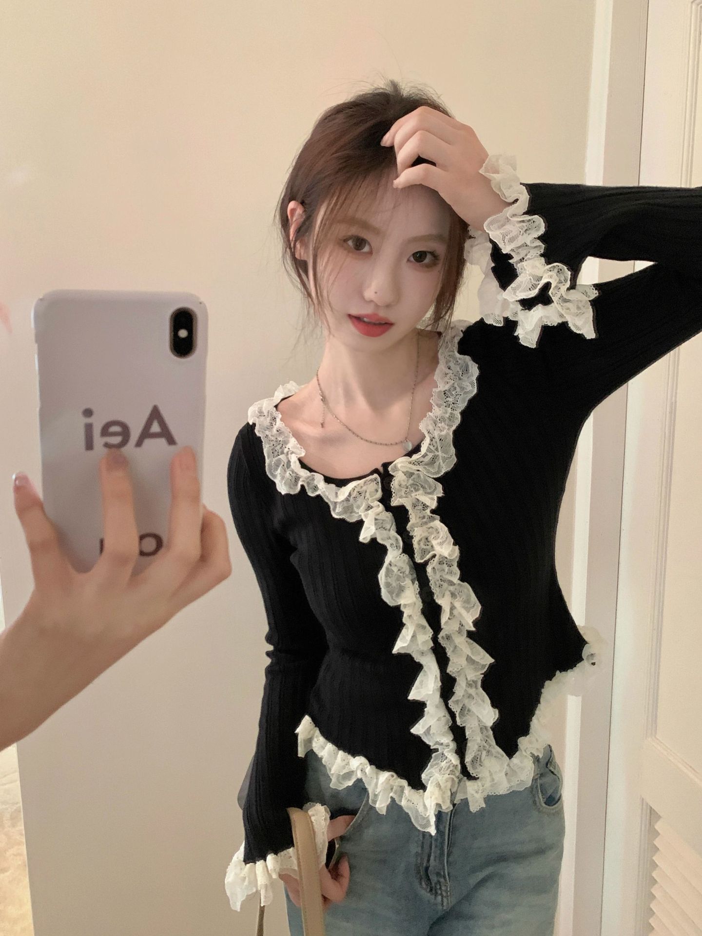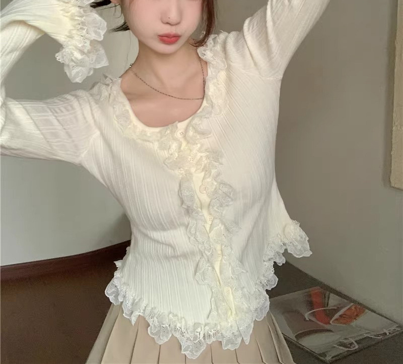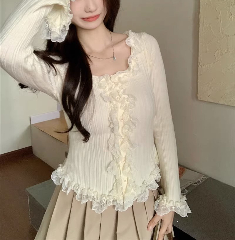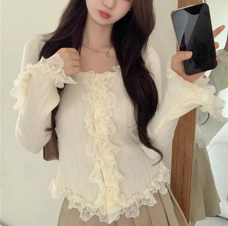 부드러운 스타일 순수한 욕망 니트 작은 카디건 여성 의류 봄과 가을 레이스 스웨터 티 브레이크 프랑스 스타일 내베이스 탑 트렌디