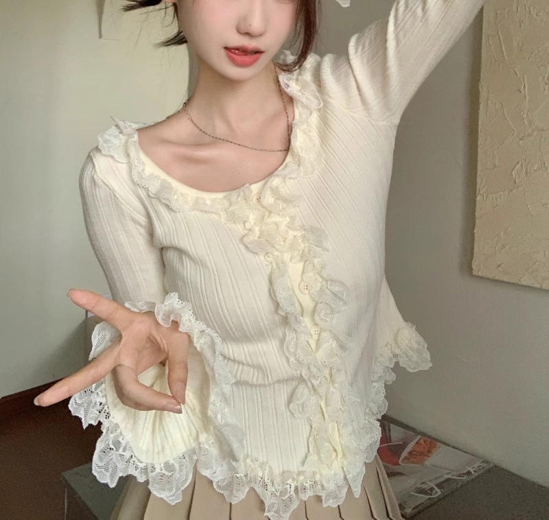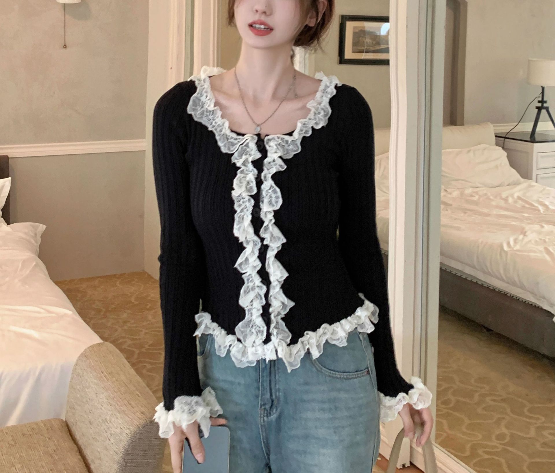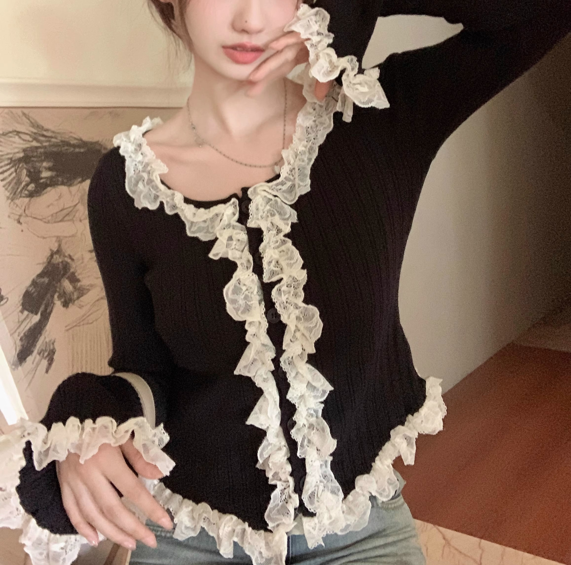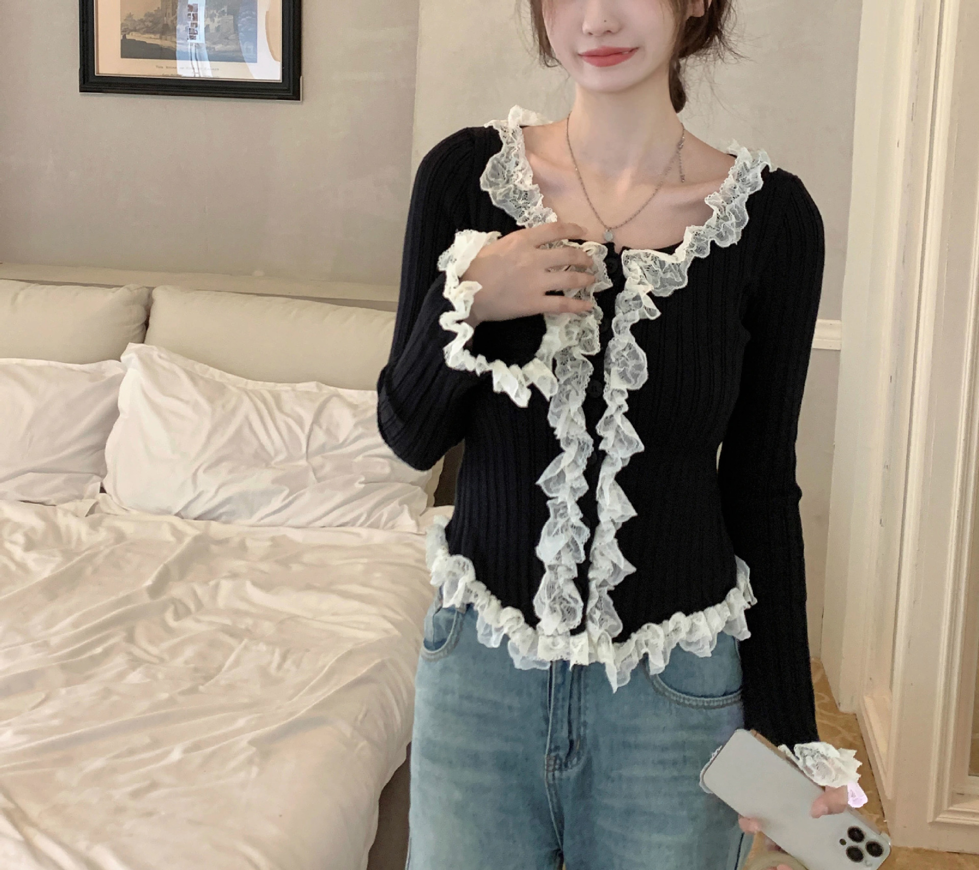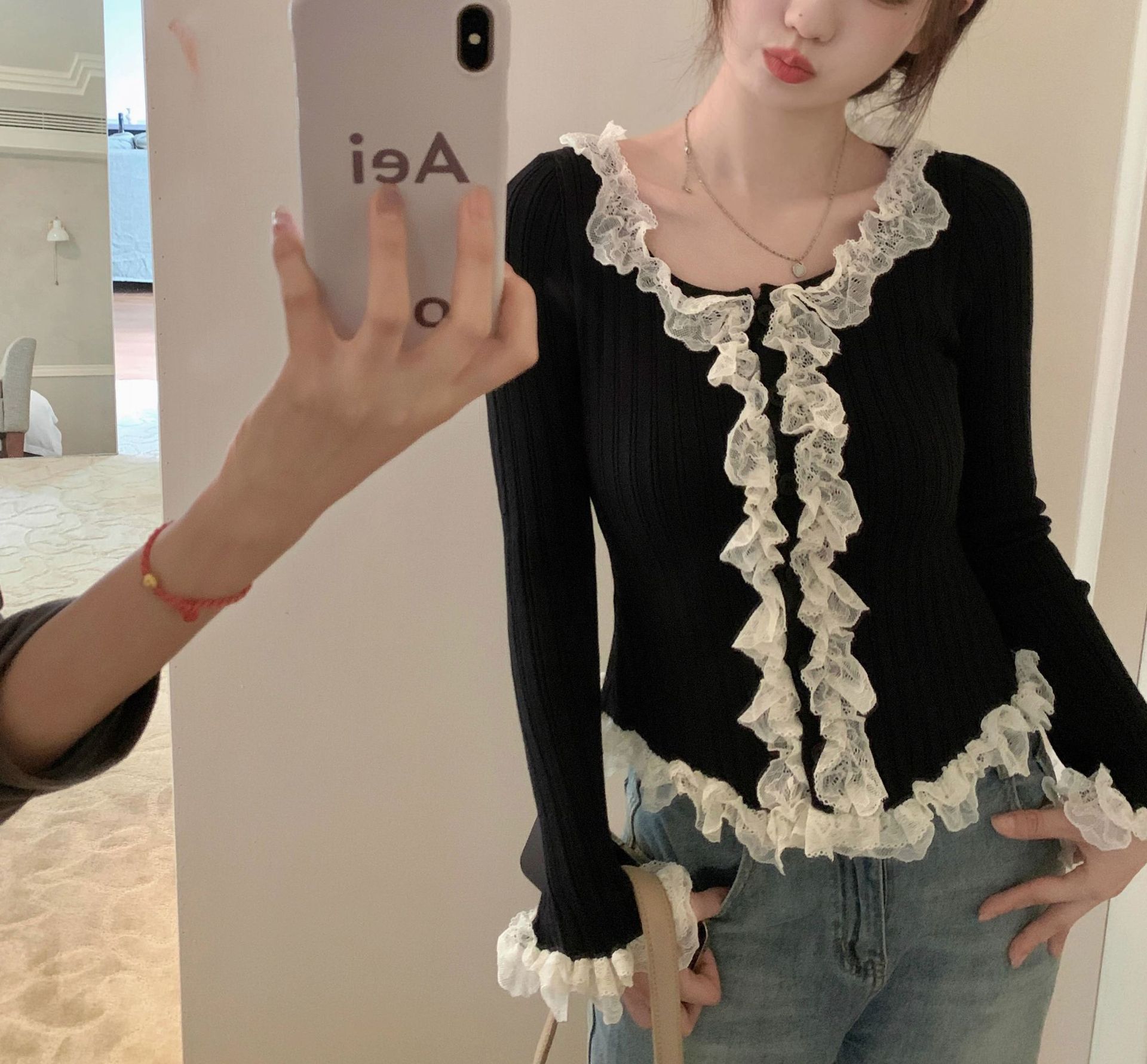 부드러운 스타일 순수한 욕망 니트 작은 카디건 여성 의류 봄과 가을 레이스 스웨터 티 브레이크 프랑스 스타일 내베이스 탑 트렌디
