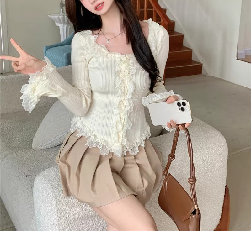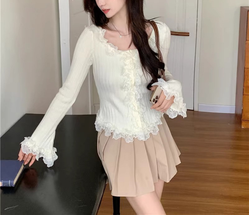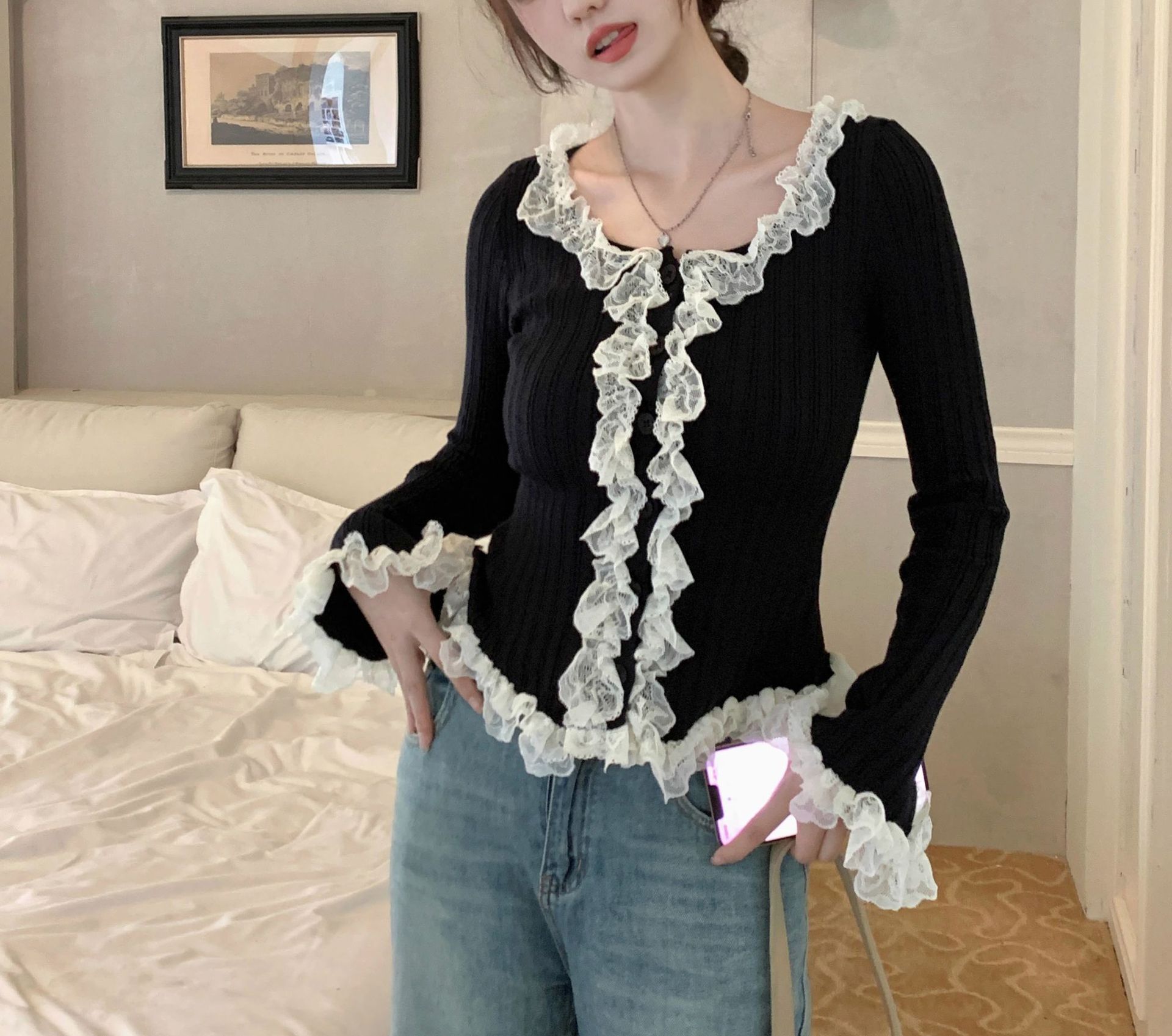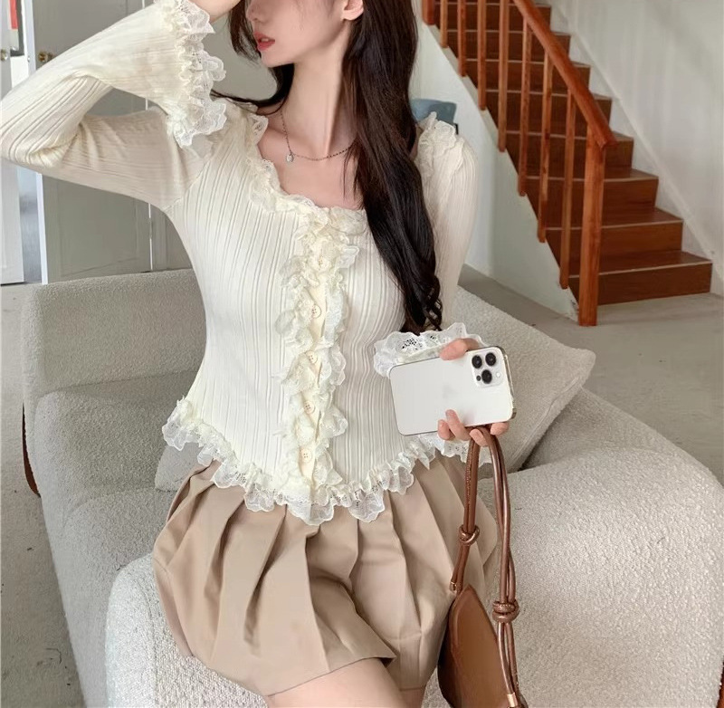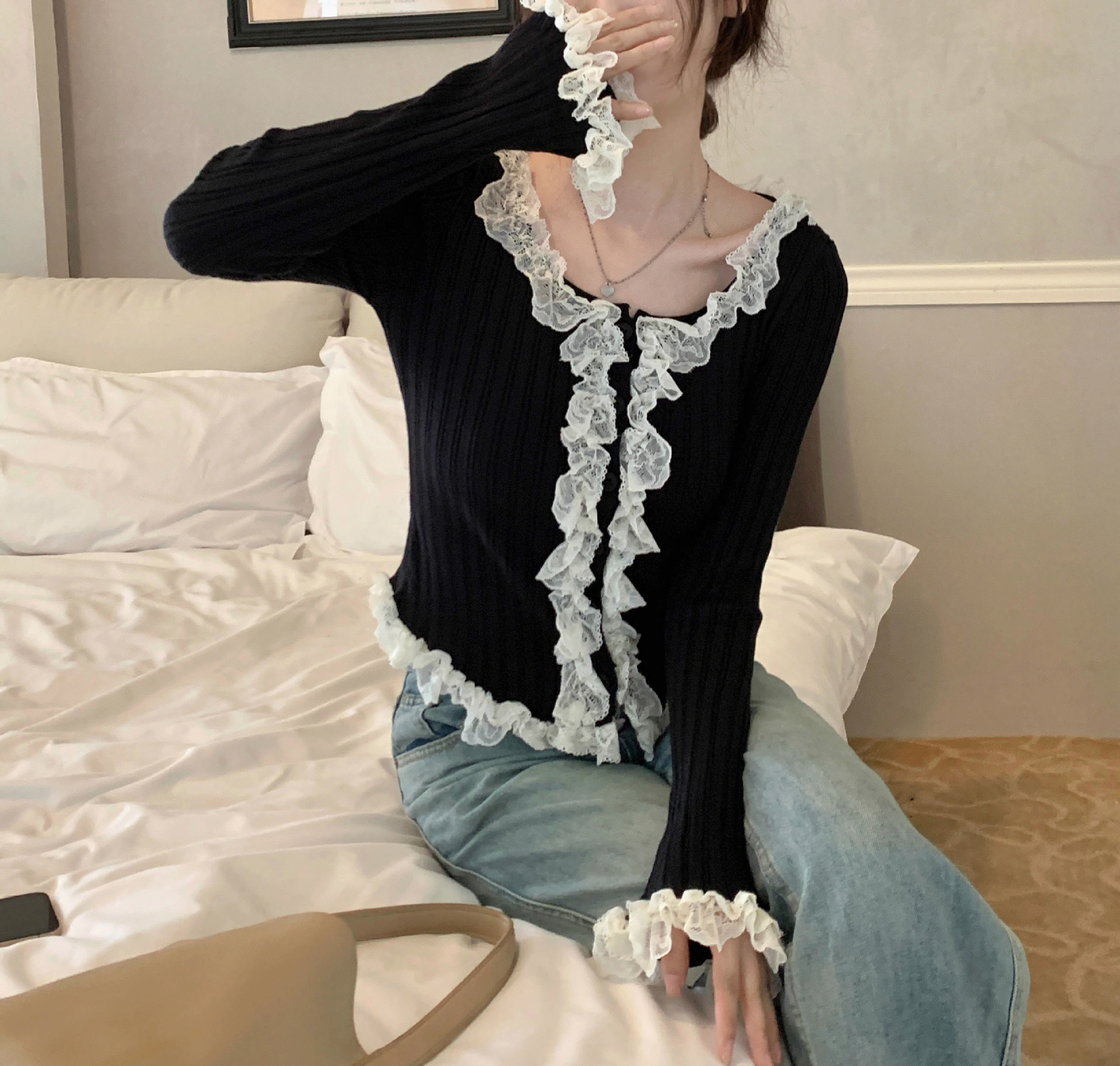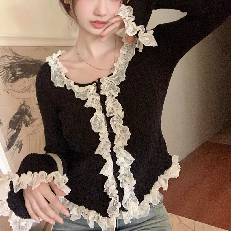 부드러운 스타일 순수한 욕망 니트 작은 카디건 여성 의류 봄과 가을 레이스 스웨터 티 브레이크 프랑스 스타일 내베이스 탑 트렌디
