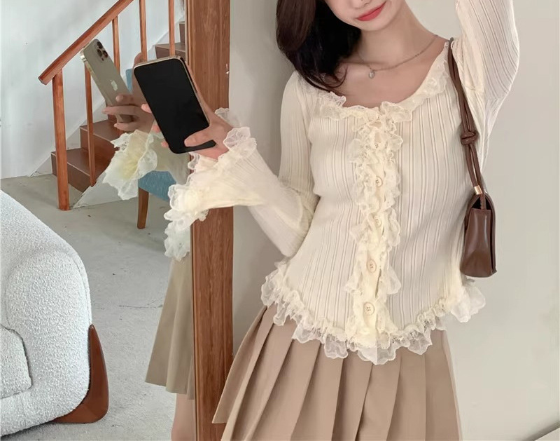 부드러운 스타일 순수한 욕망 니트 작은 카디건 여성 의류 봄과 가을 레이스 스웨터 티 브레이크 프랑스 스타일 내베이스 탑 트렌디스토어 가기