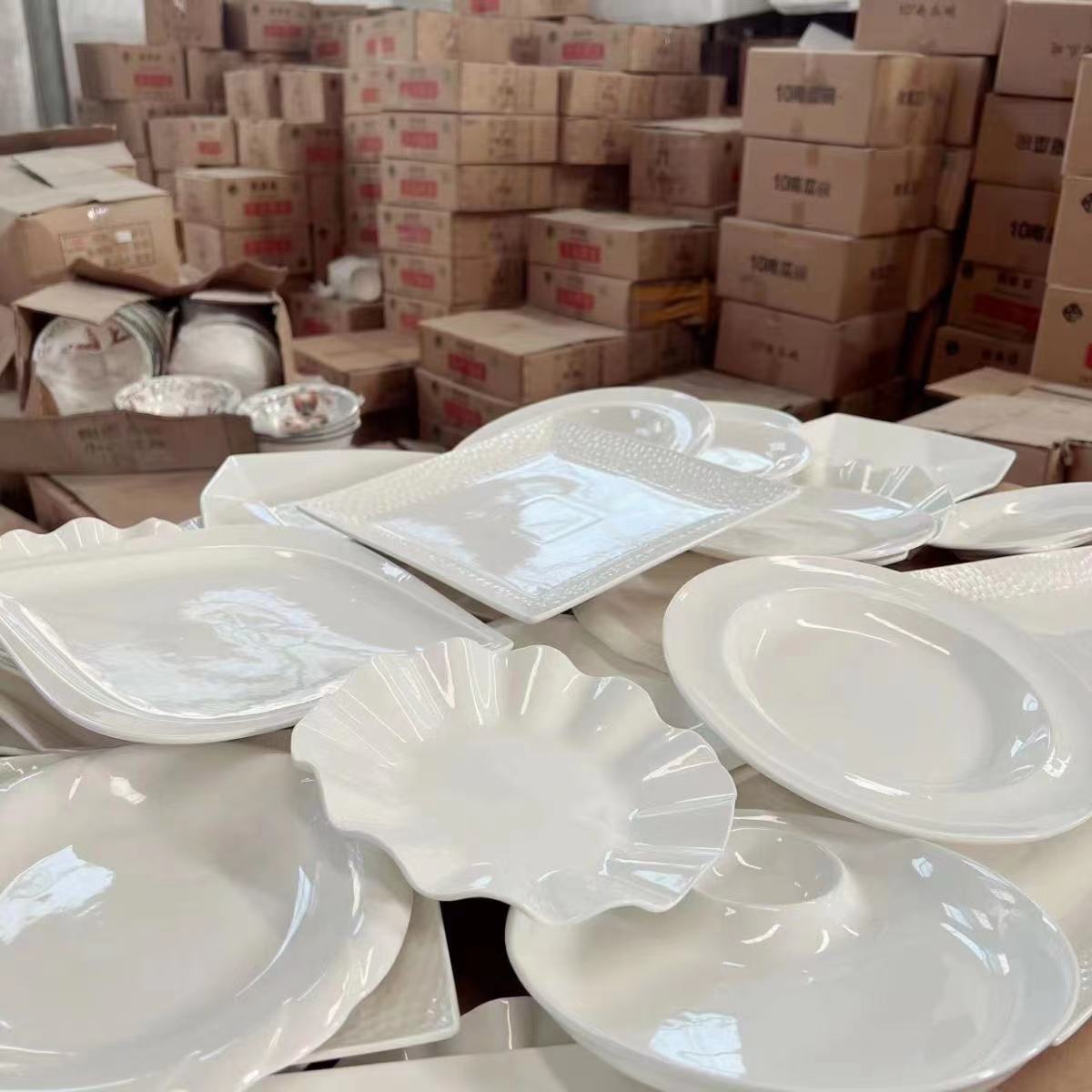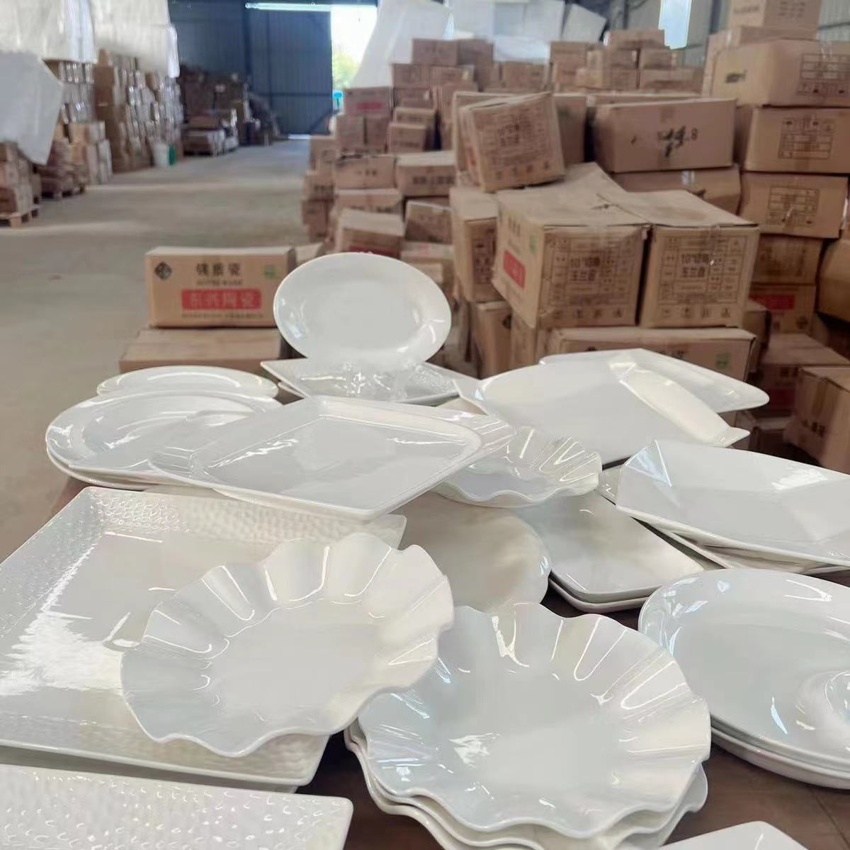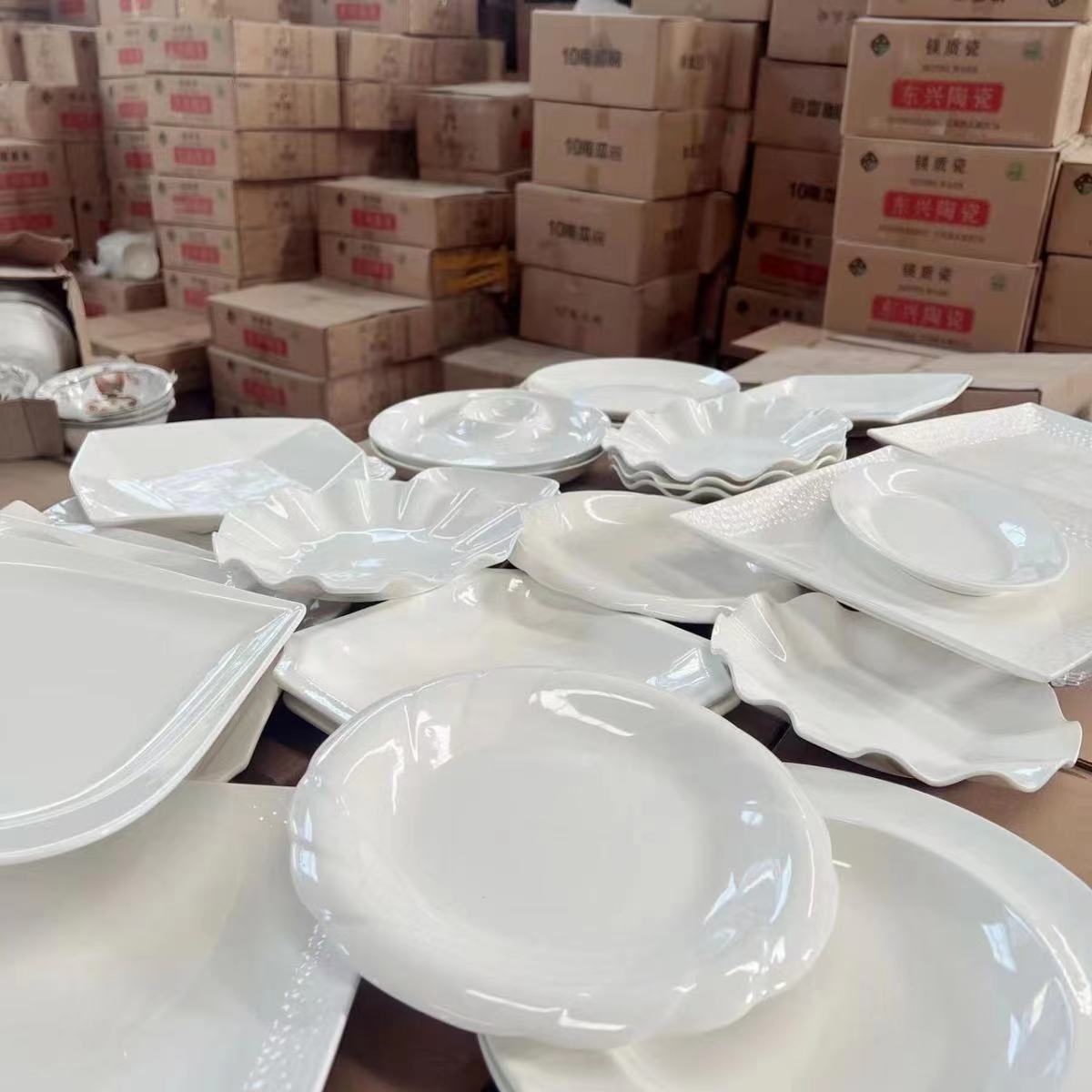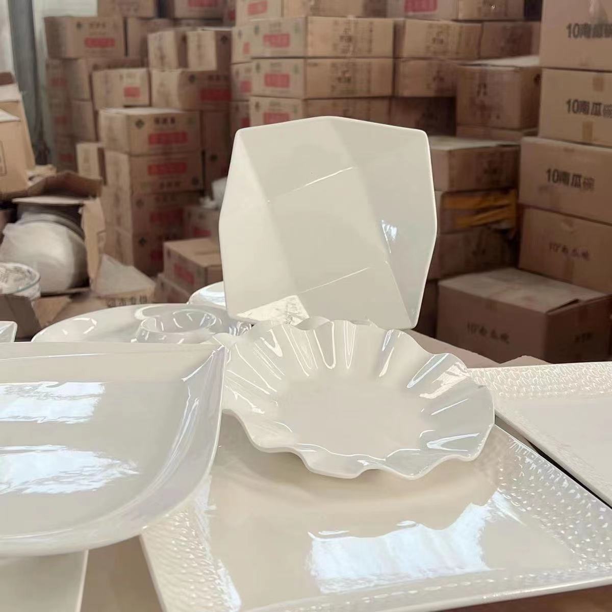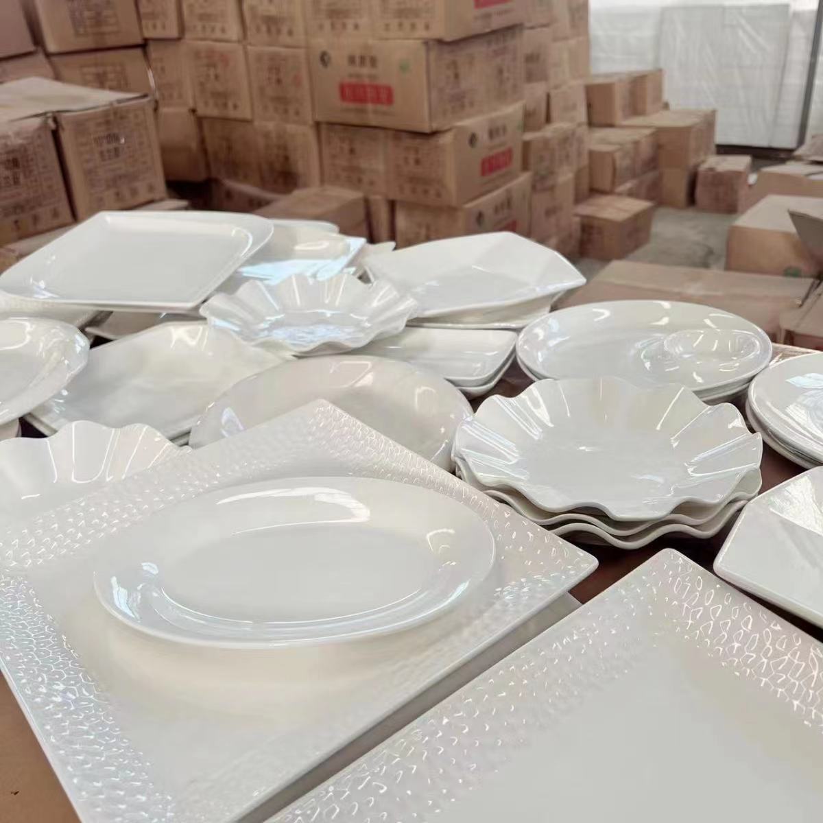 호텔 세라믹 식기 도매 호텔 식기 멀티 스타일 소독 식기 특수 모양의 플레이트 흰색 도자기 접시 흰색 도자기 그릇 숟가락 접시스토어 가기