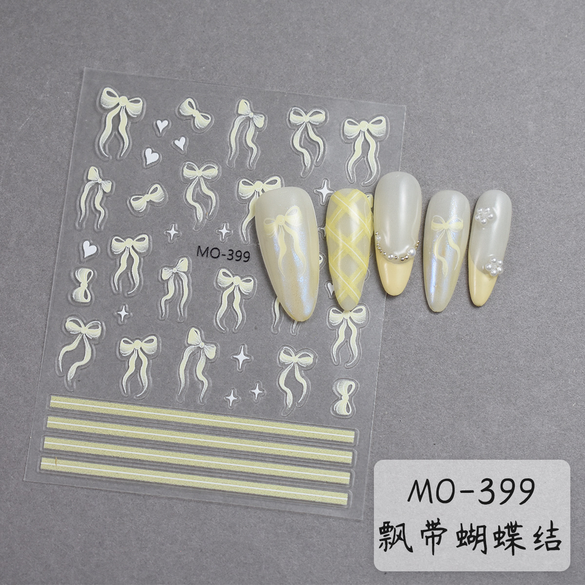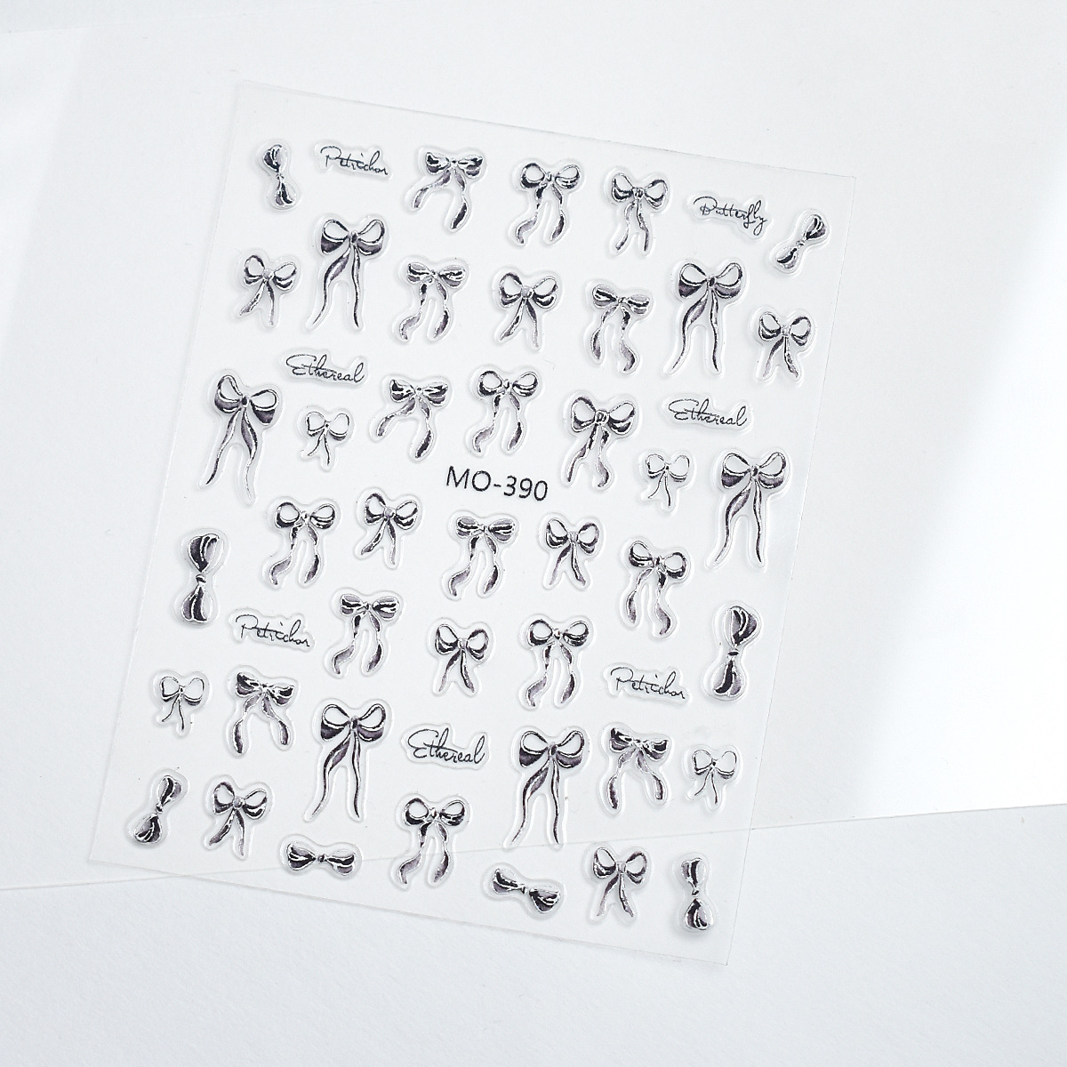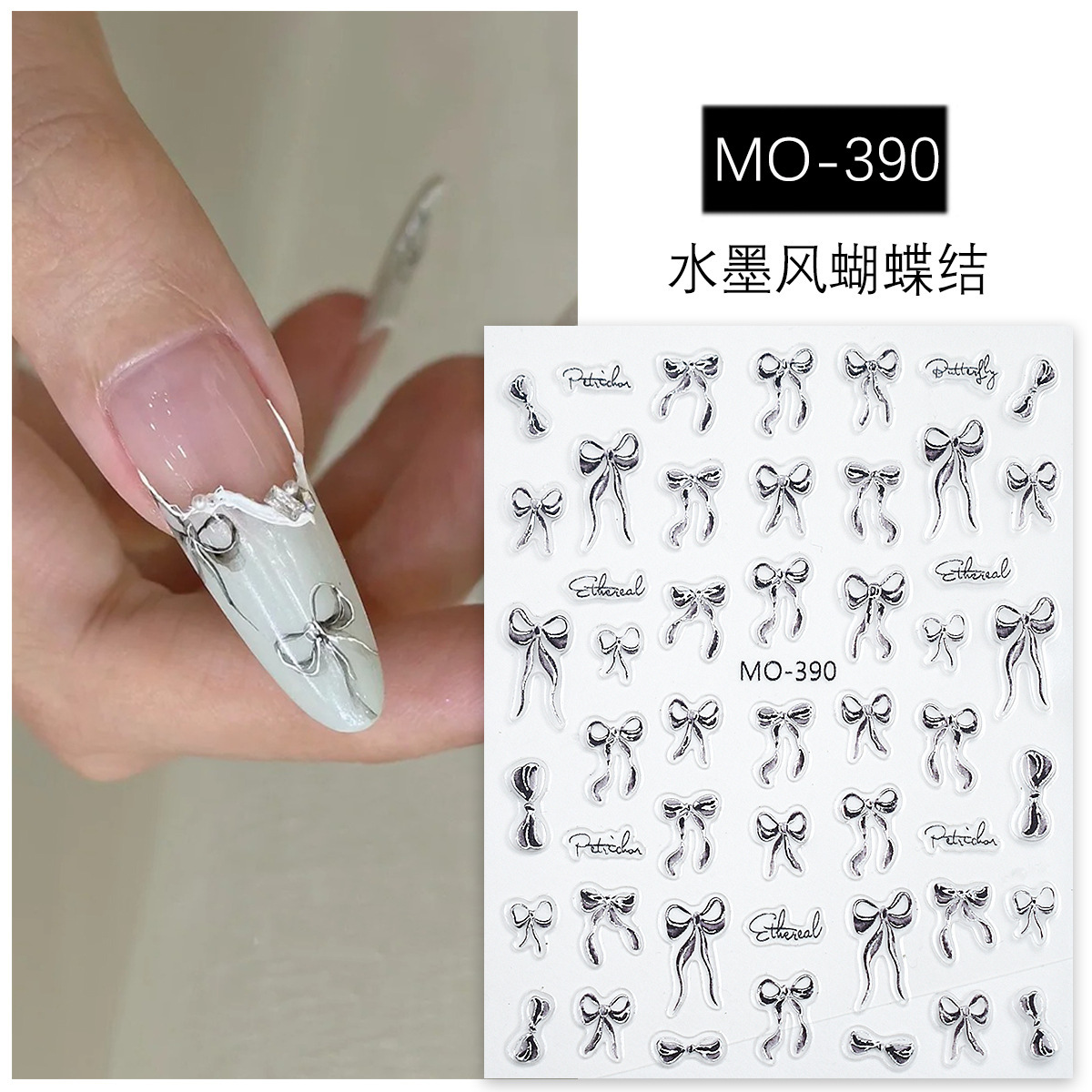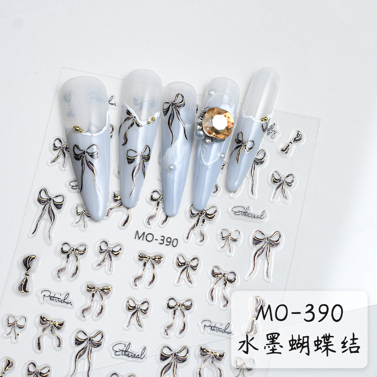 새로운 잉크 스타일 리본 활 네일 아트 스티커 가벼운 럭셔리 골드 도금 활 착용 네일 릴리프 스티커