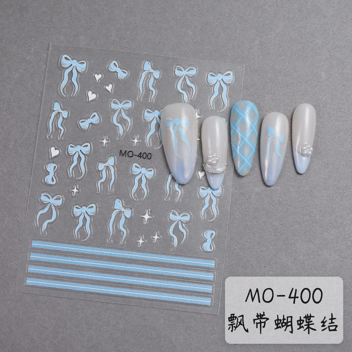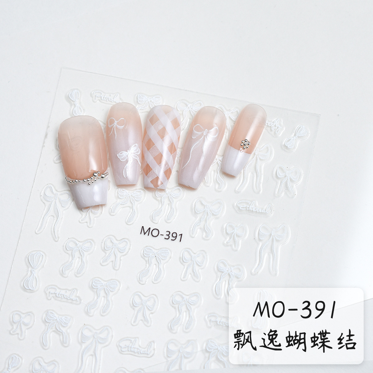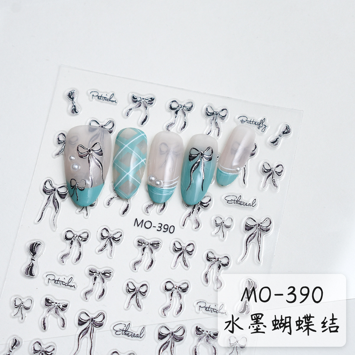 새로운 잉크 스타일 리본 활 네일 아트 스티커 가벼운 럭셔리 골드 도금 활 착용 네일 릴리프 스티커스토어 가기