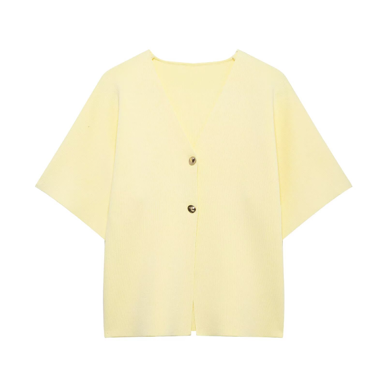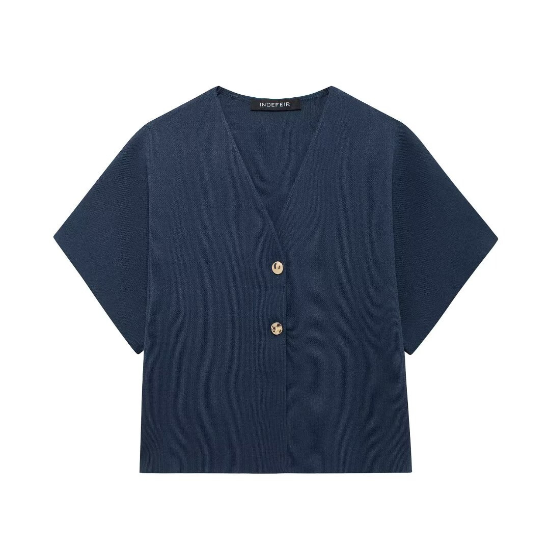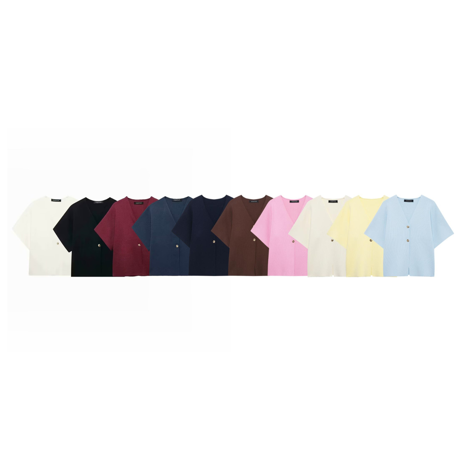 유럽과 미국의 국경 간 여성 의류 도매 여성 플랫 바늘 짧은 소매 v-neck 스포츠 스웨터스토어 가기