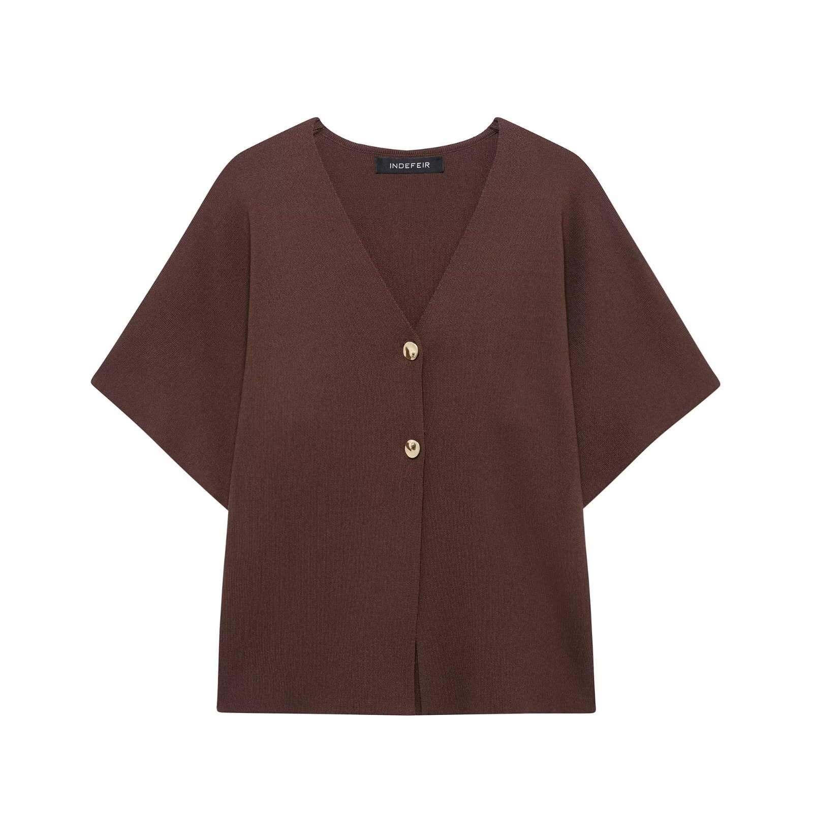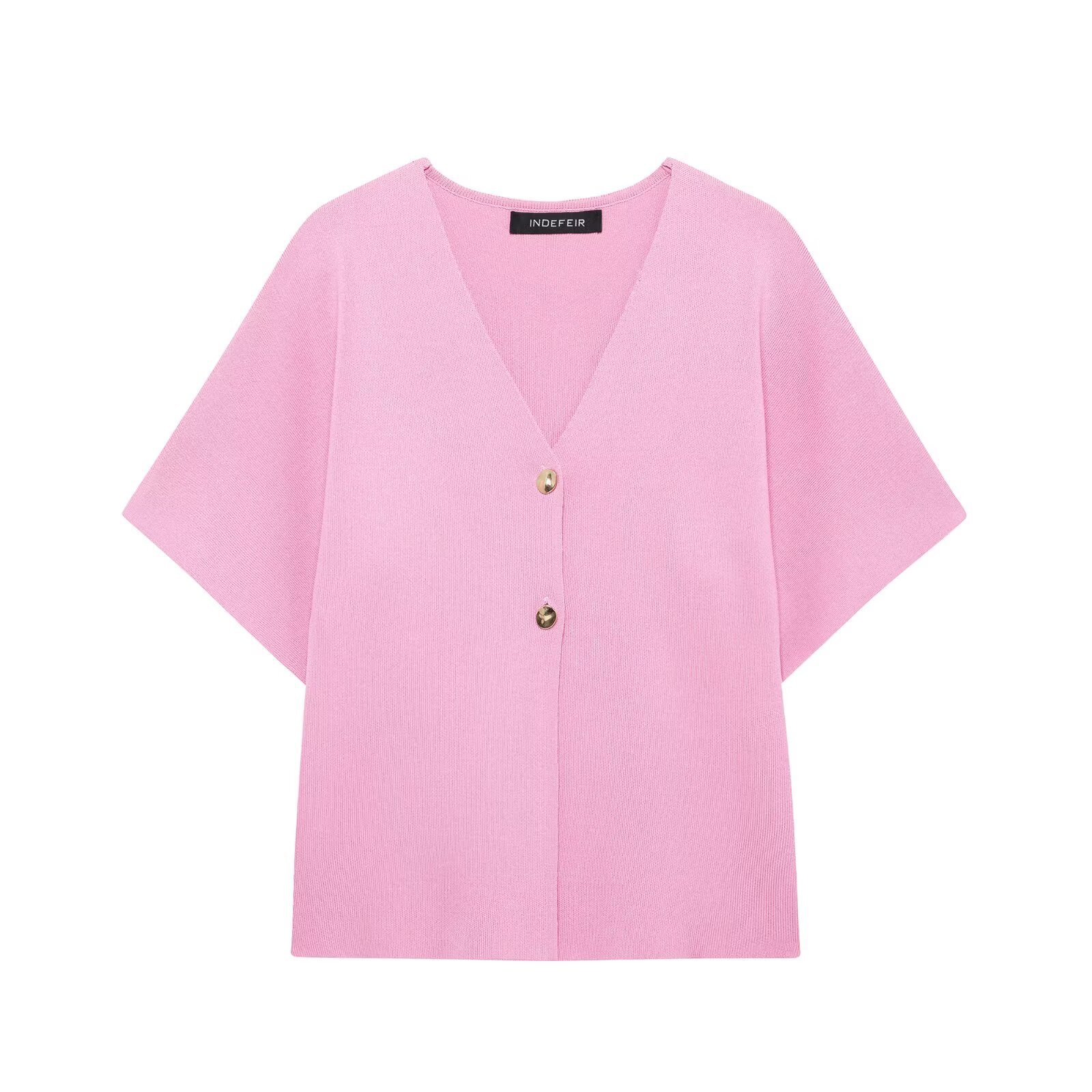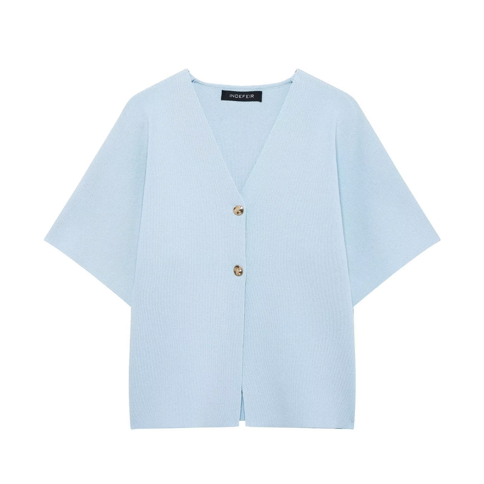 유럽과 미국의 국경 간 여성 의류 도매 여성 플랫 바늘 짧은 소매 v-neck 스포츠 스웨터스토어 가기