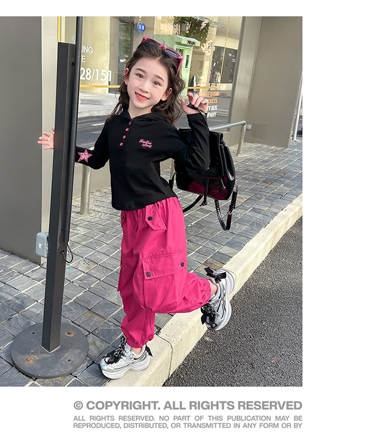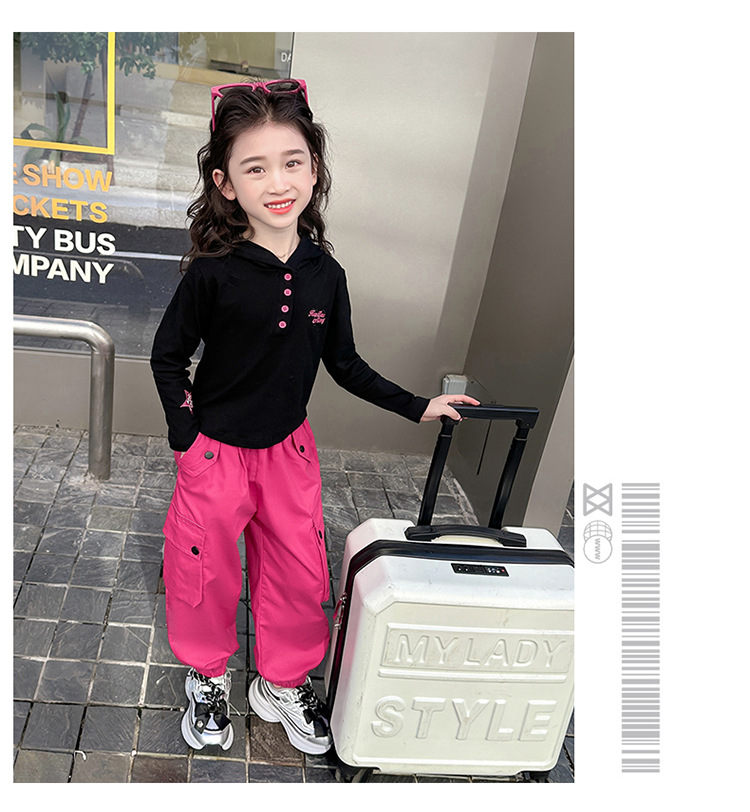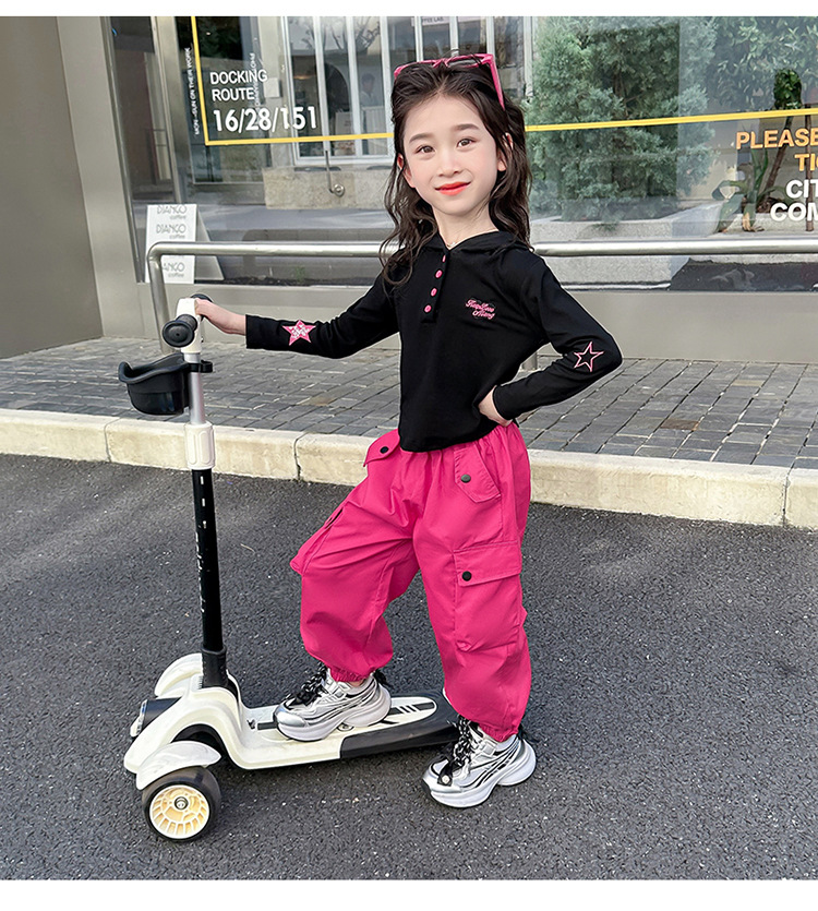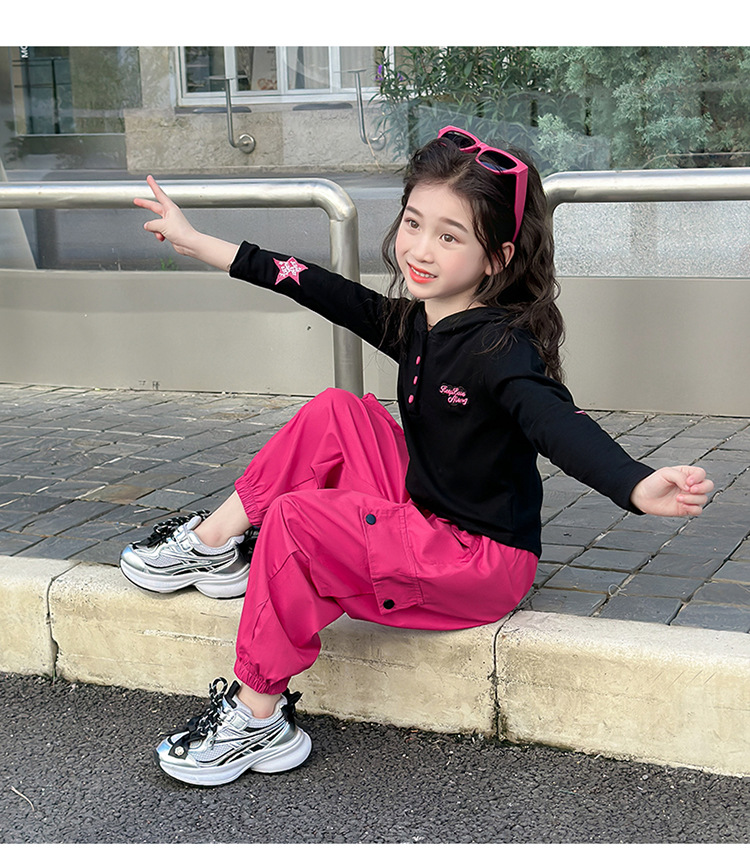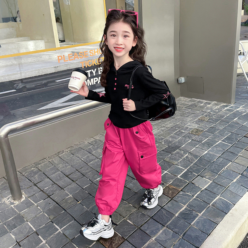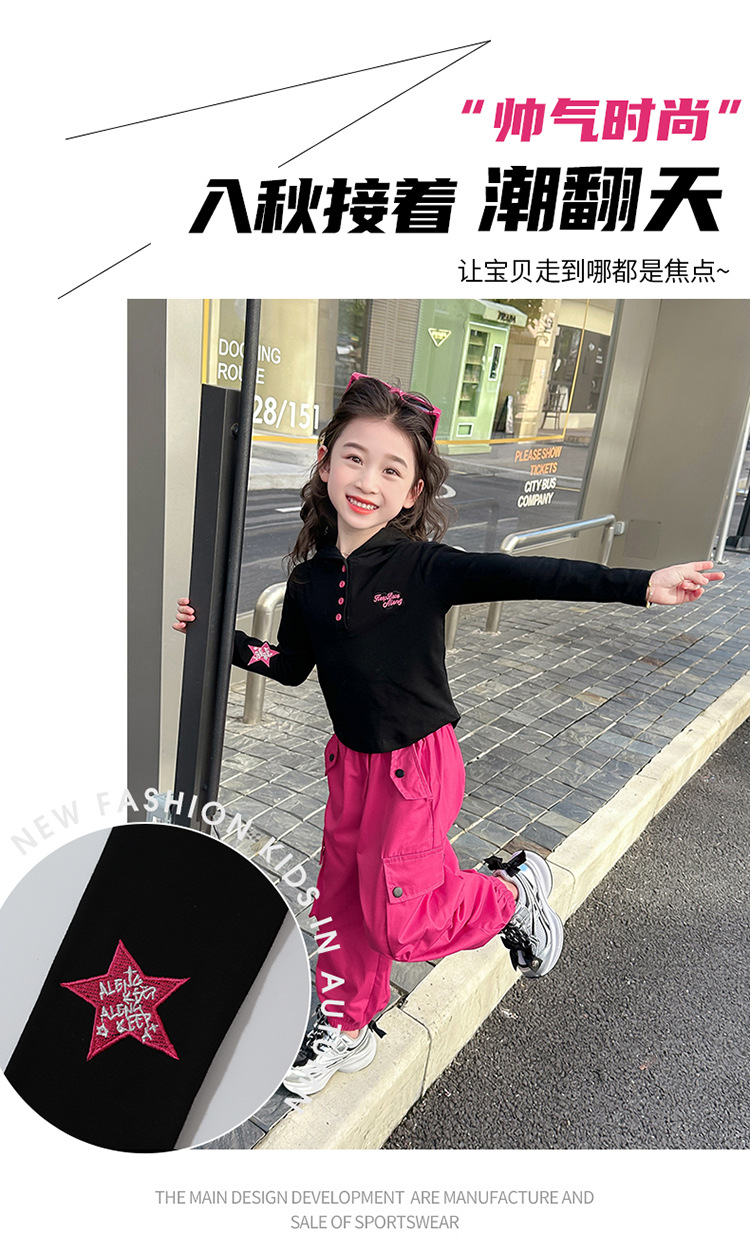소녀 크록 바지 세트 봄과 가을 2024 새로운 서양식 유행 아동복 인터넷 기념 스포츠 투피스 아동복스토어 가기