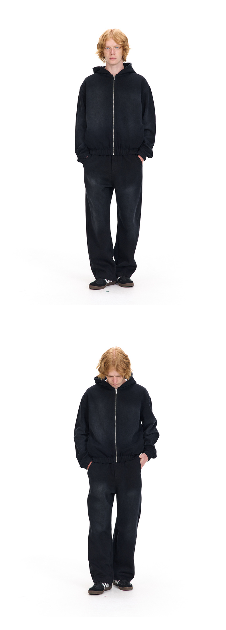 • X908(스웨트셔츠) - 워싱 및 디스트레스드 블랙