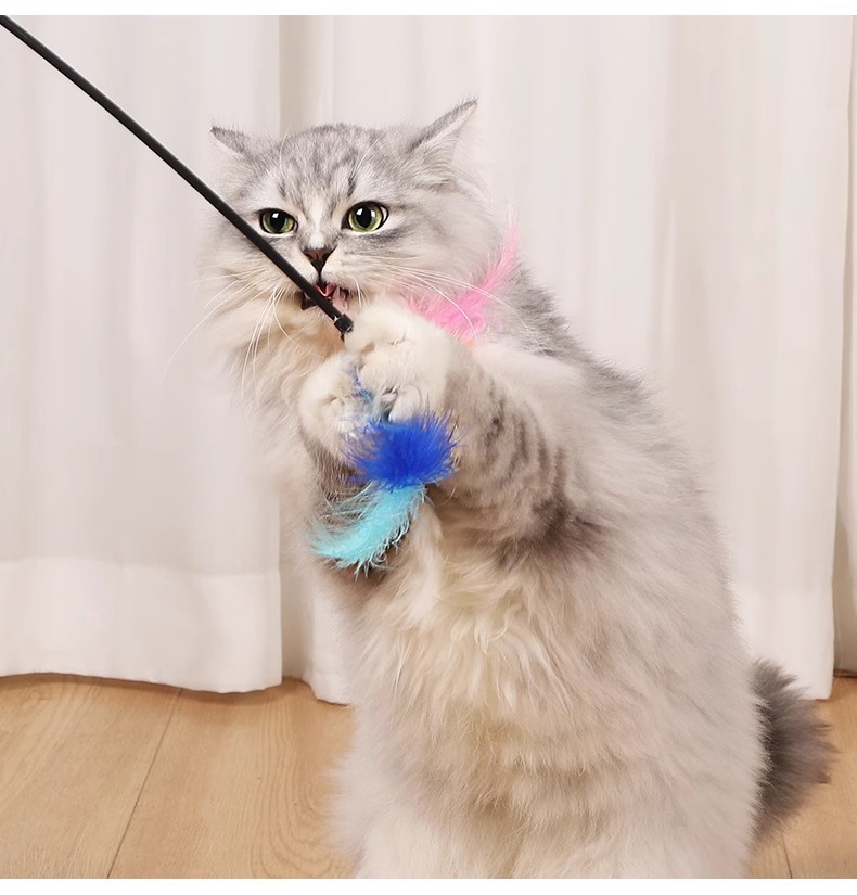 고양이 웃긴 스틱 새끼 고양이 장난감 고양이 재미있는 용품 완벽한 셀프 하이 바이트 저항 긴 막대 고양이 재미 스틱 유물 깃털 고양이 스크래치 보드
