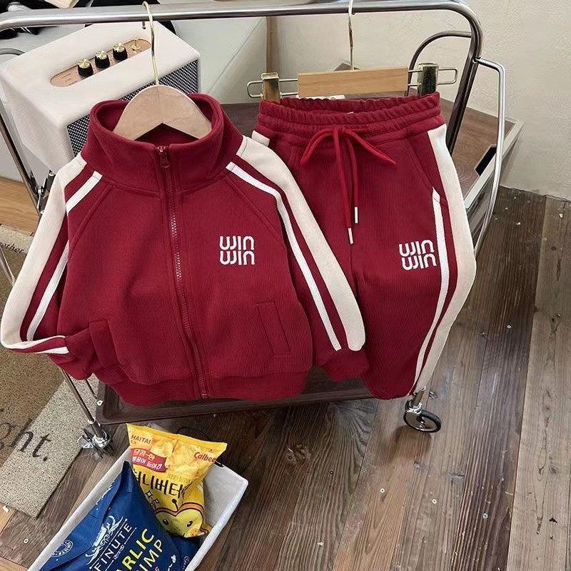 2024 새로운 어린이 세트 가을 어린이 소년 소녀들은 스포츠웨어 봄과 가을 서양식 올 매치 두 조각을 착용합니다.
