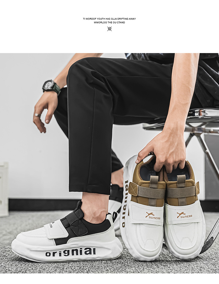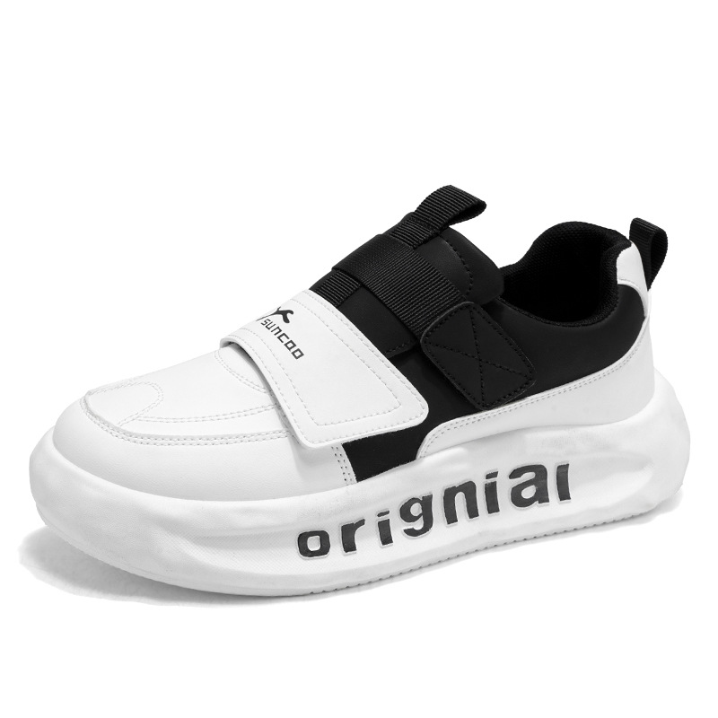 벨크로 남성 신발 가을 올 매치 캐주얼 레이스 프리 운동화 슬립 온 가죽 스포츠 두꺼운 밑창 높은 흰색 신발