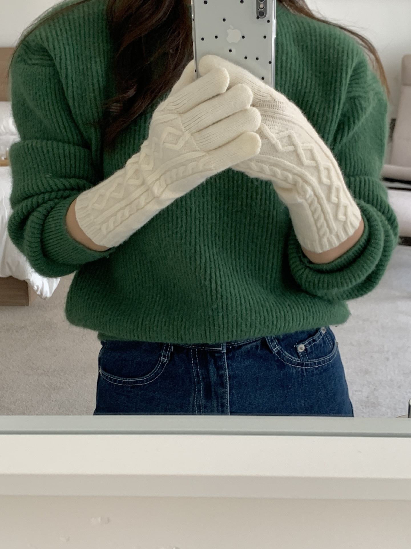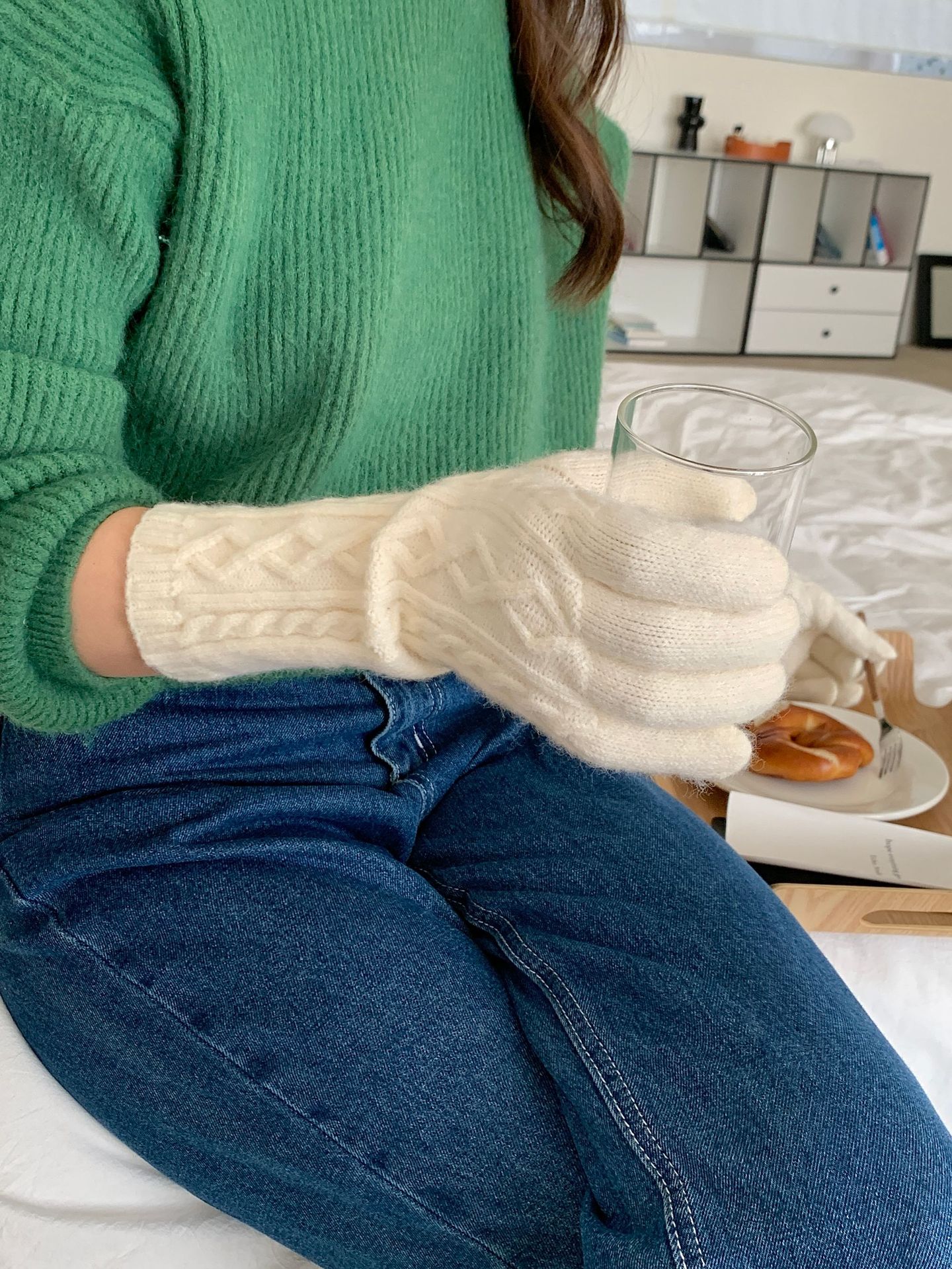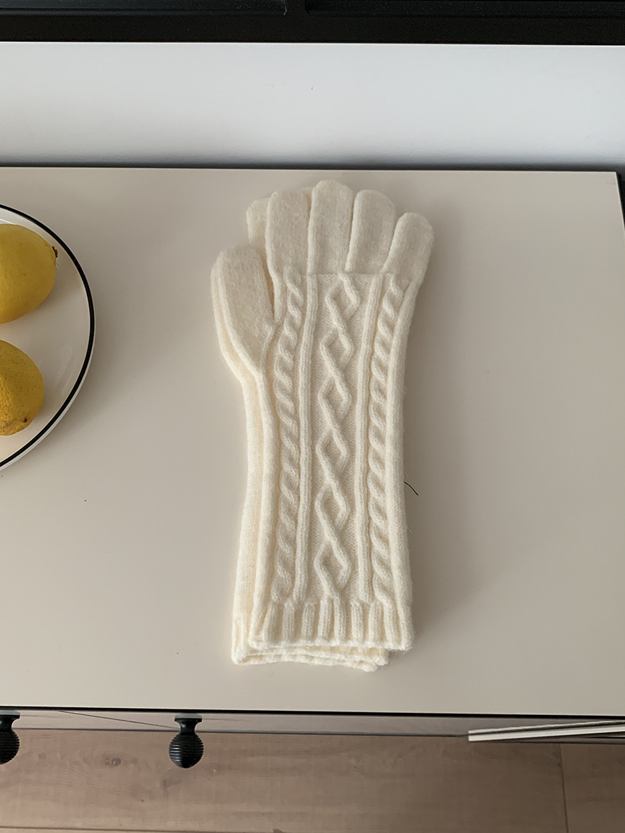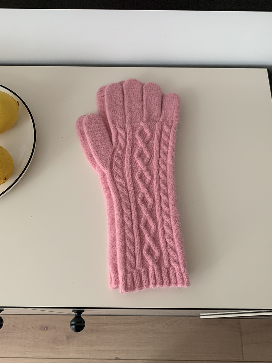 트위스트 니트 장갑 여성의 겨울 2024 새로운 단색 노출 손가락 터치 스크린 따뜻한 야외 승마 울 장갑스토어 가기