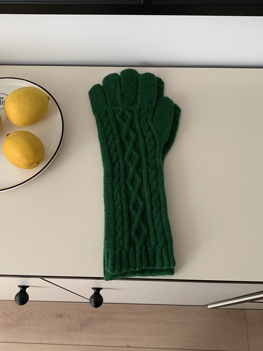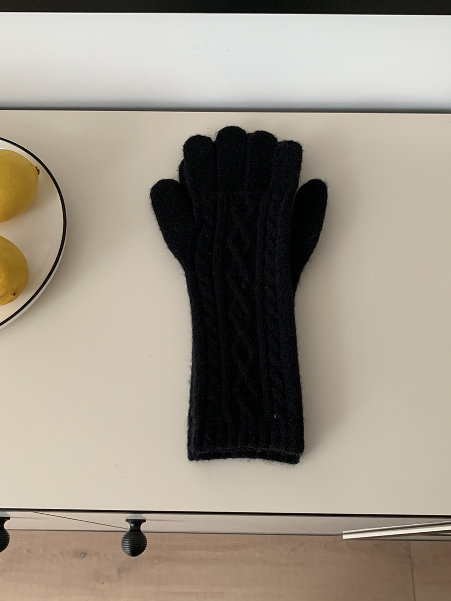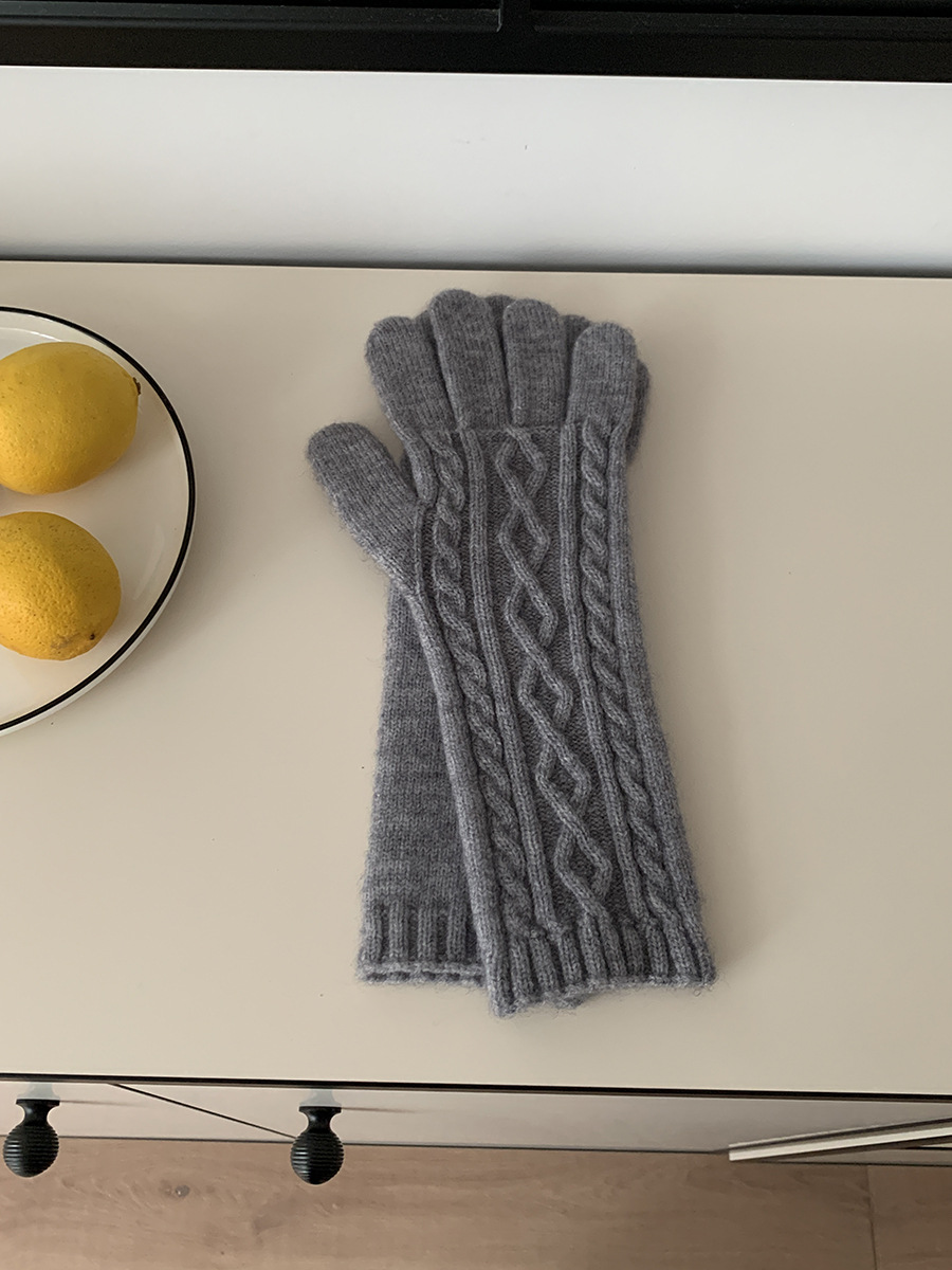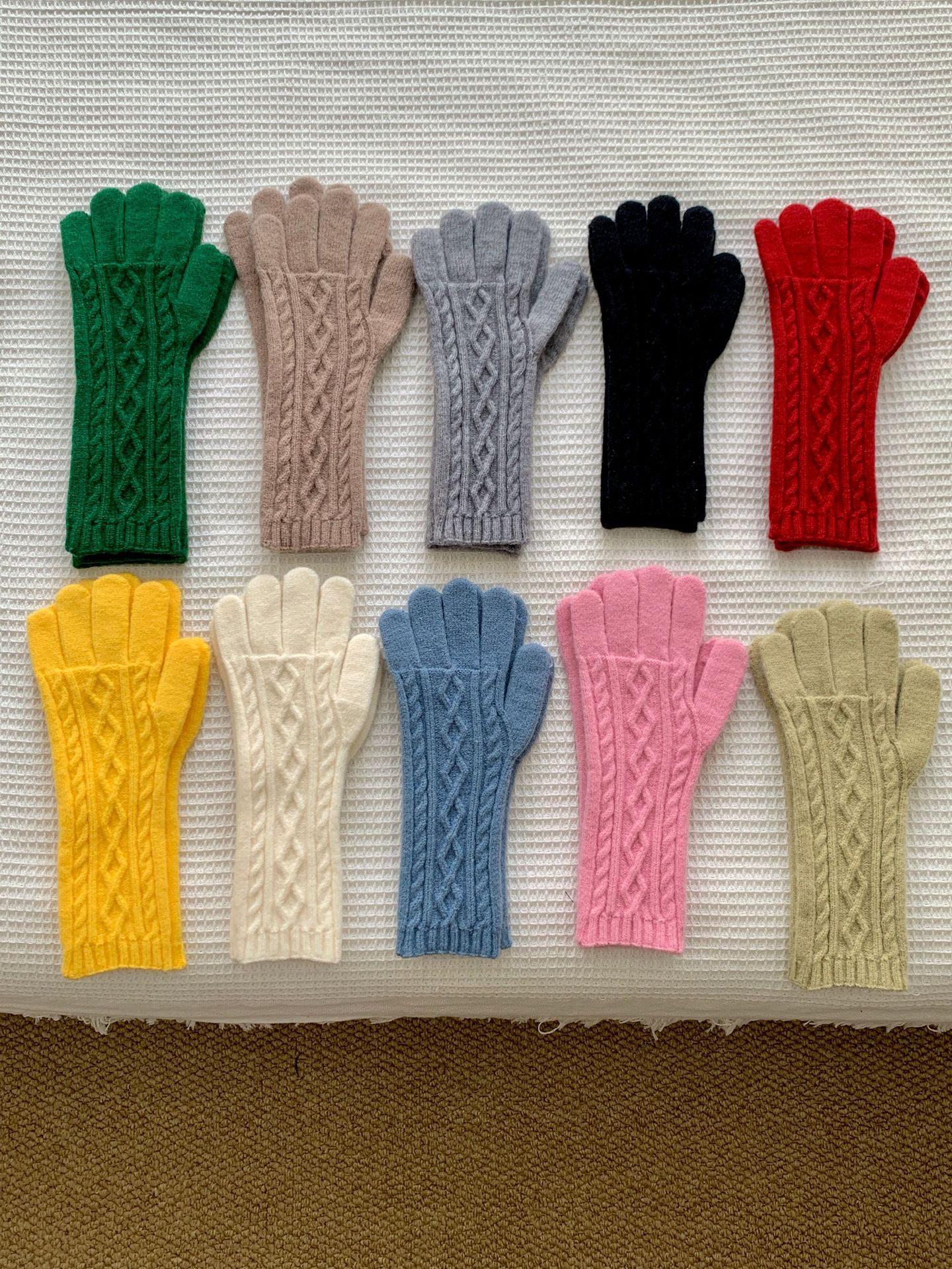 트위스트 니트 장갑 여성의 겨울 2024 새로운 단색 노출 손가락 터치 스크린 따뜻한 야외 승마 울 장갑