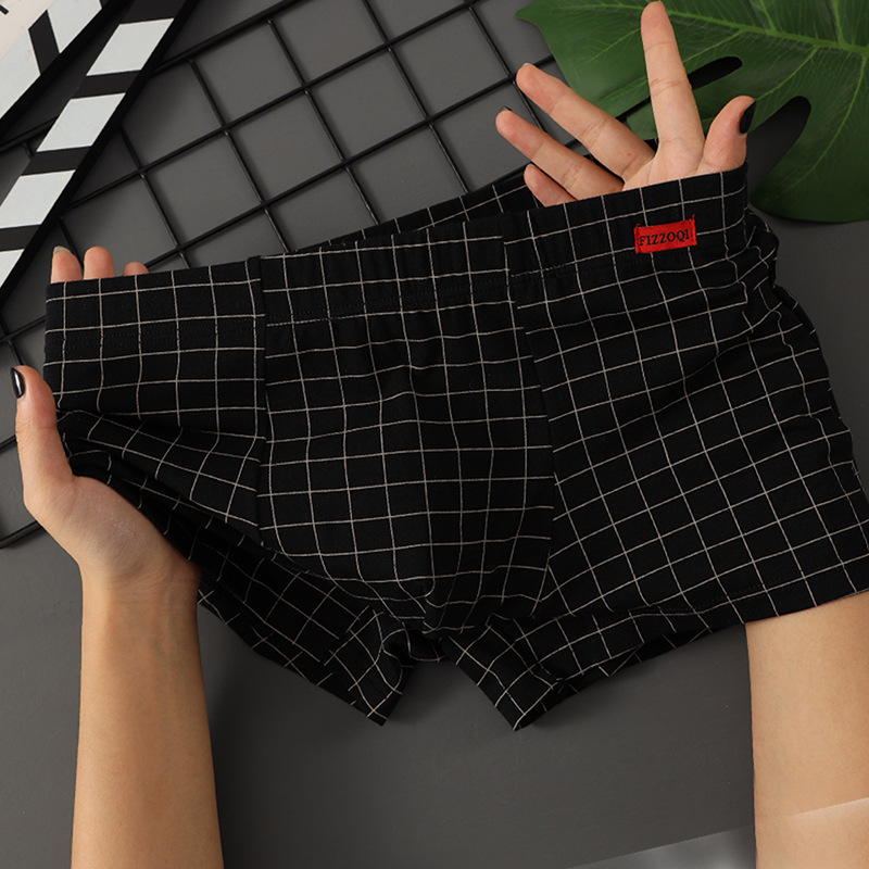 새로운 면 남성 속옷 여름 복서 중간 허리 소년 격자 무늬 복서 트렌디 한 청소년 통기성 바지