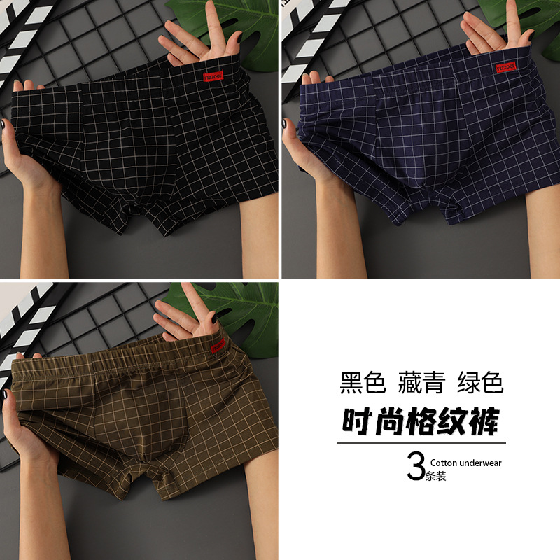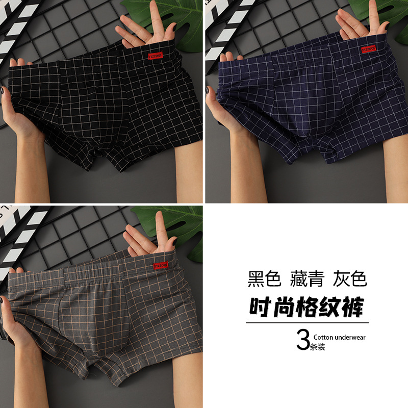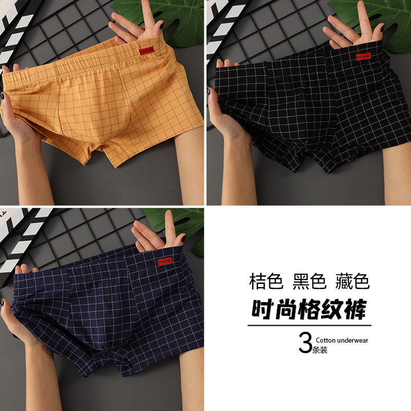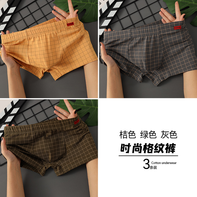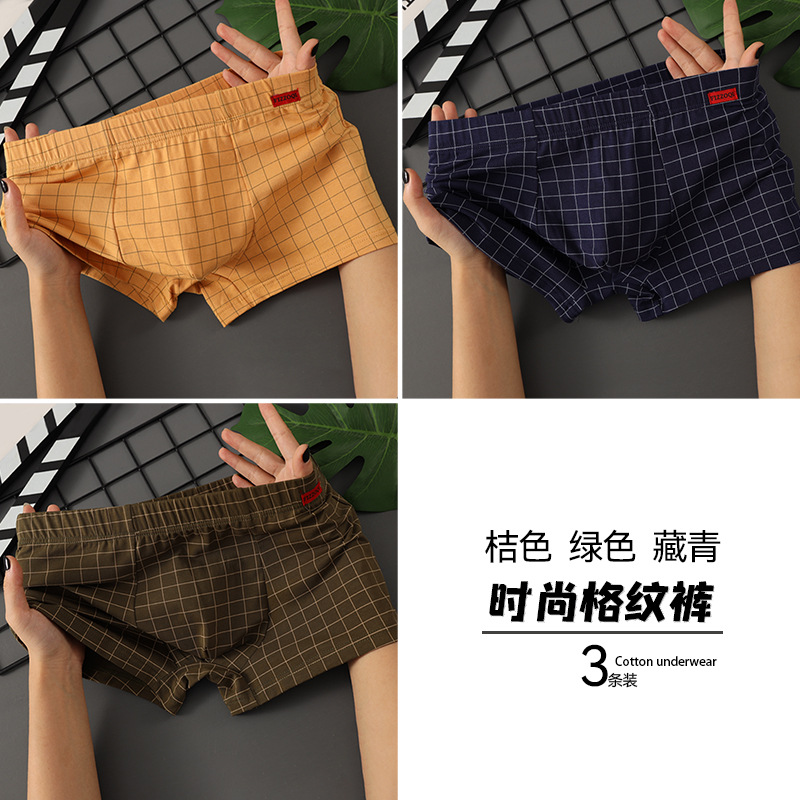 새로운 면 남성 속옷 여름 복서 중간 허리 소년 격자 무늬 복서 트렌디 한 청소년 통기성 바지스토어 가기