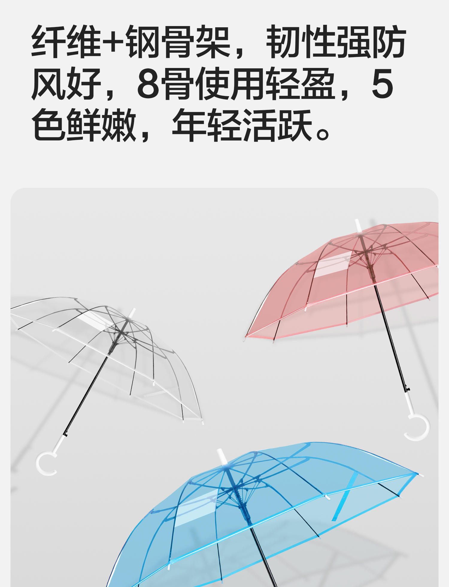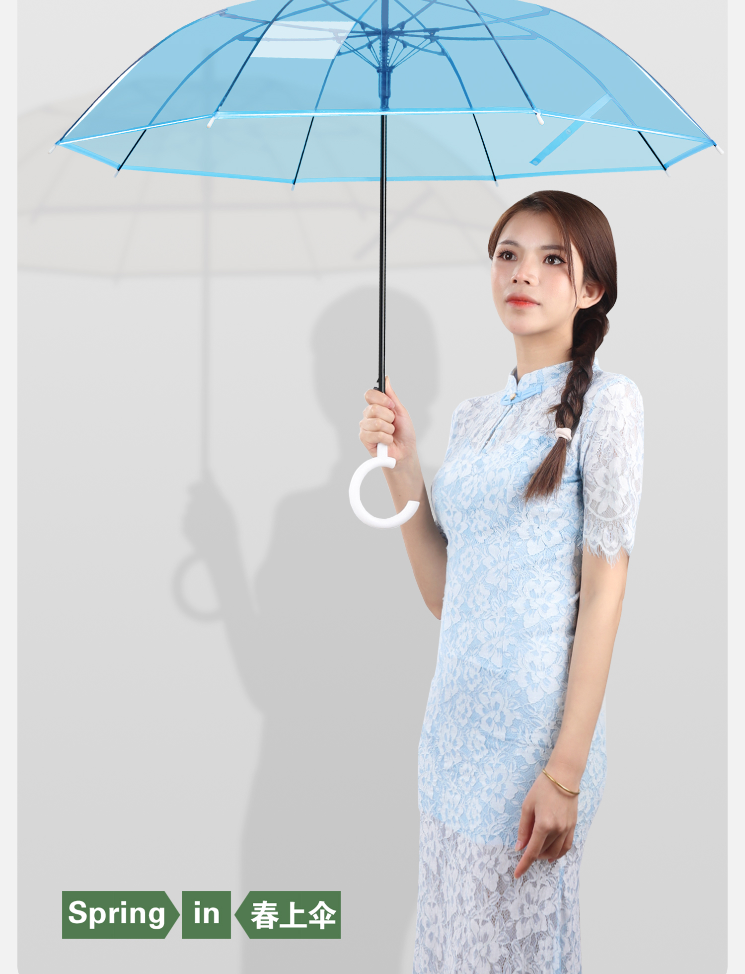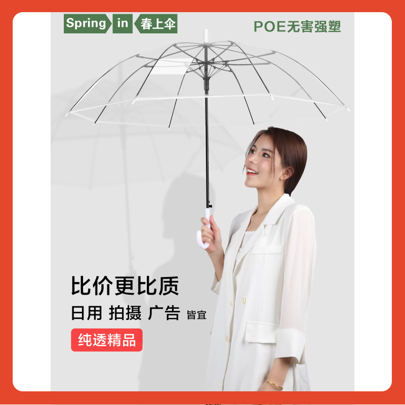 남성과 여성을 위한 ∞ 두꺼운 투명 우산 인터넷 연예인 작은 신선한 긴 손잡이 자동 초등학생 및 어린이 광고 사용자 정의