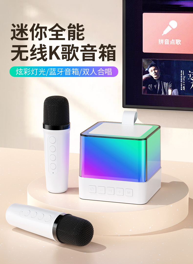 K18 무선 K-노래 통합 마이크 오디오 마이크 라이트 휴대용 야외 어린이 홈 블루투스 스피커 세트