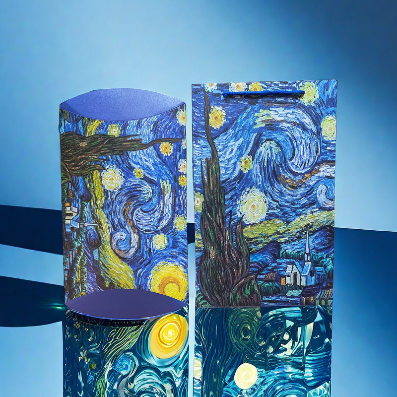• 파란 꽃 선물 상자(흰색 카드), 내부 상자 + 핸드백(권장)