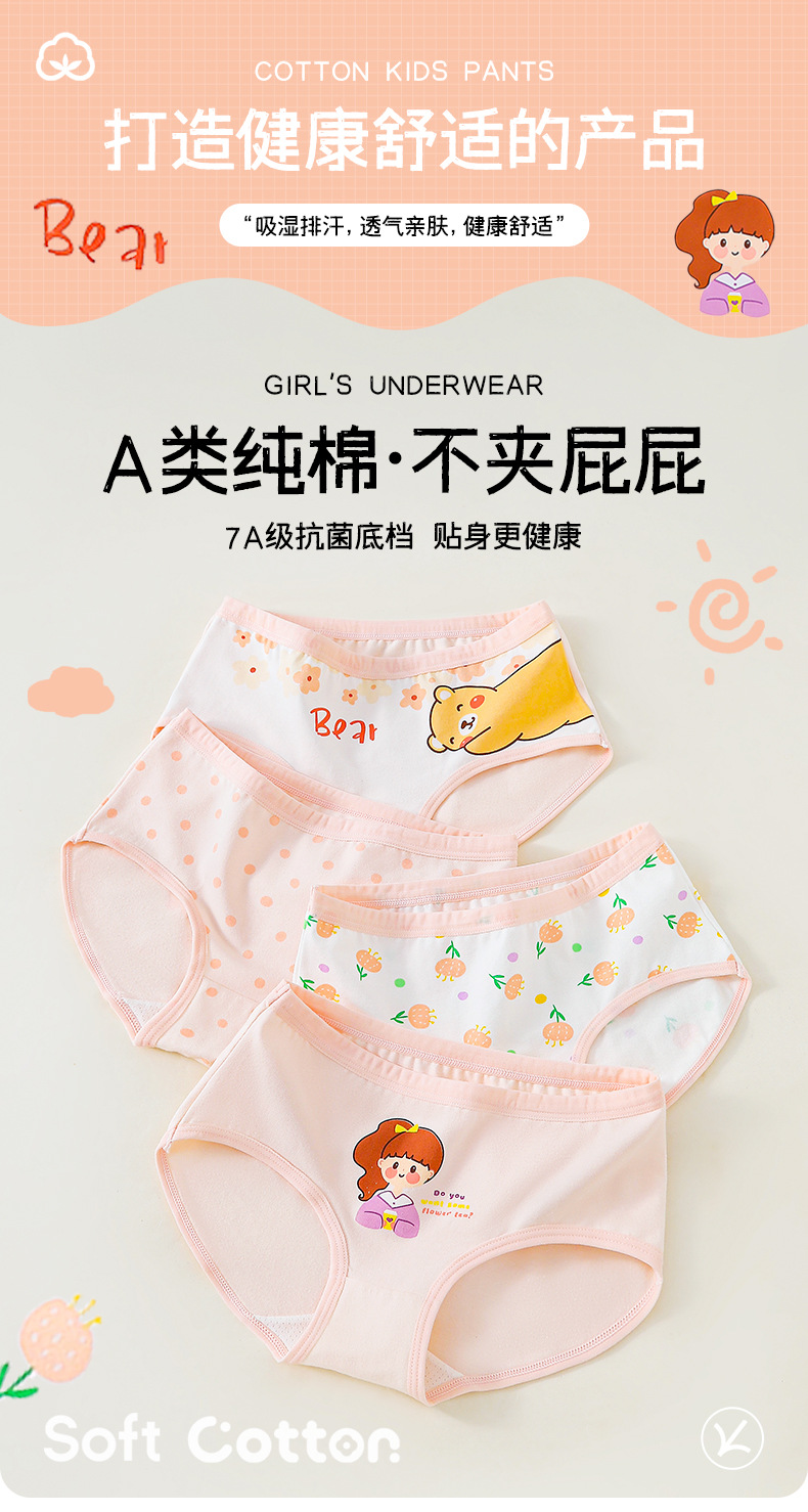 어린이 속옷 소녀 면 삼각형 여성 보물 반바지 클래스 A 항균 없음 클립 pp 어린이 소녀 반바지 도매스토어 가기