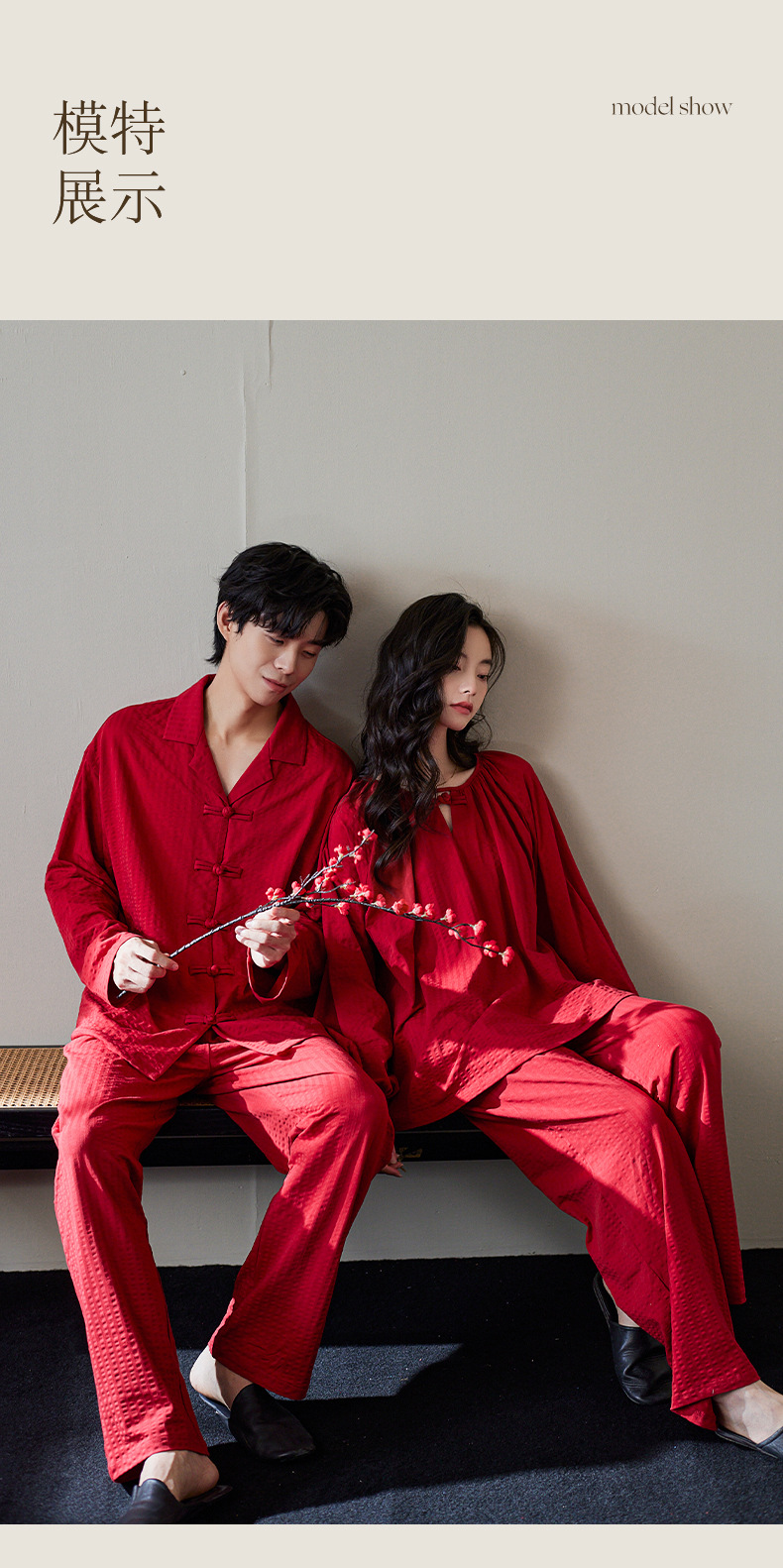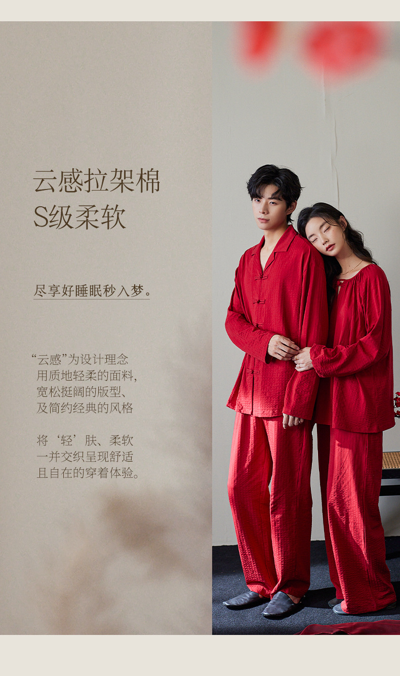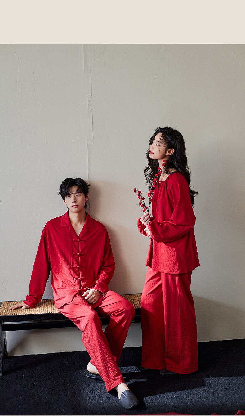 잠옷 결혼식 신혼 부부 세트 여성의 봄과 가을 순면 빨간 집 옷 남성 생활 년 고급 감각 세트스토어 가기