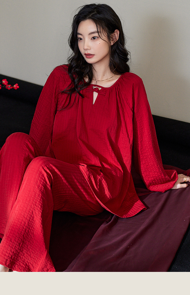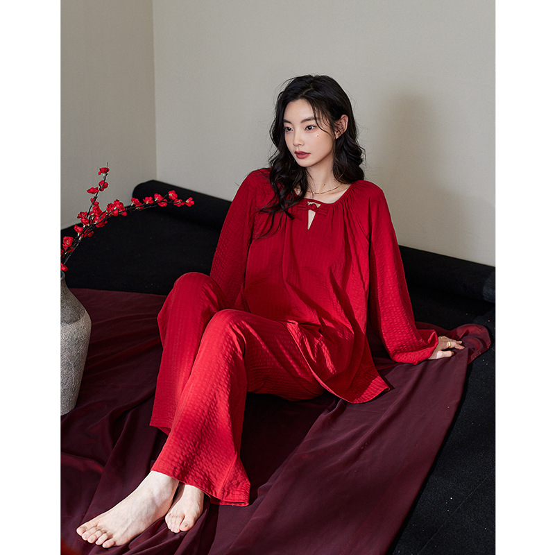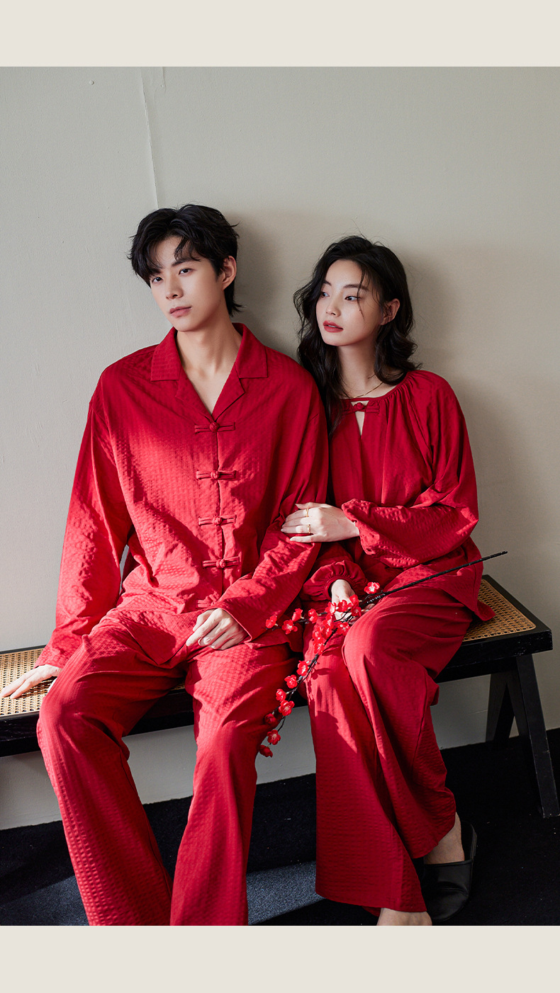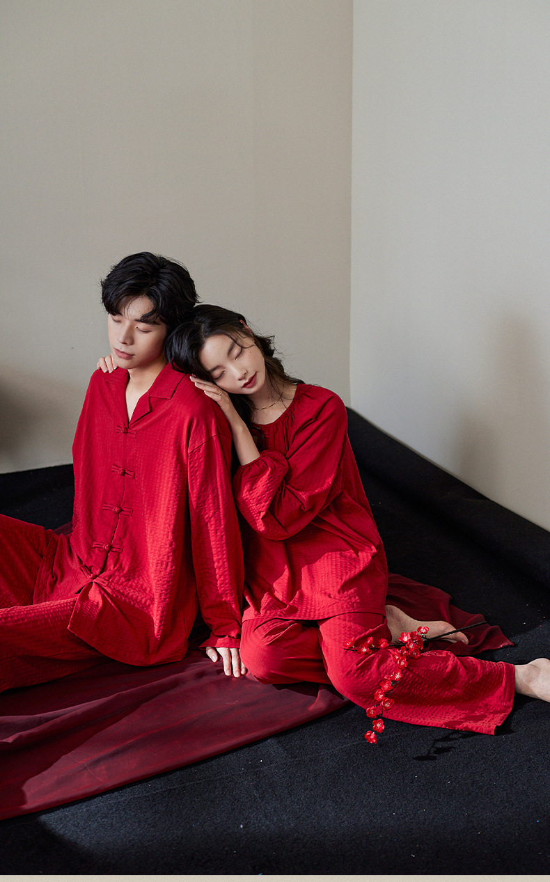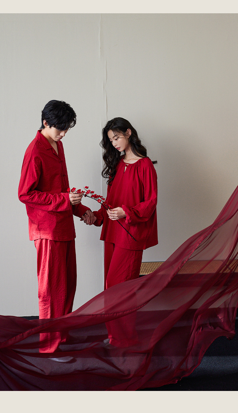 잠옷 결혼식 신혼 부부 세트 여성의 봄과 가을 순면 빨간 집 옷 남성 생활 년 고급 감각 세트